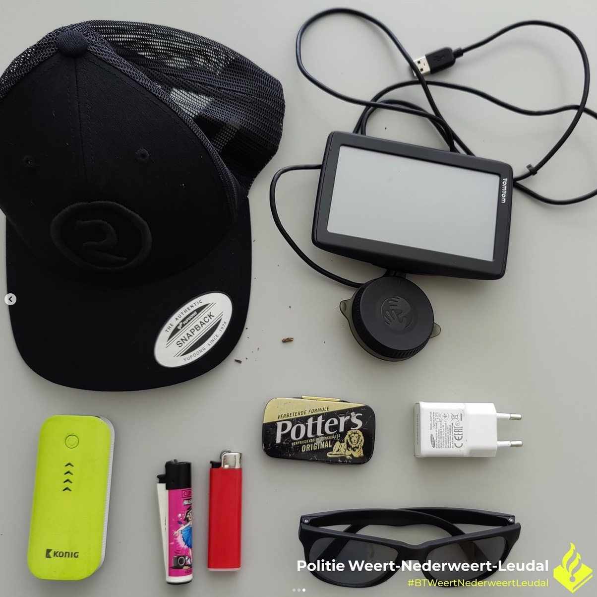 Bij de verdachte werden verschillende items gevonden, waaronder een TomTom navigatiesysteem, een zonnebril, een powerbank, een zwarte pet en een veiligheidskit voor een auto. De aanhouding vond plaats op de Graaf Jacobstraat in Weert. Daarnaast werd bij de verdachte een fiets aangetroffen met een geforceerd slot, waarvan de politie ook de eigenaar probeert te vinden.