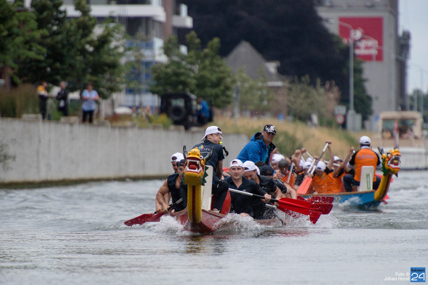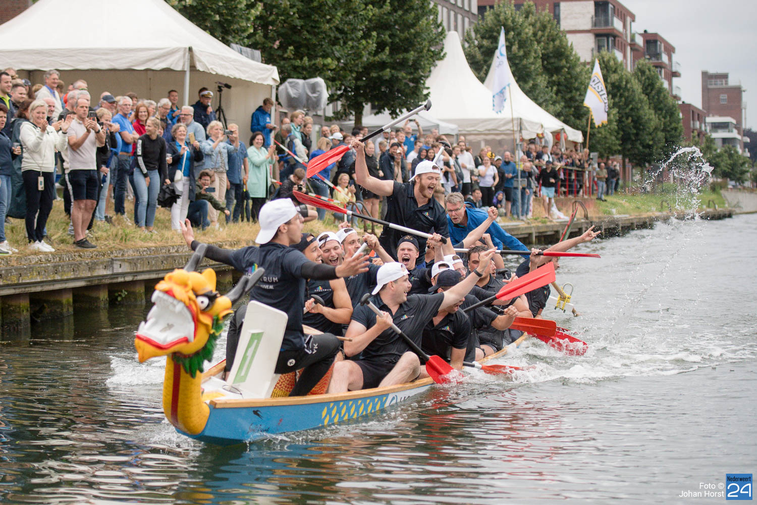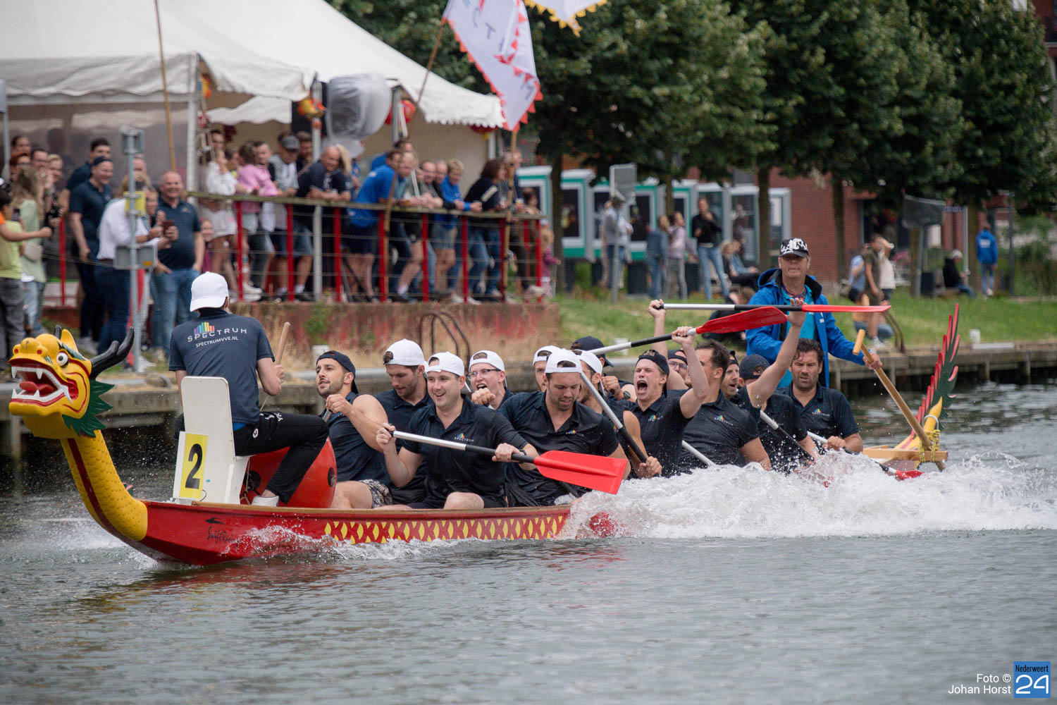 Team ‘Spectrum‘ won voor de tweede keer de drakenbootrace in Weert. Het was een spannende strijd tot aan het einde. De finale werd even uitgesteld door de regen, maar dat weerhield de roeiers er niet van om hun beste krachten te geven.