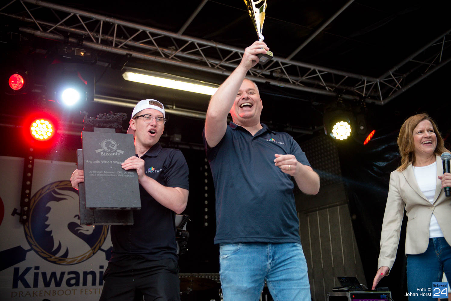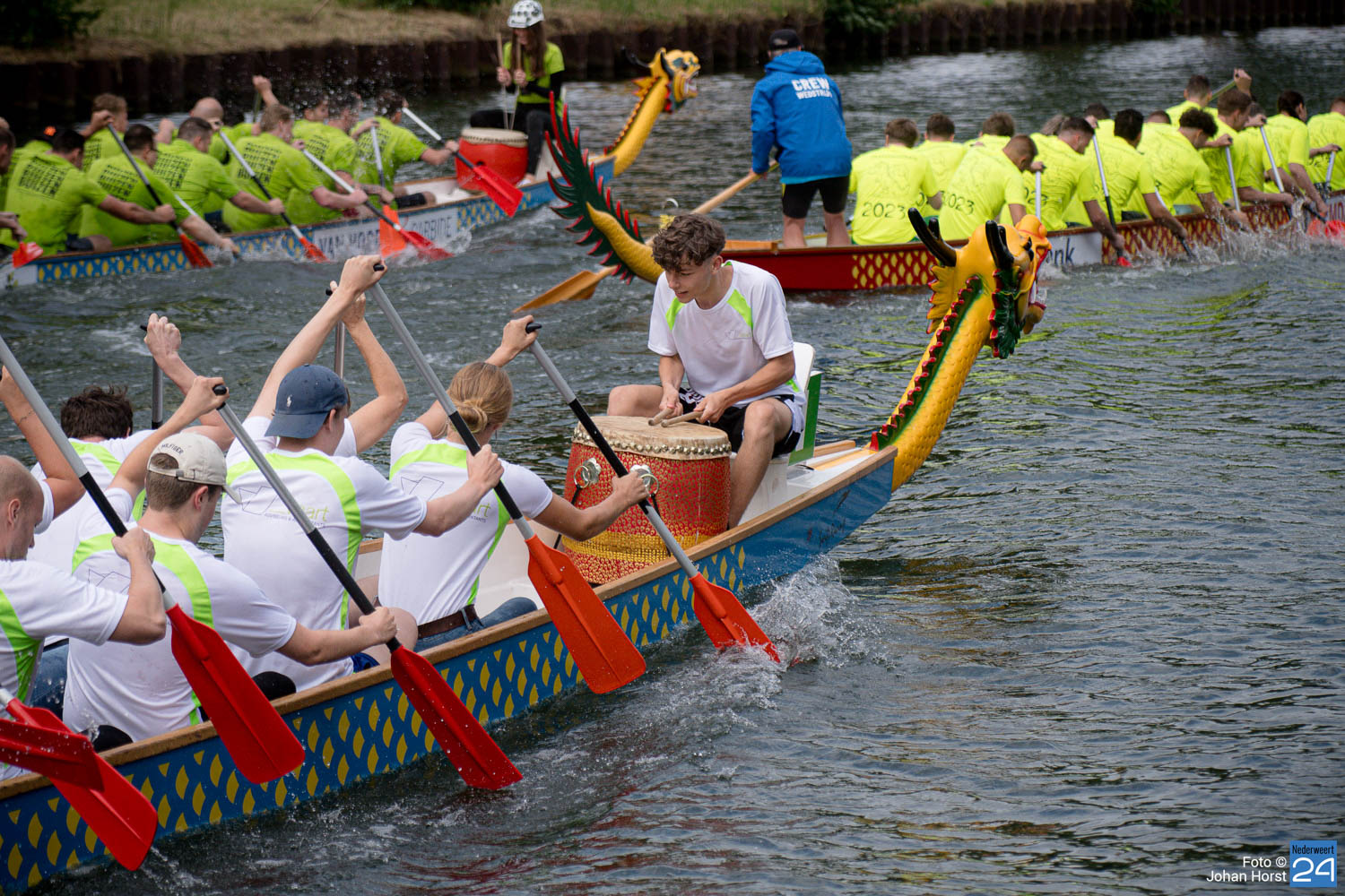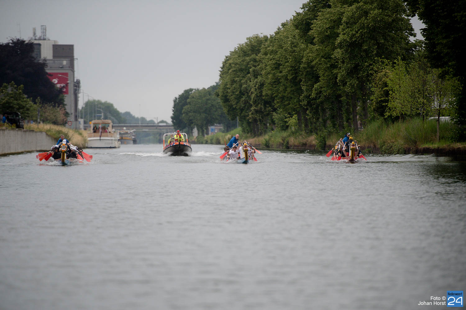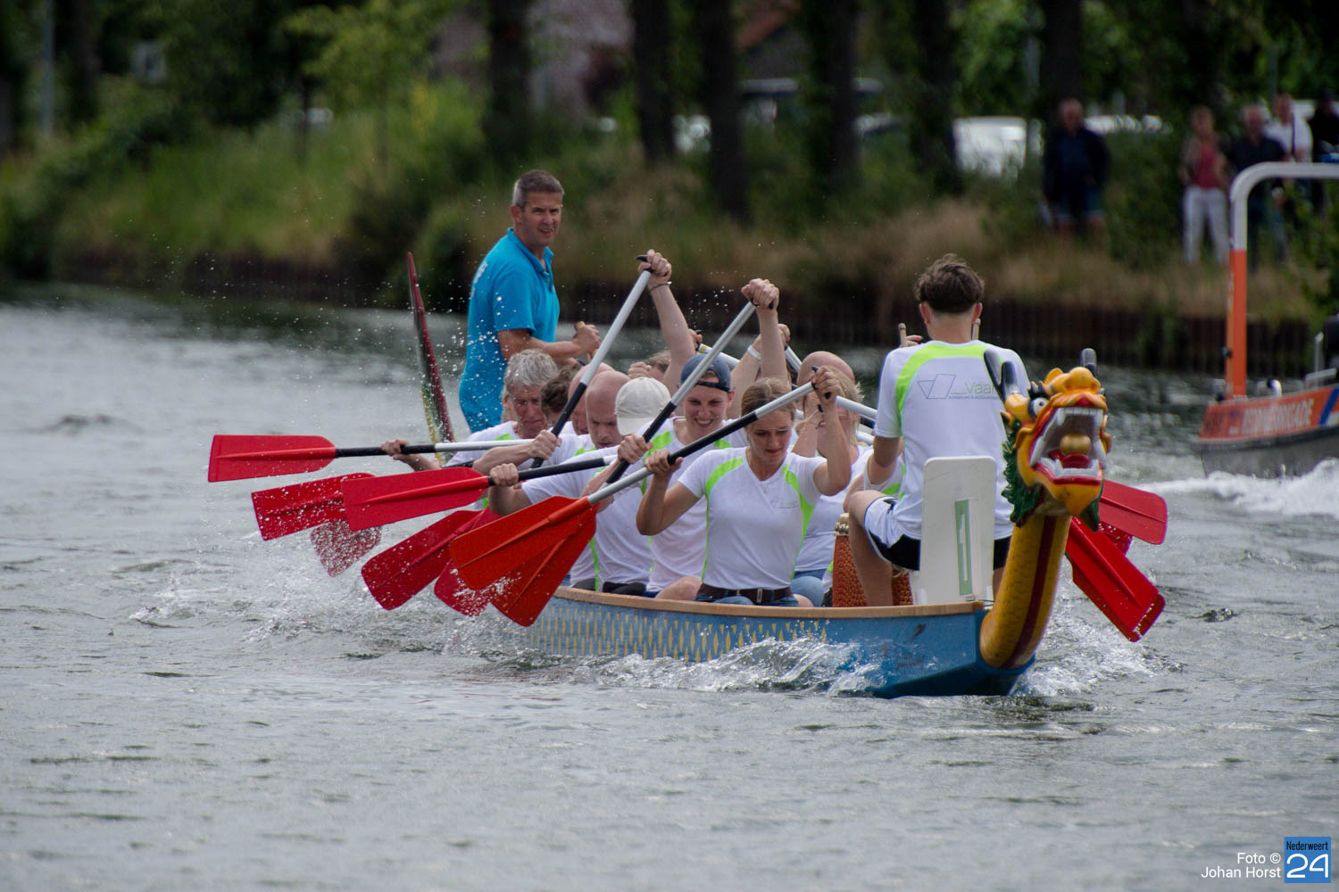 Team ‘Spectrum‘ won voor de tweede keer de drakenbootrace in Weert. Het was een spannende strijd tot aan het einde. De finale werd even uitgesteld door de regen, maar dat weerhield de roeiers er niet van om hun beste krachten te geven.