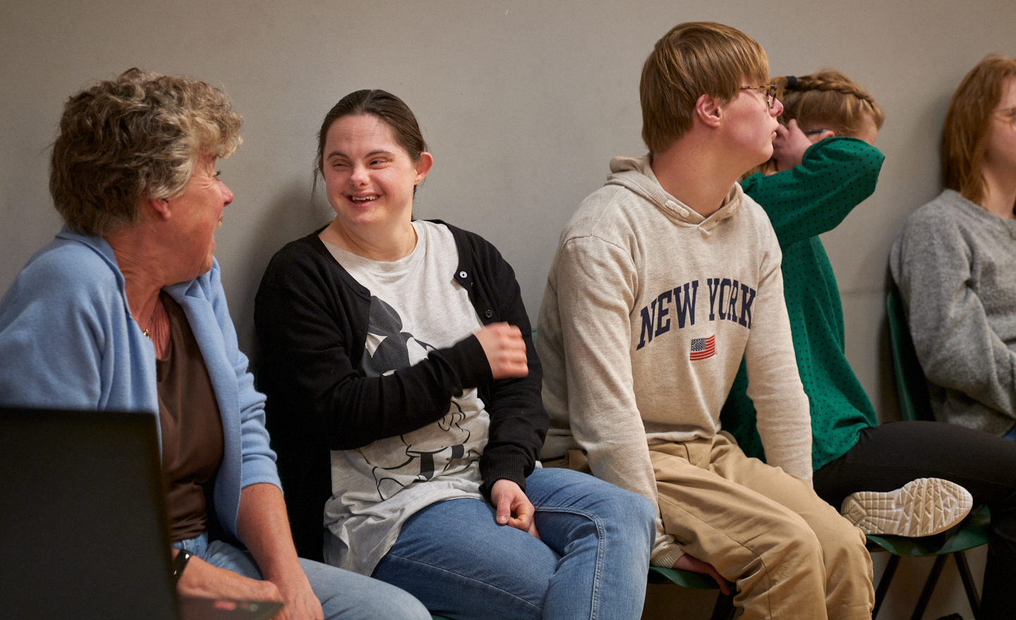 Op woensdagmorgen tijdens de dagbesteding bij RICK zijn er even geen zorgen. Verleden en toekomst bestaan niet. Alleen het nu telt en de sky is the limit. Leunend op een stok, schuifelt Yvon als een hoogbejaarde vrouw door de toneelzaal. Ze improviseert er op los en gaat volledig op in haar rol. Als de scène erop zit, neemt ze glimmend van trots het applaus in ontvangst. “Toneelspelen vind ik het leukst”, zegt ze. “In toneel kan ik mijn ei kwijt. Dan vergeet ik alle stress en heb ik geen tijd om te piekeren.”