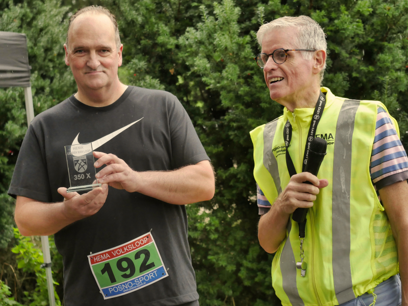 Bij de langere afstanden hadden we ook weer een aantal jubilarissen. Vivianne van de Moosdijk, Daan van Hoef en Linda van de Mortel ontvingen allemaal een medaille omdat ze voor de tiende keer deelgenomen hadden. Godelieve van Otterdijk en Nelson J Peterson werden geëerd voor vijftig deelnames. En de Weertenaren Gard Neijnens en Frans van Diepen hebben beide tweehonderd keer deelgenomen. Al deze lopers kregen een mooi aandenken voor hun geweldige prestaties.