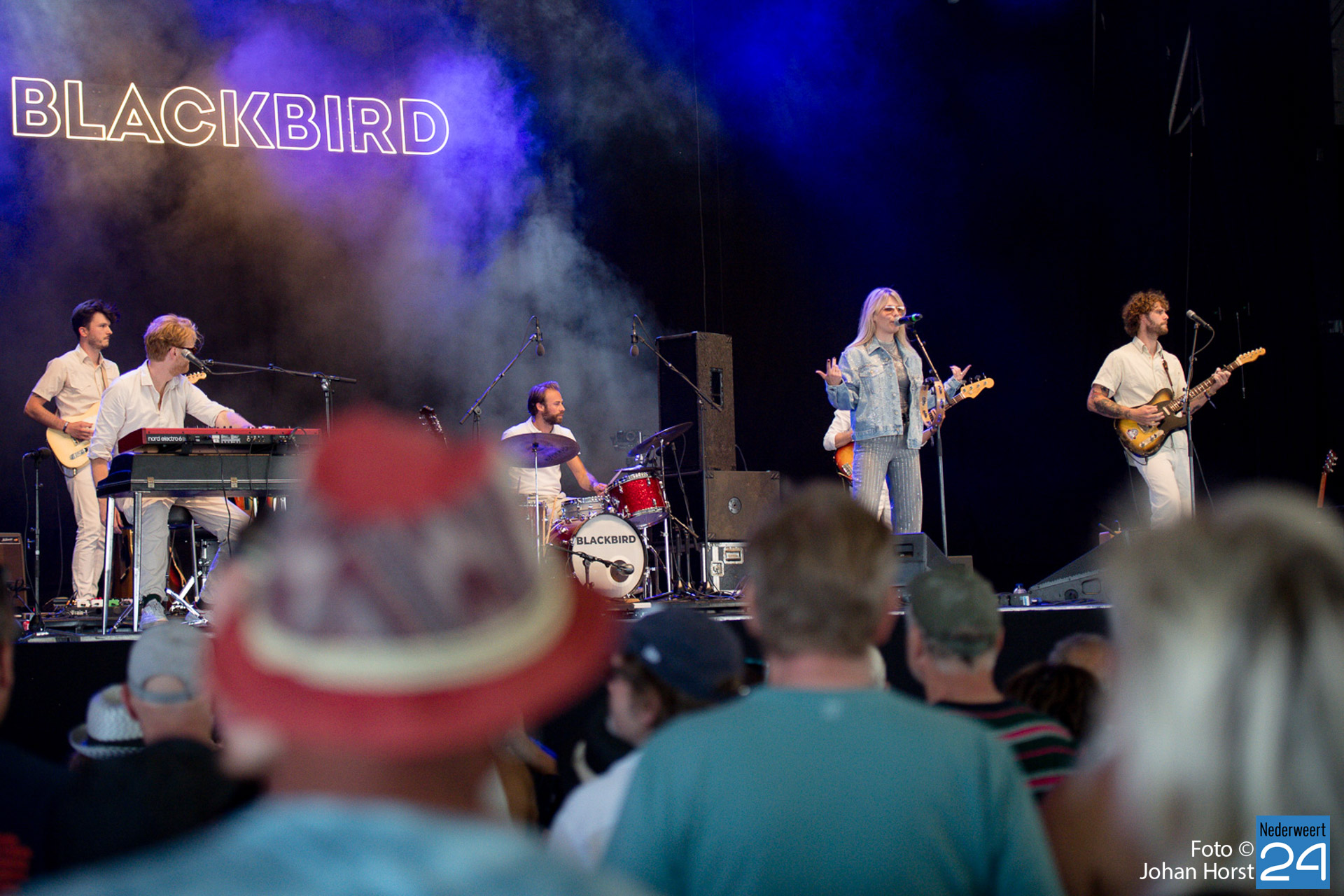 De in glitteroutfit gestoken Merel Koman was het stralende middelpunt van een jonge, energieke band. Als Blackbird heeft deze Limburgse dame het in zich om een hele grote te kunnen worden. Met haar eigen nummers bracht zij enthousiasme en gedrevenheid, die oversloeg op het publiek. Maar ook covers, zoals “Lean On Me” (Bill Whithers) en “White Rabbit” (Jefferson Airplane) werden in een heel eigen smakelijk sausje gepresenteerd.
