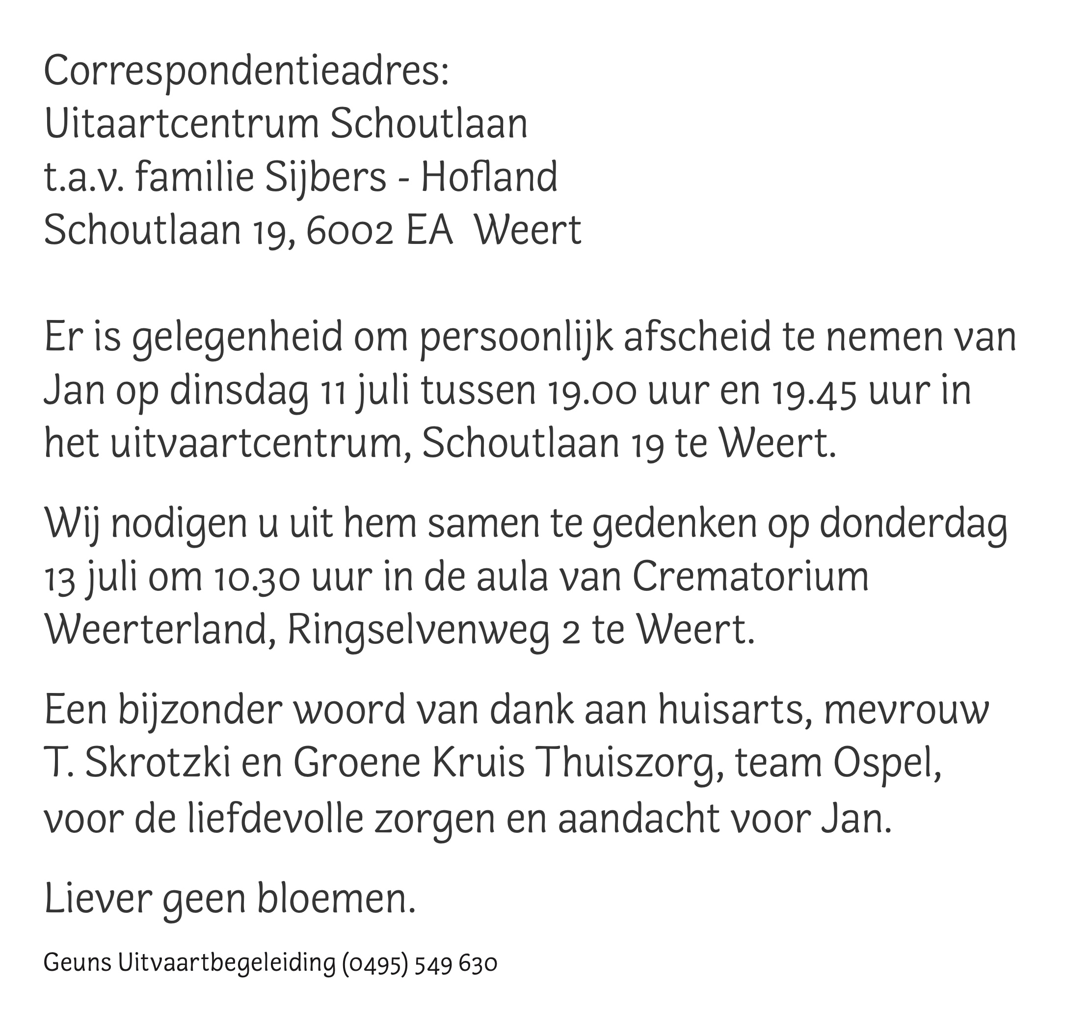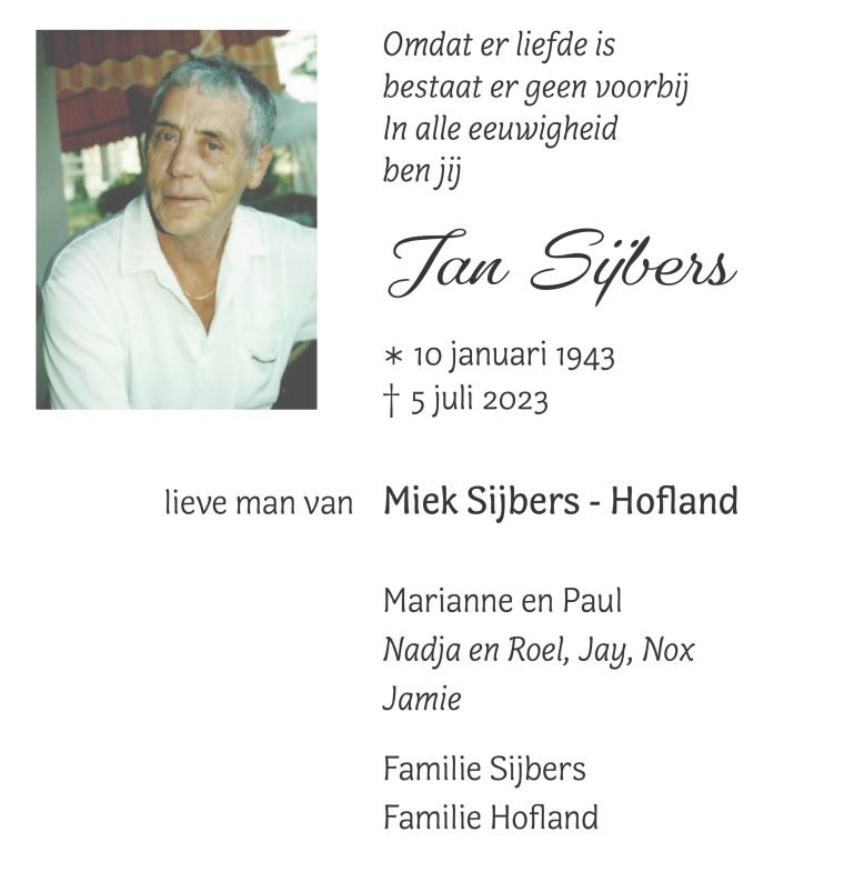 Overlijdensbericht: Jan Sijbers †