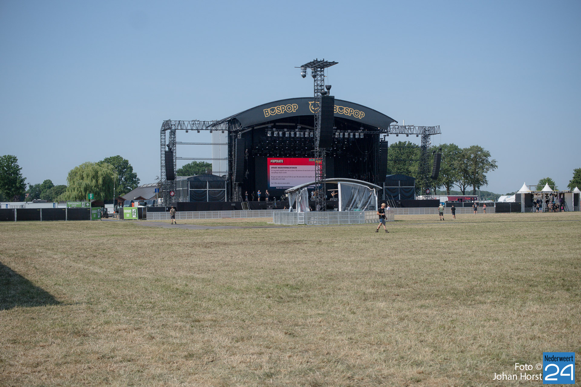 Wat met het hoogste aantal bezoekers en een gezellig programma de topdag van de 41e editie van Bospop had moeten worden, werd zondagochtend definitief weggeschreven als een zwarte dag in de geschiedenis van dit Weerter festival. Of het nu een No-Go, einde oefening, finito basta of over-en-uit werd genoemd, het resultaat was hetzelfde. Medewerkers, die al in groten getale aanwezig waren, reageerden terneergeslagen, maar ook gelaten en vol begrip voor deze moeilijke beslissing.