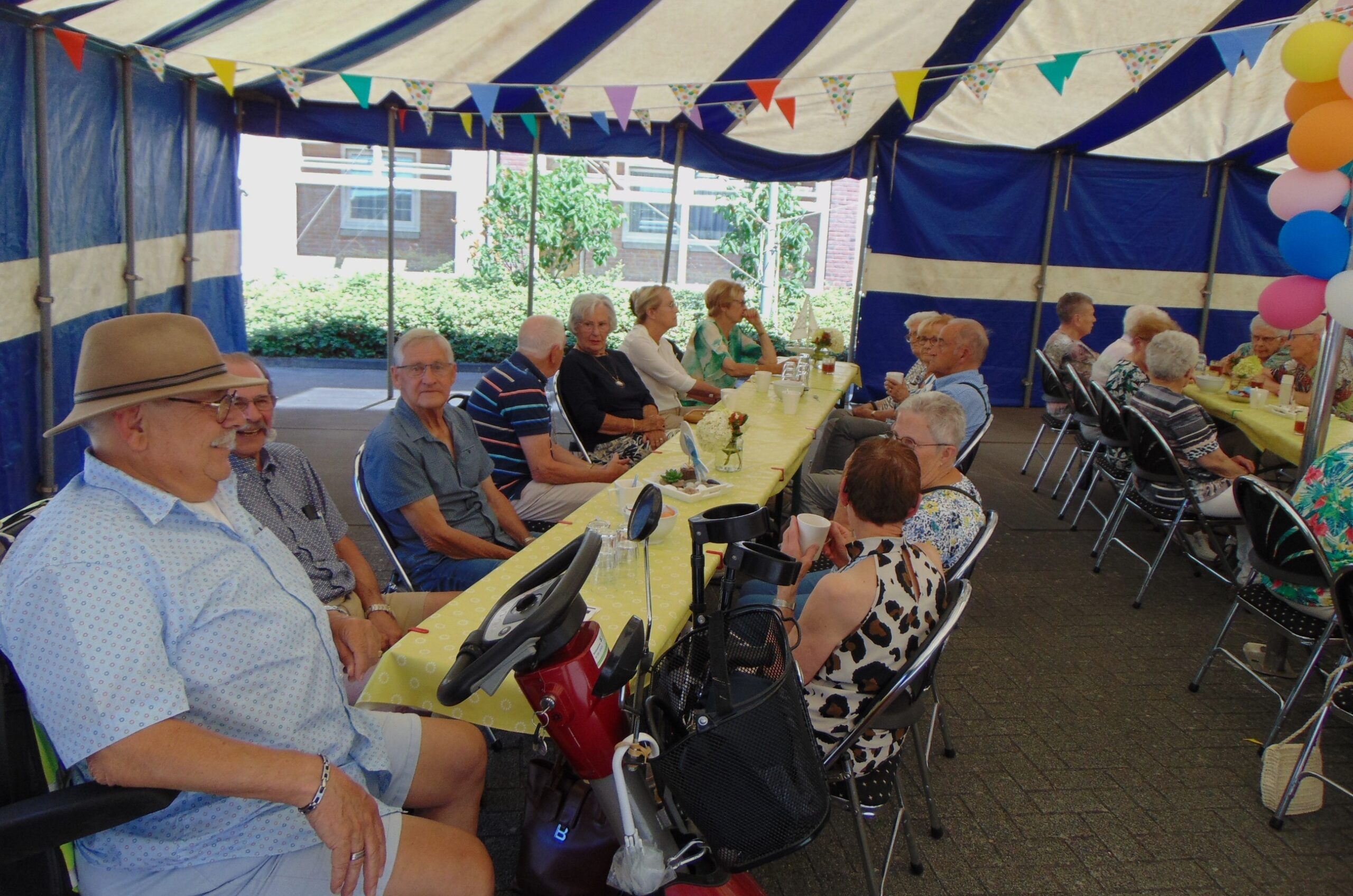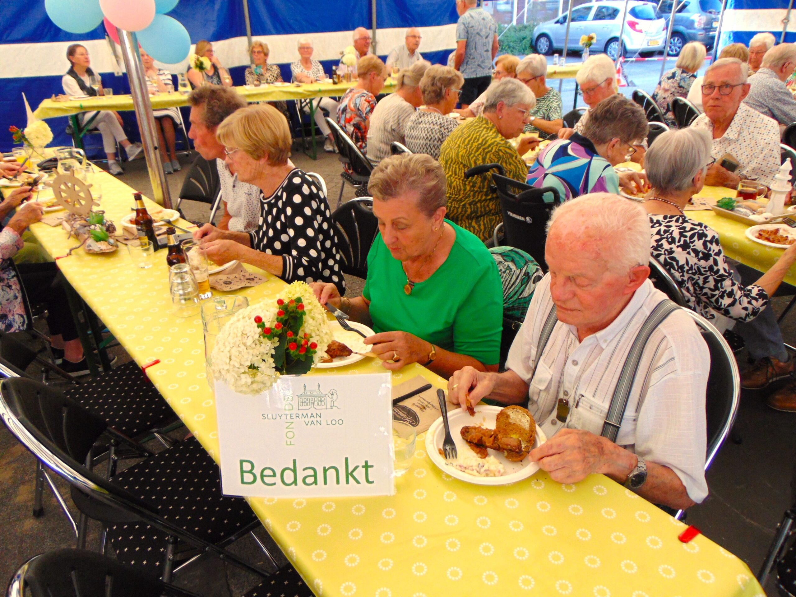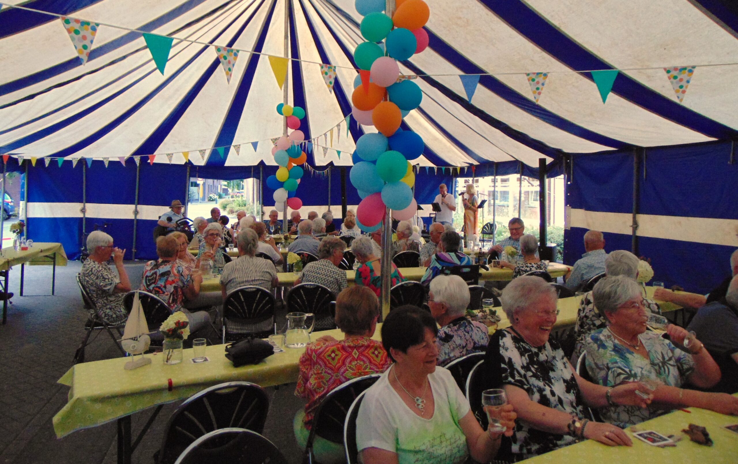 De sfeer was al snel feestelijk dankzij een optreden van Duo Dance. De menigte zong luidkeels mee met bekende liedjes van weleer. De voetjes gingen van de vloer tijdens een medley van twistmuziek, en zelfs een polonaise mocht niet ontbreken.