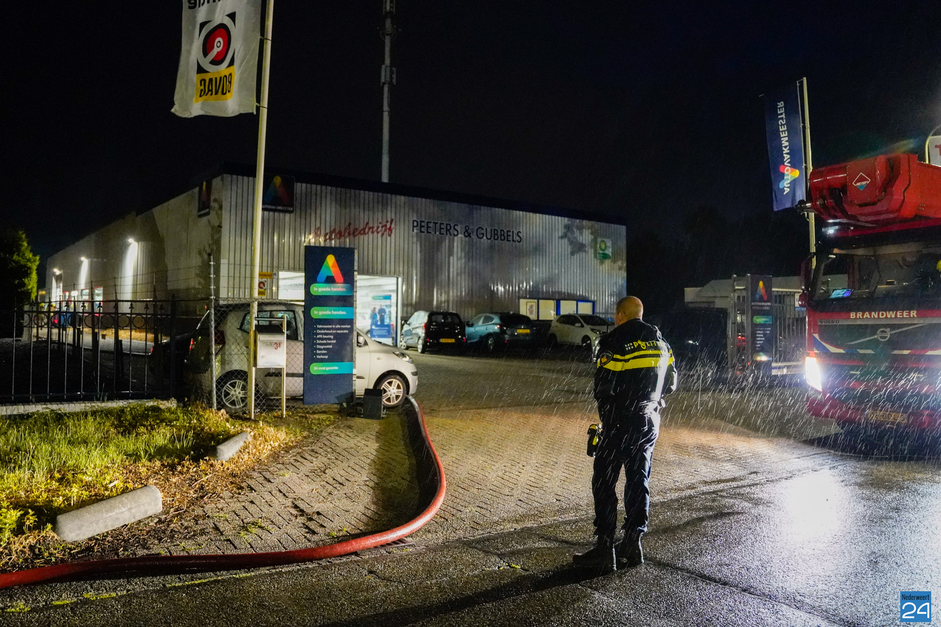In de nacht van dinsdag op woensdag heeft er brand gewoed op het achterterrein van een autobedrijf aan de Vrijkenstraat in Roggel.