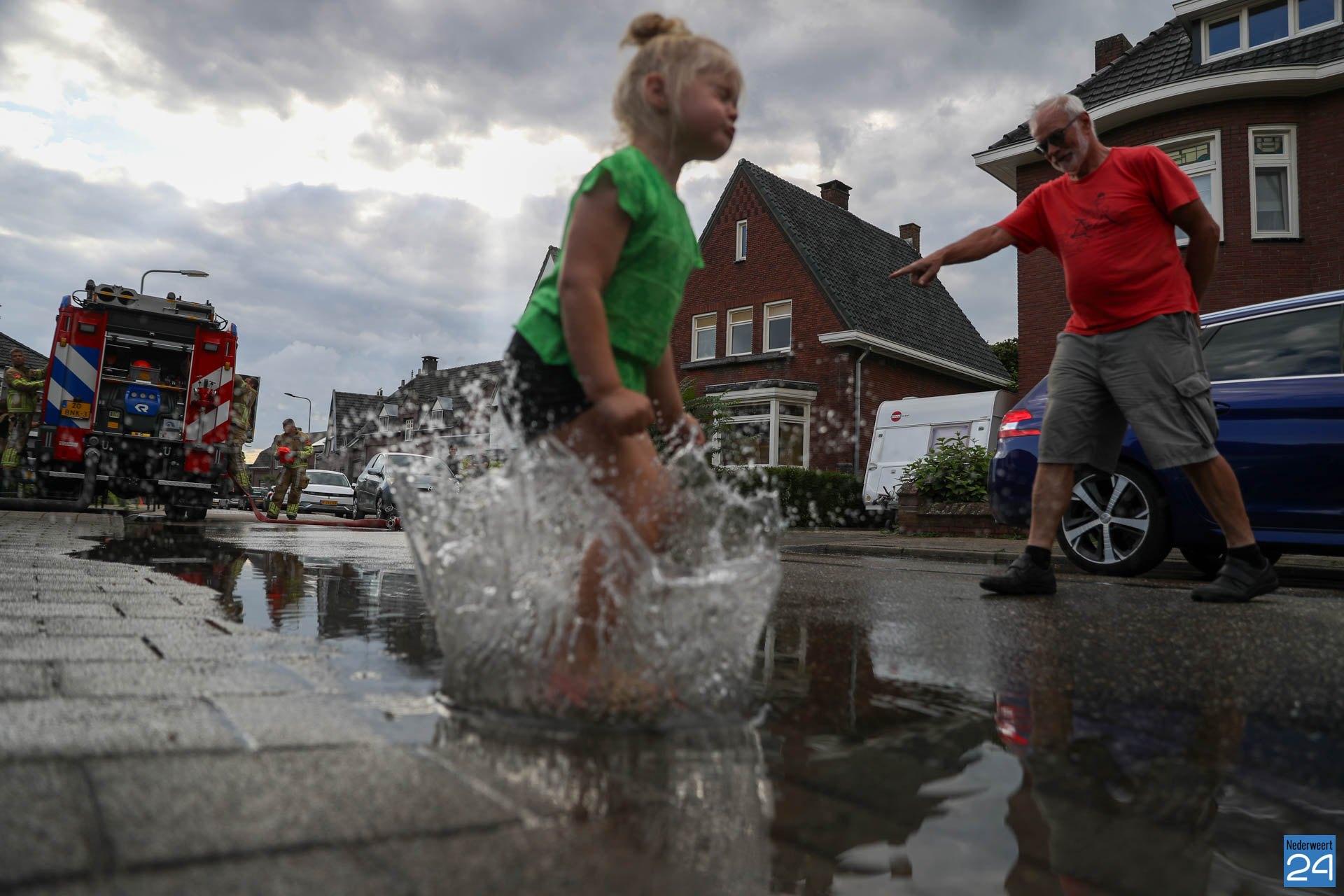 De weg was tijdelijk afgesloten voor het verkeer. Het leegpompen van de kelder gaf veel water op straat, wat met dit warme weer een leuk verzetje was voor de kinderen uit de straat. De vrouw des huizes was erg geschrokken, maar was erg blij met de snelle hulp in inzet van de brandweer.