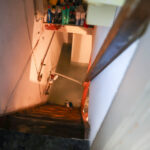 De vrouw des huizes wilde iets uit de kelder pakken. Toen ze terug naar boven liep, bleef ze met haar jurkje achter de waterleiding hangen. Dit kleine zetje was genoeg om de waterleiding te doen springen.