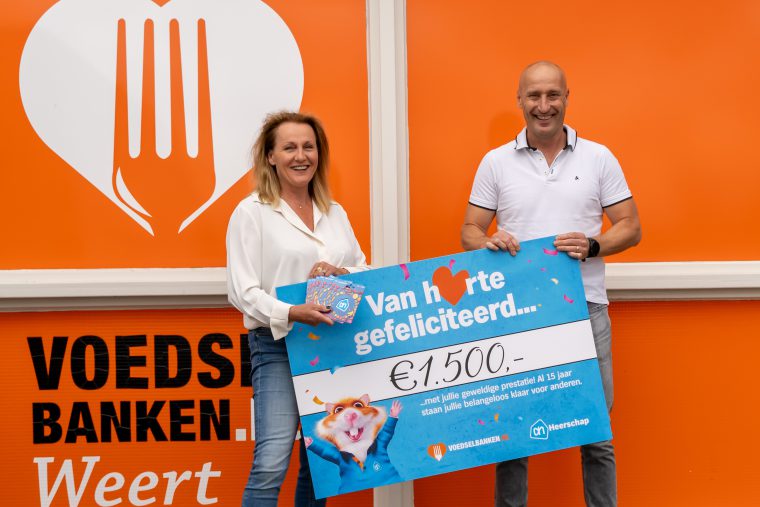 Albert Heijn Heerschap werkt al jarenlang op verschillende manieren samen met lokale voedselbanken. Als blijk van waardering ontving Voedselbank Weert een donatie van €1.500,- van eigenaar Stan Heerschap. ‘’Een enorm mooie prestatie hoe Voedselbank Weert zich al 15 jaar belangeloos inzet voor de mensen in de omgeving. Om de mensen iets extra’s te kunnen geven, bieden we Voedselbank Weert deze cheque aan’’, vertelt Stan Heerschap.