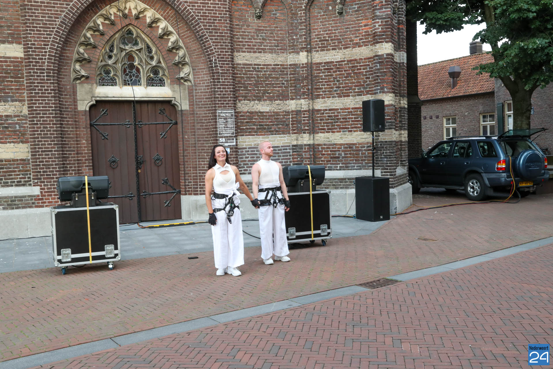 Acrobaten van Bencha Theater namen op woensdag 12 juli jl. tijdelijk bezit van de Lambertustoren in Nederweert. Via touwen en onder begeleiding van toepasselijke muziek zweefden ze langzaam naar beneden en brachten ze het publiek in vervoering. De adembenemende act maakte deel uit van de tweede editie van de Torenfeesten, een evenement waar cultuur en erfgoed hand-in-hand gaan.