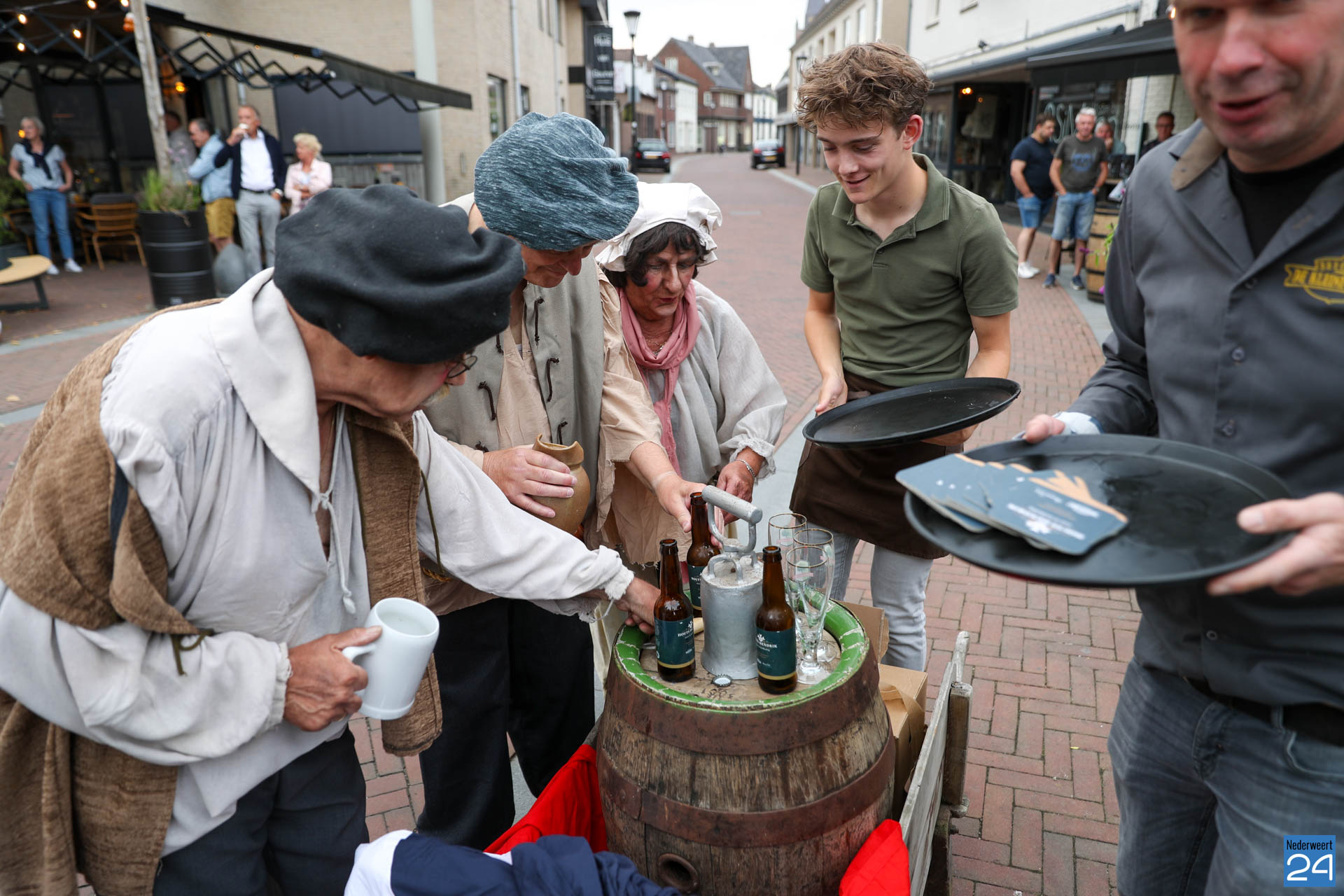 Zijn terugkomst werd afgelopen donderdag gevierd met een klein openluchtspektakel op het Horecaplein. Daar arriveerde de legerveteraan, moe en kreupel, na een wekenlange voetreis van Waterloo naar Nederweert. Vol van verhalen maar ook met vreselijke dorst, kwam hij daar in de vroege avond aan op het plein. De umbelder (dorpsomroeper) van Nederweert kondigde toevallig net op dat moment de binnenkomst van het pas gebrouwen nieuwe bier aan, dat de naam kreeg van Houts Hendrik.