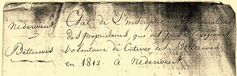 Daarom bepaalde Napoleon in 1812 dat alle Europese boeren verplicht suikerbieten moesten gaan telen t.b.v. de suikerproductie. De Franse provincies uit de voormalige Zuidelijke Nederlanden (waartoe ook Nederweert behoorde) kregen vanuit Parijs samen een quotum van 13.400 ha opgelegd. In Weert was men niet zo volgzaam en het bevel van Napoleon kon hen eigenlijk geen spreekwoordelijke biet schelen. Er waren daar maar drie boeren die er gevolg aan gaven,vooral omdat ze ook gemeentebestuurder waren. Geheel anders was het in Nederweert, waar burgemeester Jan Trouwen nogal Fransgezind was en er nogal wat werk van wist te maken om te scoren bij zijn superieuren.