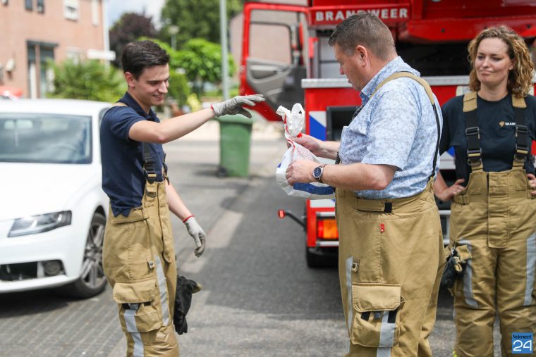 Brandwer redt huismus uit afvoerpijp Taxusstraat Nederweert