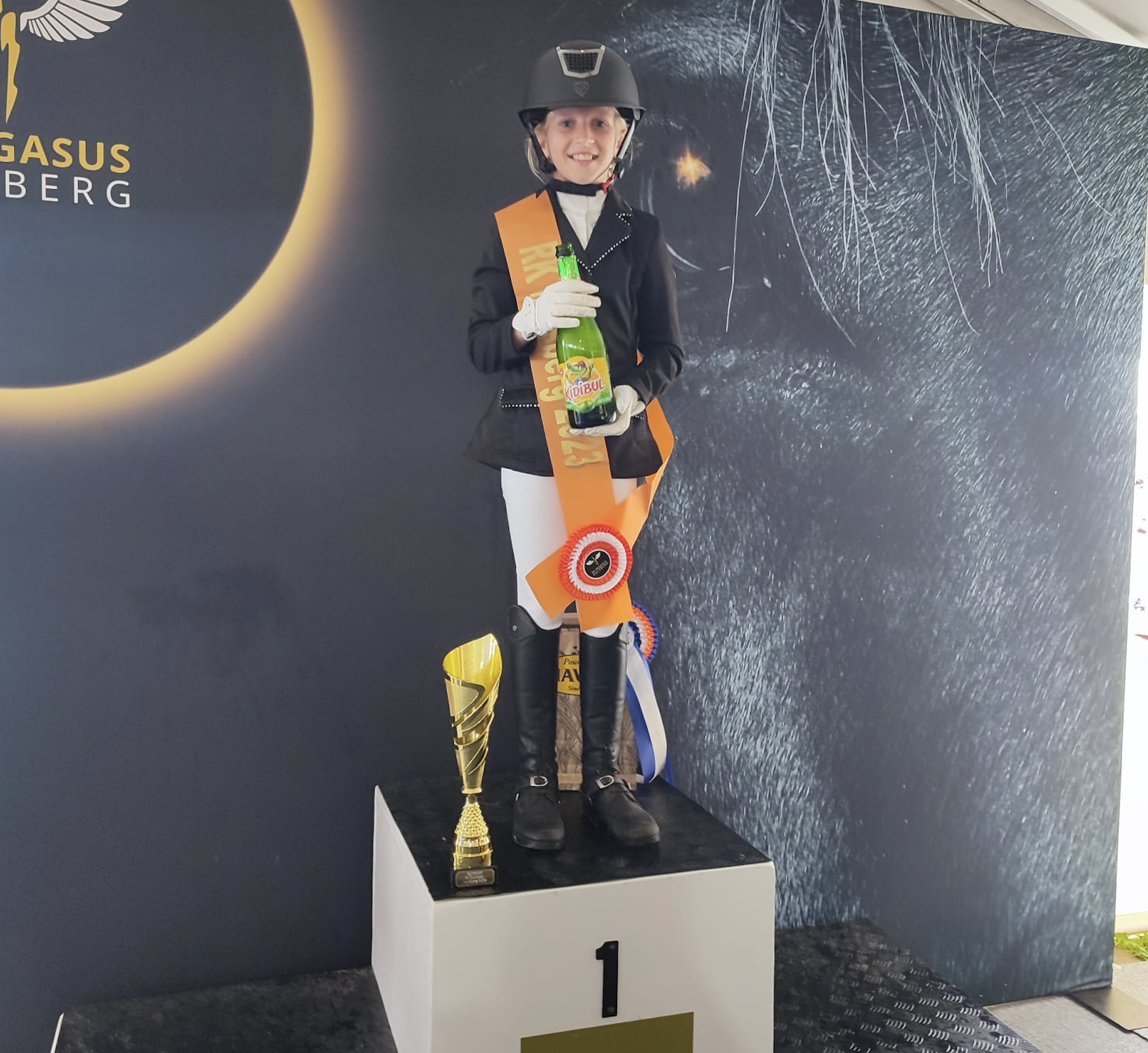 Fay van den Broek uit Ospel mag zich sinds zaterdag 30 juli Limburg kampioen noemen in de klasse L1 dressuur. Deze knappe prestatie wist ze samen met haar pony Bambi te behalen in Hulsberg.