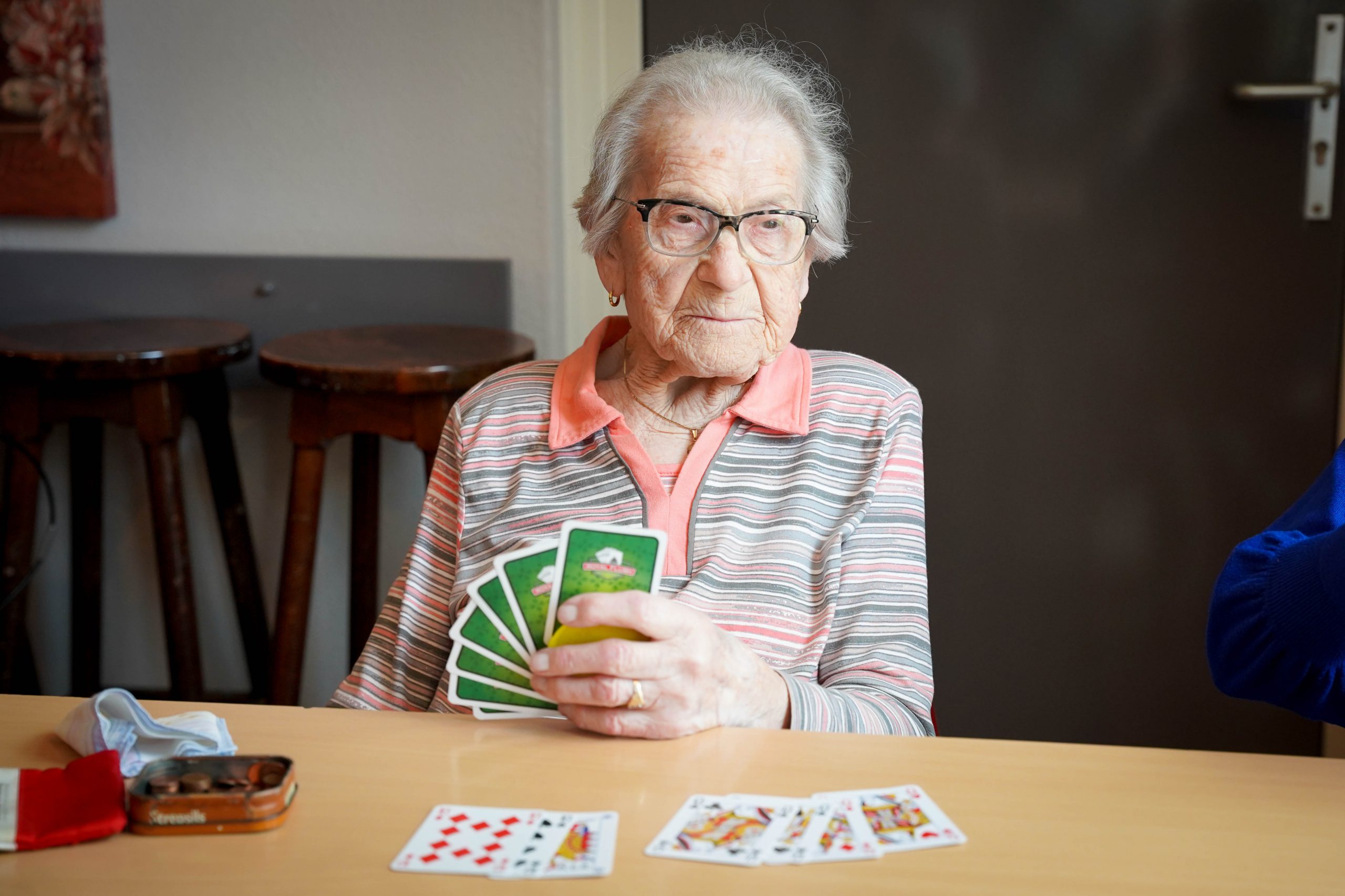 Vier eeuwen later is Nel van Gemert-Stockmans zo’n spreekwoordelijke uitzondering in Nederweert. En niet alleen vanwege haar 100-jarige leeftijd waarop zij op 30 juli kwam te overlijden. Tot op hoge leeftijd fris van geest en begiftigd met een fabelachtig geheugen. Trots op haar al ontelbare malen verlengde rijbewijs en niet zo heel lang geleden nog grote delen van Limburg doorkruisend met haar auto. Wonend op Staat tot in haar laatste levensjaar sloeg ze geen TV-actualiteitenprogramma over en de krant spelde ze dagelijks van a tot z. En na alles gelezen te hebben knipte ze uit wat ze interessant vond en wilde bewaren. En dan niet te vergeten het rikken en jokeren in de Pinnenhof. Hersengymnastiek was Nel niet vreemd.
