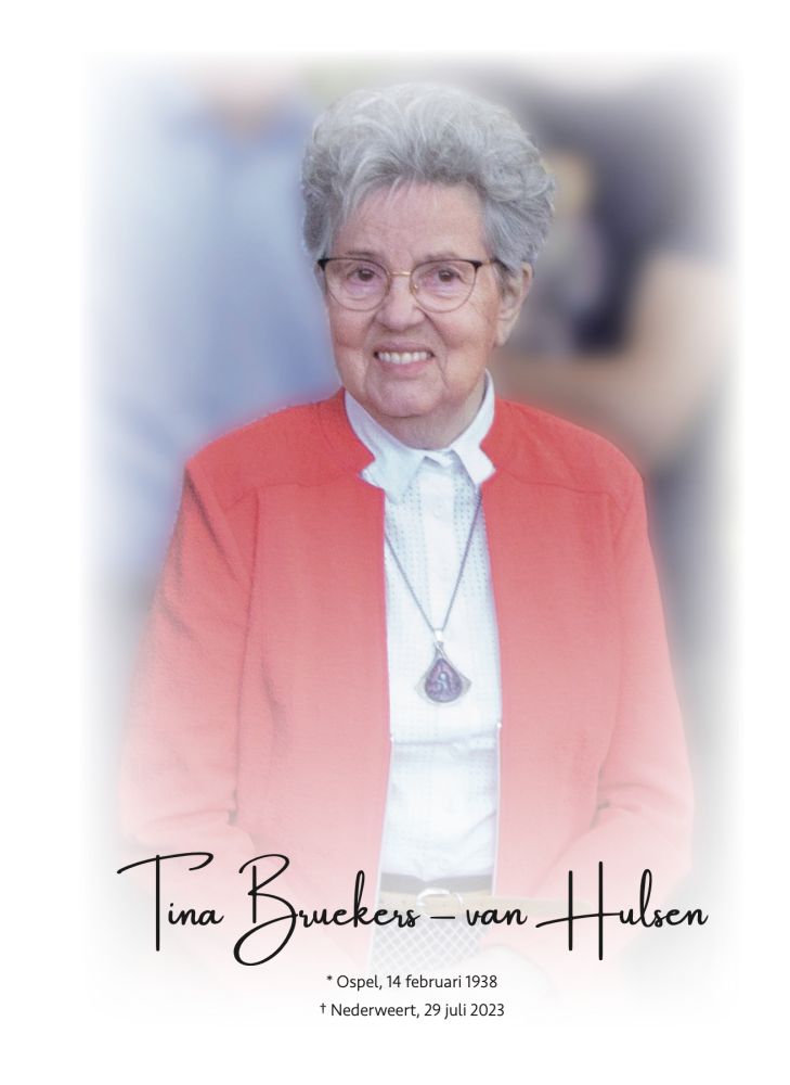 Overlijdensbericht: Tina Bruekers – van Hulsen †