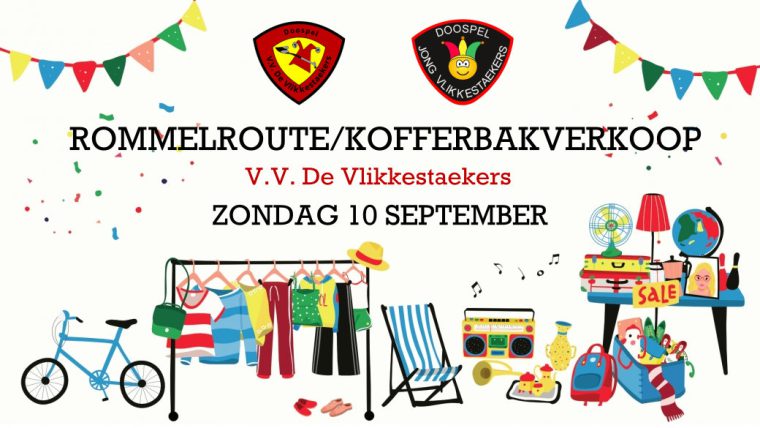 Behoor jij ook tot die laatste groep? Breng je oude spullen dan niet meteen naar de milieustraat maar bewaar ze tot 10 september 2023. Op die dag organiseert V.V. De Vlikkestaekers uit Ospel dit jaar voor de tweede keer een rommelroute, met nu voor de eerste keer een kofferbak verkoop op het veld bij Handboog Wilhelmina, Pastoor Vullersstraat 38A van 10.00 tot 15.00 uur. Voor maar € 3,- verkoop je al vanuit je oprit en kom je op de deelnemerslijst. Als je wil verkopen op het veld vanuit je auto kost je dat € 5,-. Zo brengen je tweedehands spullen nog een mooie cent op. Iedereen mag zich aanmelden. Kijk voor alle informatie en de prijzen op de website en geef je ook op.