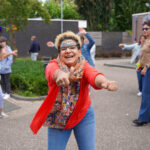 De middag werd begonnen met lekker swingen op muziek begeleidt door Aniek Lalieu van ‘A L DANCE’. Er werd volop gedanst op nummers als Tante Rita en de Vogeltjesdans met een grote lach op de gezichten van de cliënten en de begeleiding. Daarna volgde een spetterend optreden van Math van Veldhoven! Als afsluiting werd er heerlijk samen gegeten.