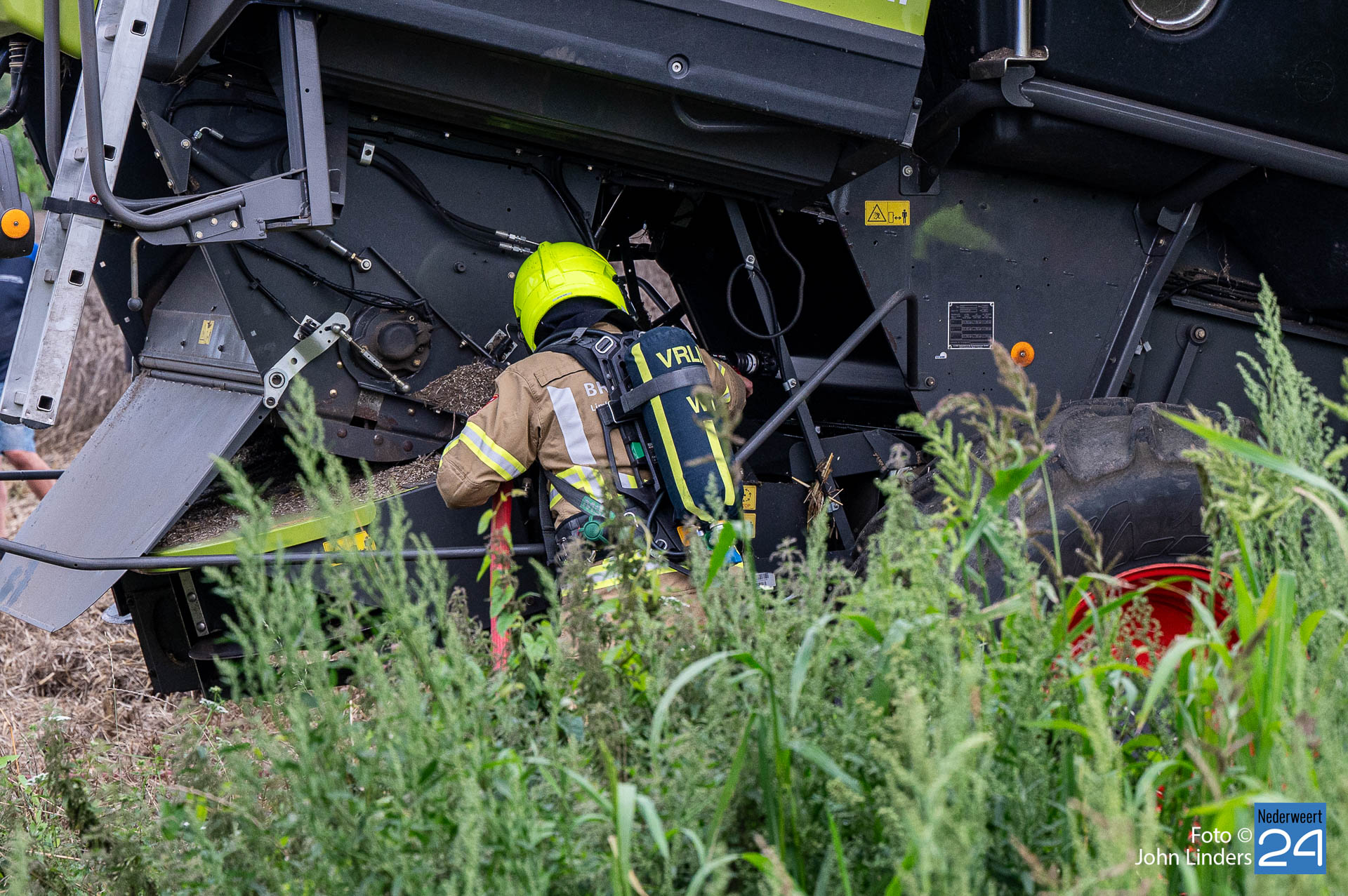 De machine stond vanbinnen in brand, waar ook de nodige rook bij vrij kwam. Door de brand had ook het koren onder de machine vlam gevat, dit had de chauffeur van de machine zelf al snel geblust. De brandweer van Nederweert was snel ter plaatse en heeft de brand in de machine kunnen blussen, ze onderzoeken nog waar de brand is ontstaan. Of de machine nog gaat maaien vanavond is de vraag.