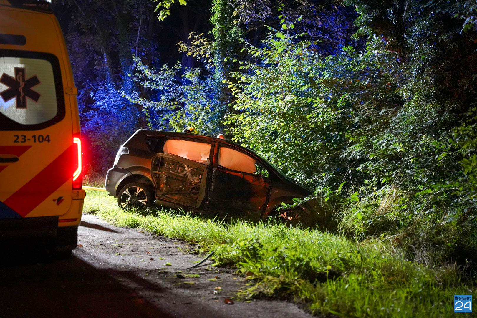 Een auto vloog uit de bocht en botste daarbij tegen een boom. Uiteindelijk kwam de auto in de berm tot stilstand. Hulpdiensten werden gealarmeerd, waaronder ook de brandweer. Uiteindelijk konden de inzittenden van de auto zelfstandig uit de auto komen.