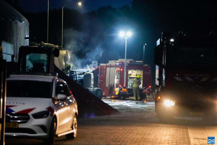 Zaterdagavond is er op een terrein aan Aan de Heibloem in Heythuysen brand uitgebroken in een hoogwerker.