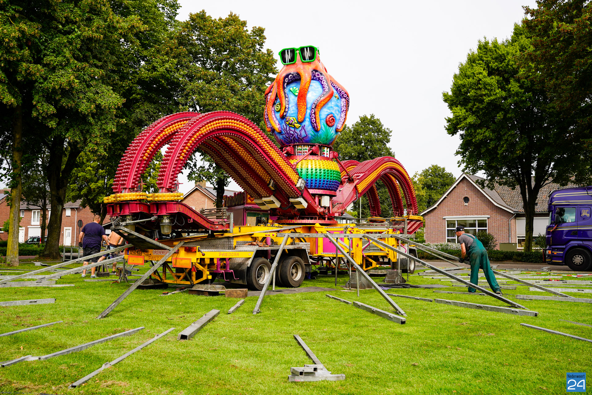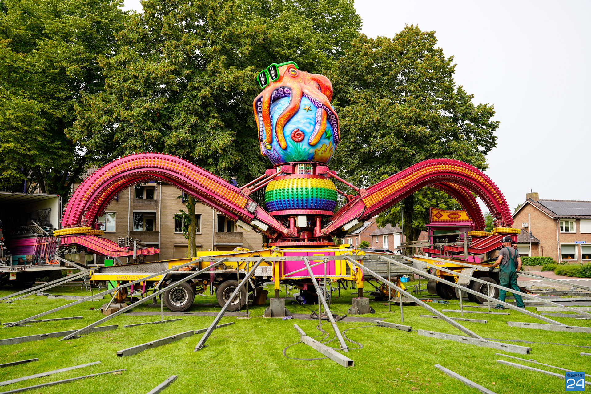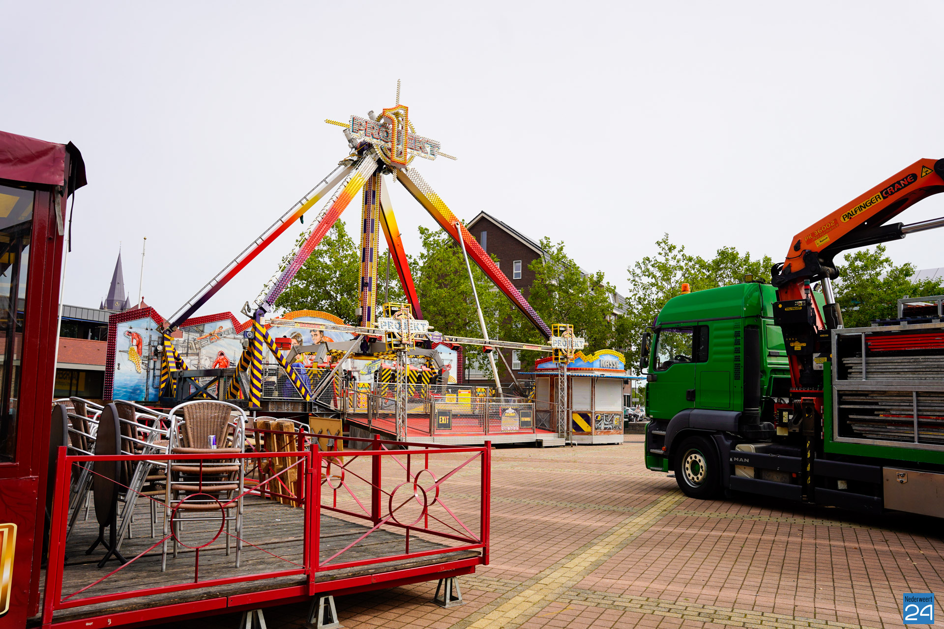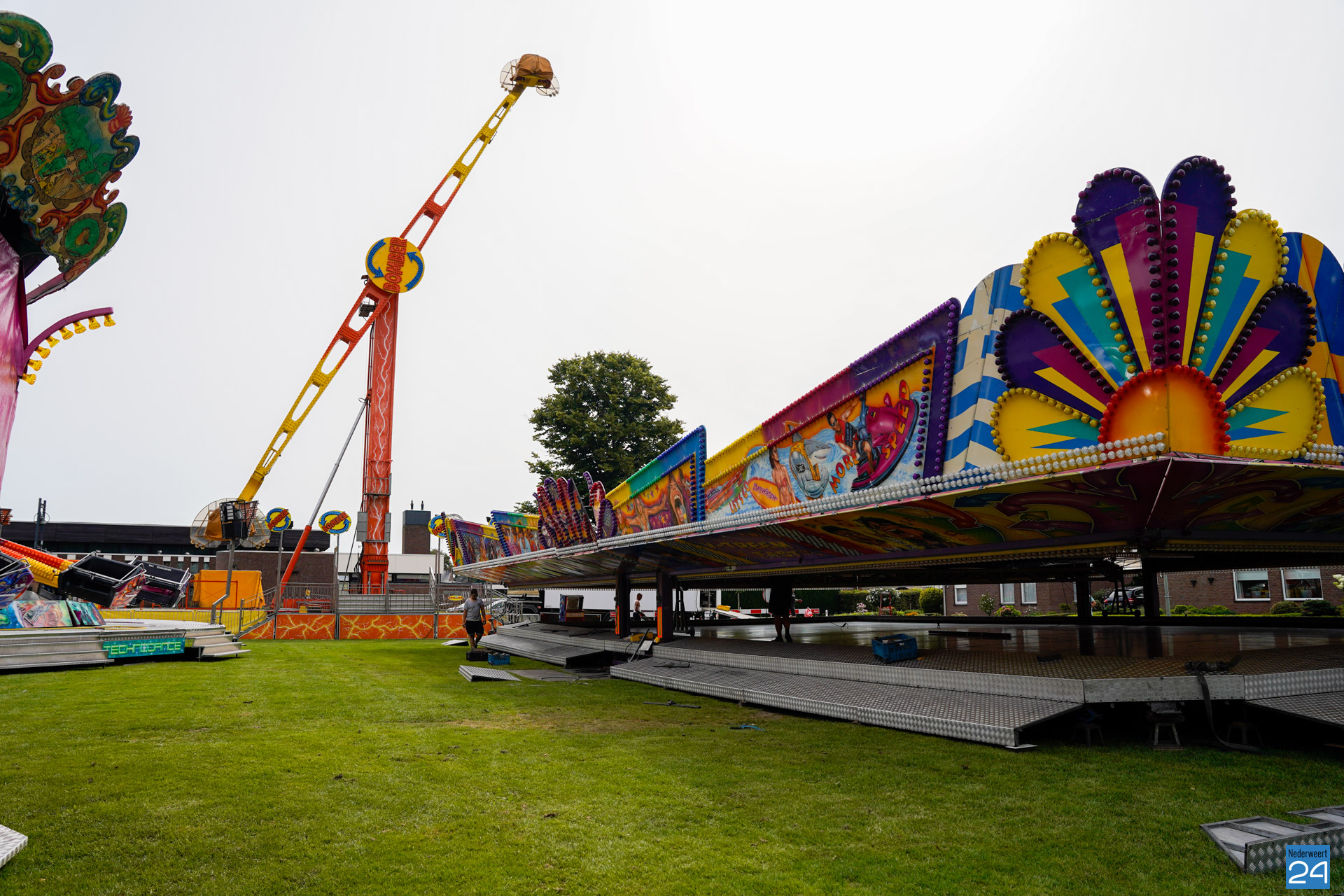 Woensdagavond en donderdagochtend werd er weer vol op gebouwd op het Rochusplein in Budschop en het Raadhuisplein in Nederweert. Morgen gaat de kermis van start.