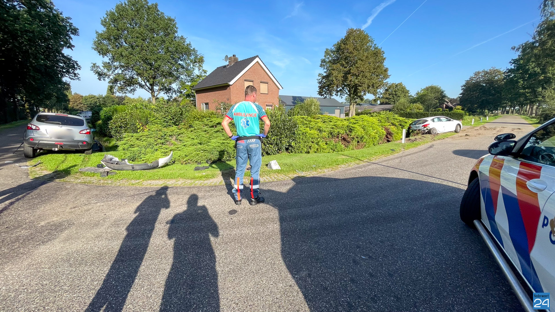 Eén van de auto’s kwam in de berm tot stilstand. De politie maakt verslag op van het ongeval. Een berger heeft beide voertuigen meegenomen.