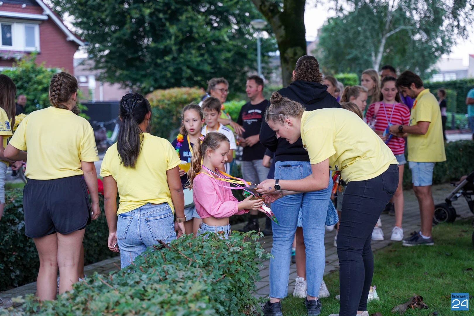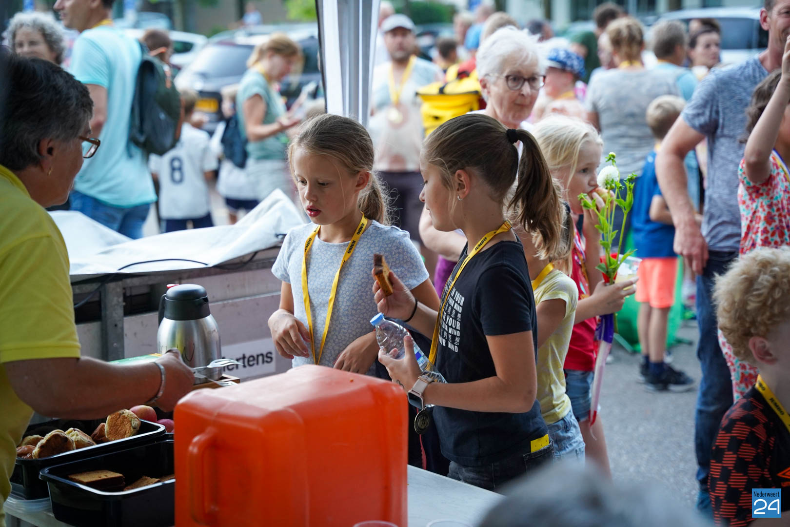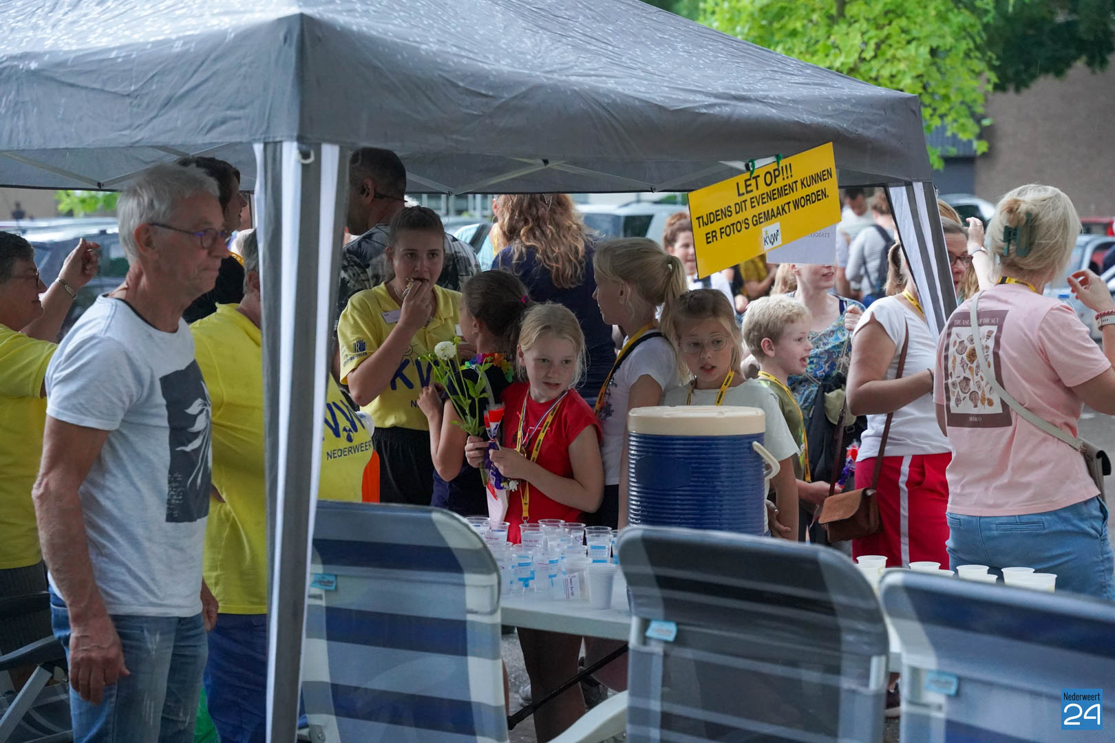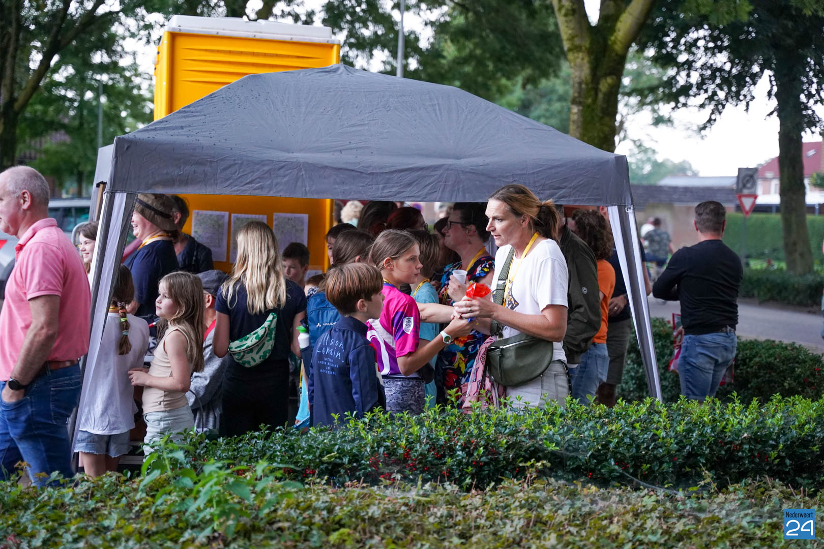 Vrijdagavond zijn de wandelaars van de Avondwandelvierdaagse Nederweert onthaald aan de achterzijde van het gemeentehuis.