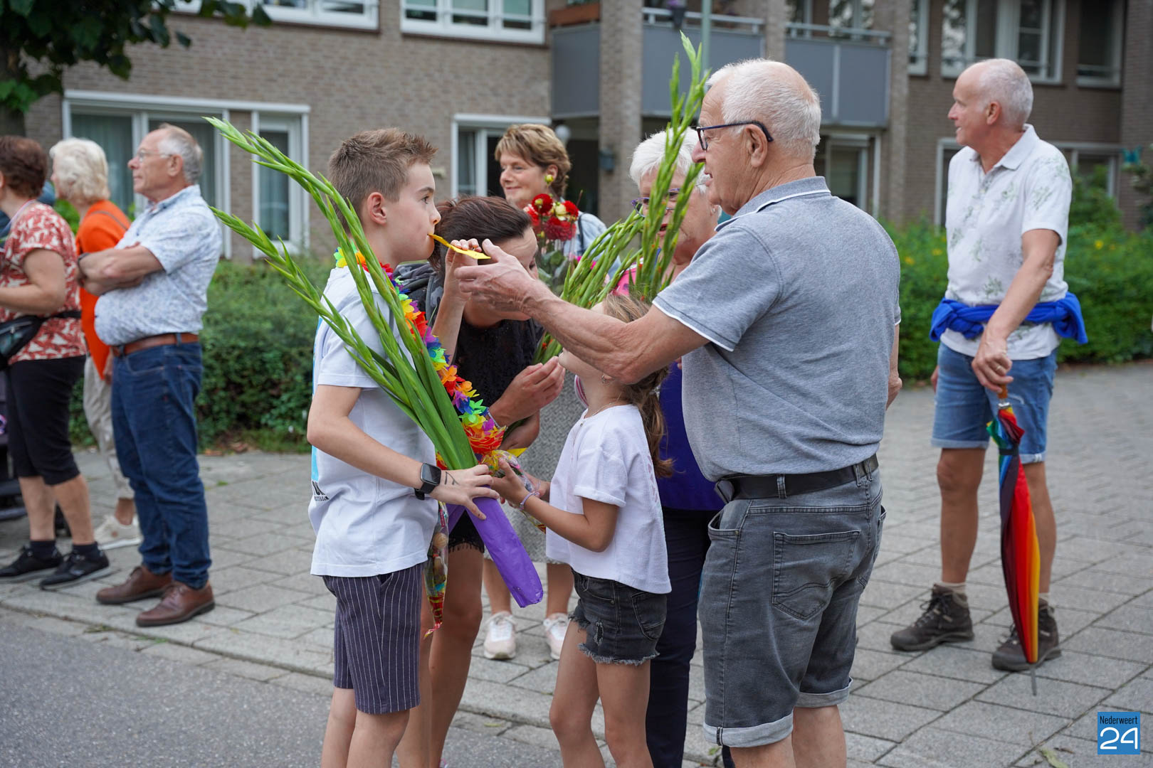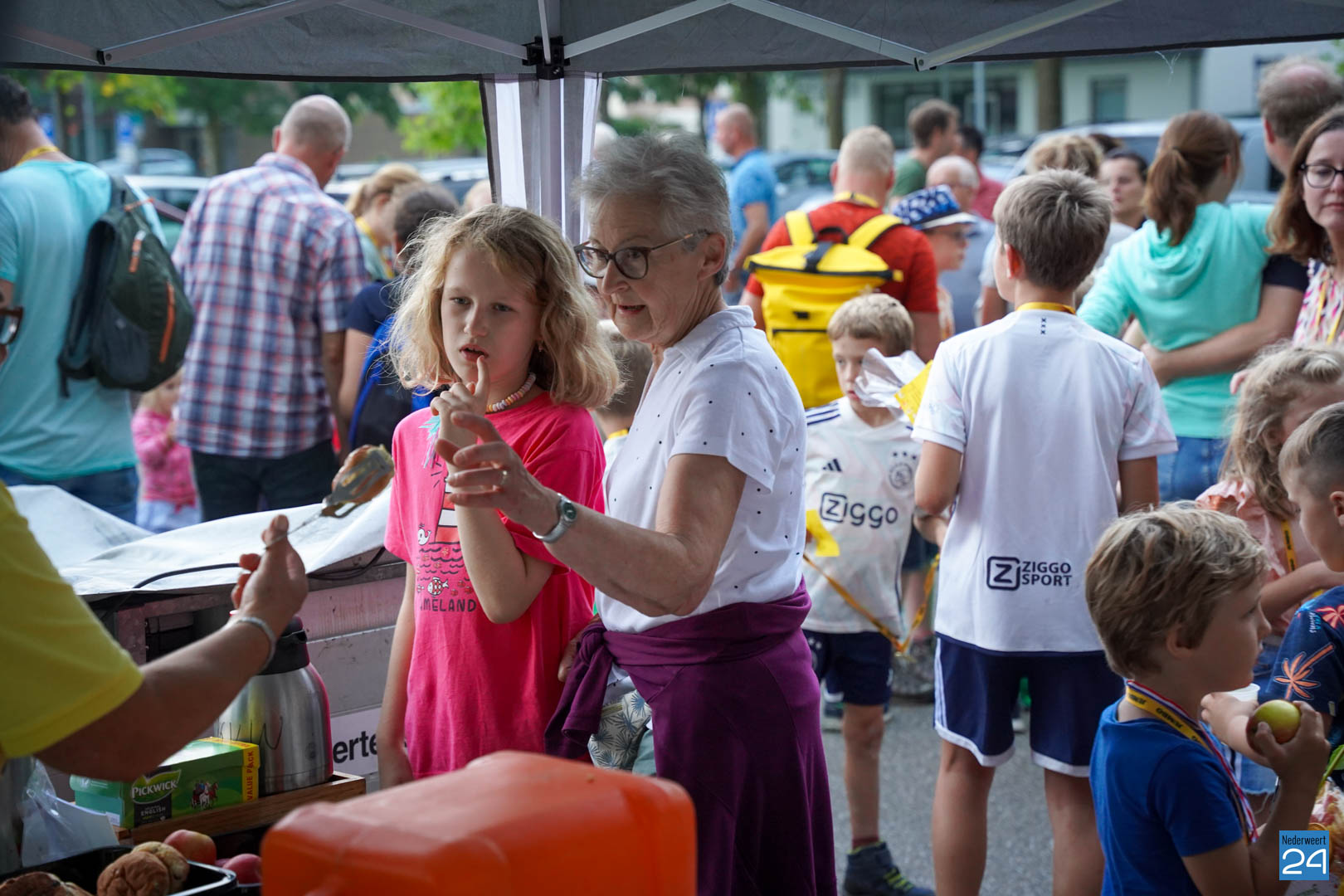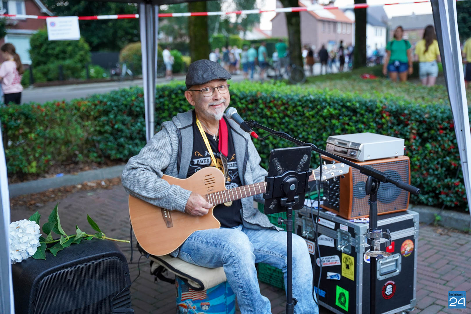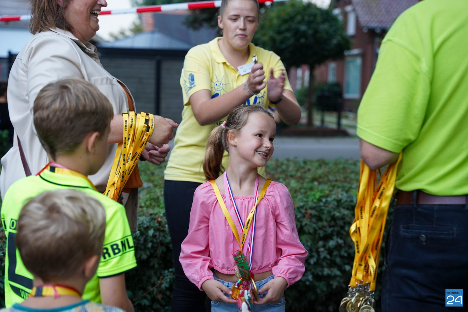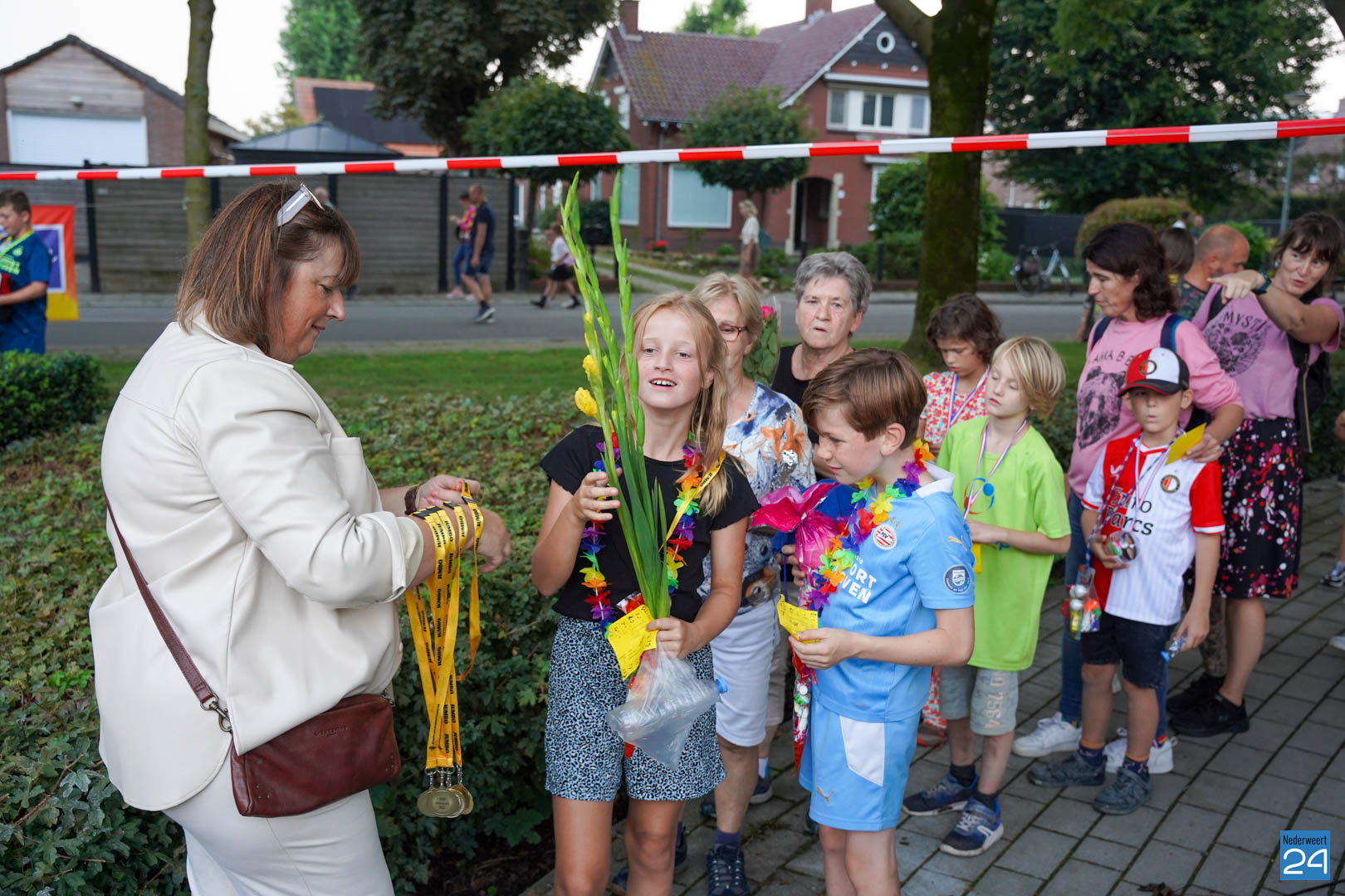 Vrijdagavond zijn de wandelaars van de Avondwandelvierdaagse Nederweert onthaald aan de achterzijde van het gemeentehuis.