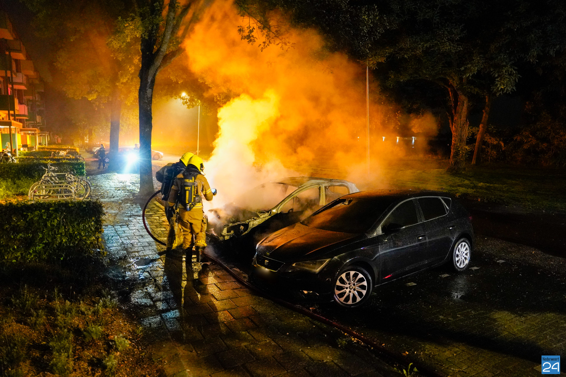 In de nacht van maandag op dinsdag is er brand ontstaan in een geparkeerde auto aan de Laurenburg in Weert. Dat gebeurde om 02.42 uur.
