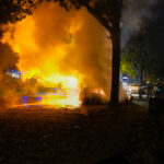 Het voertuig kwam geheel ten prooi aan de vlammen. Een auto die ernaast geparkeerd stond raakte eveneens zwaar beschadigd. Niemand raakte gewond.