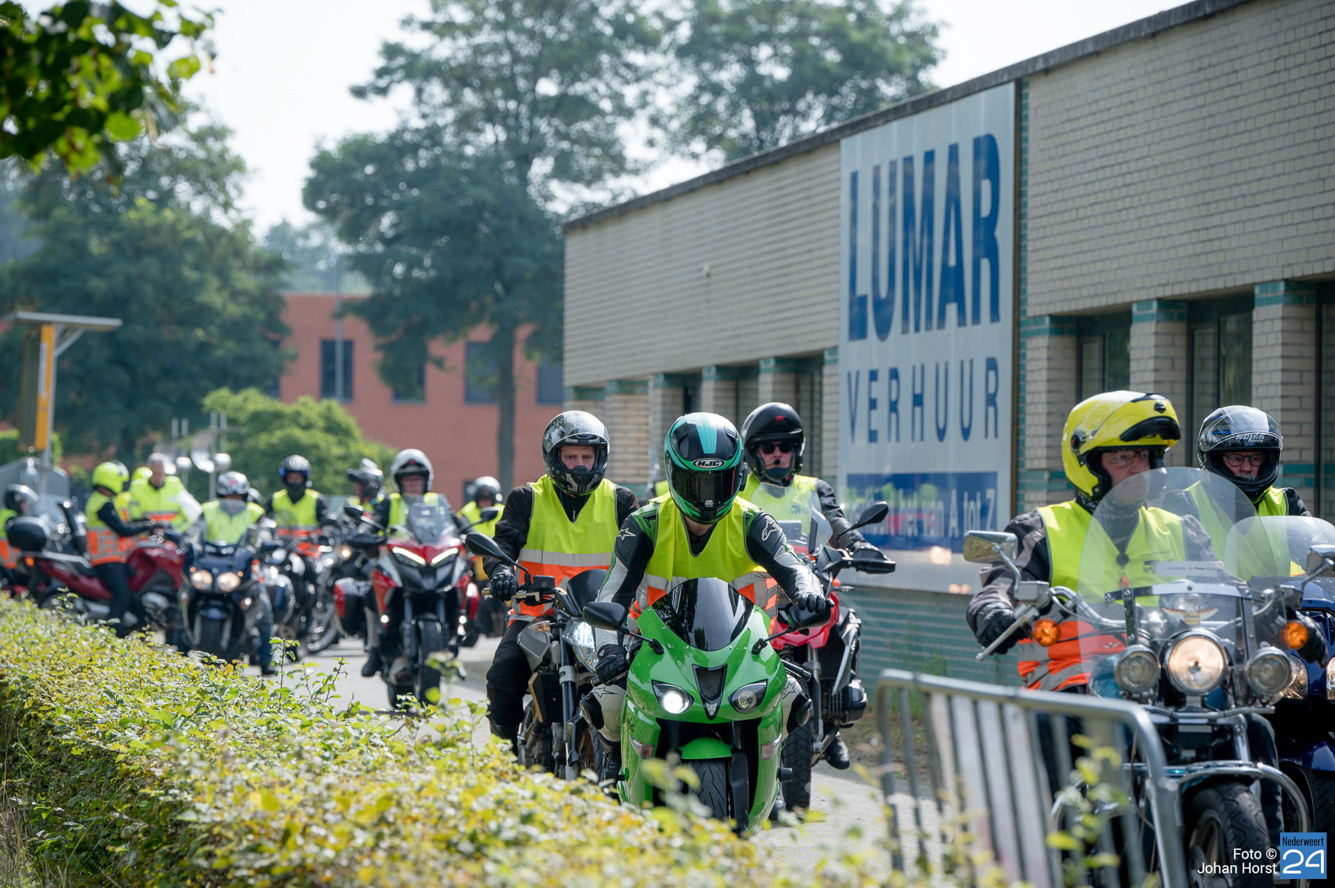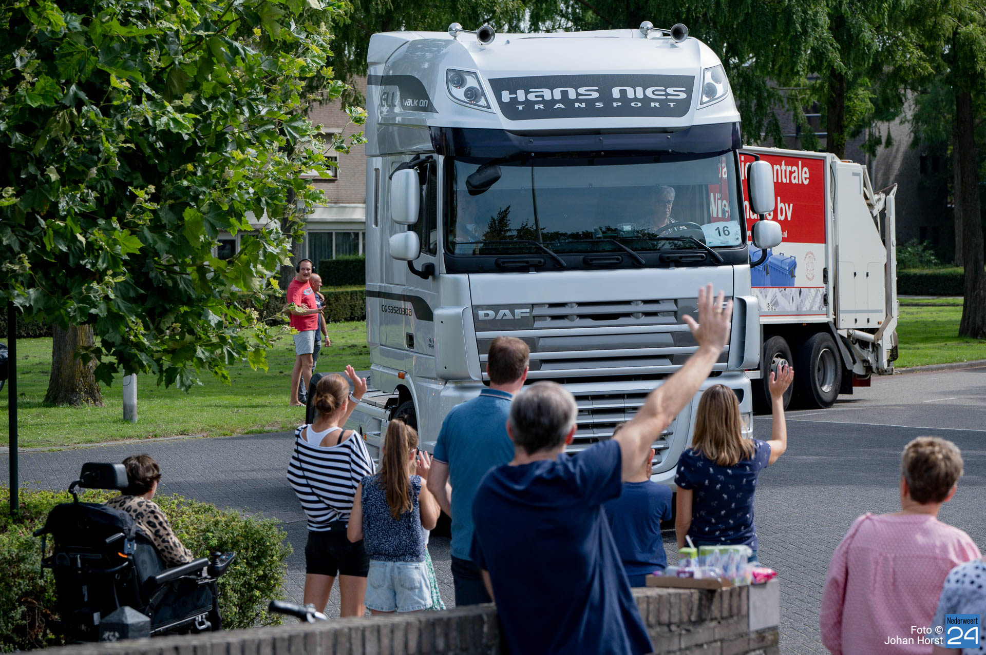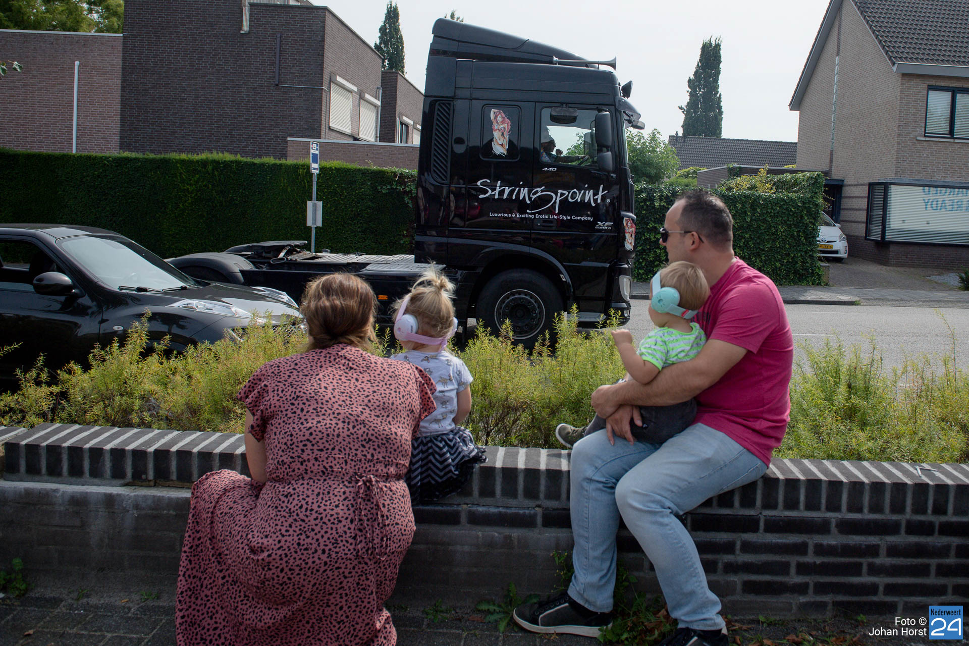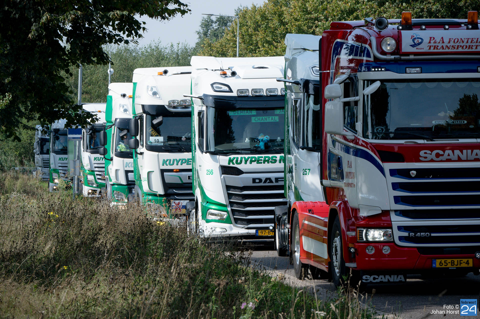 De colonne reed met een snelheid van ongeveer 30 km door het Limburgse landschap. Dat is een prettige snelheid voor de bijrijders en voor het publiek langs de kant van de weg.