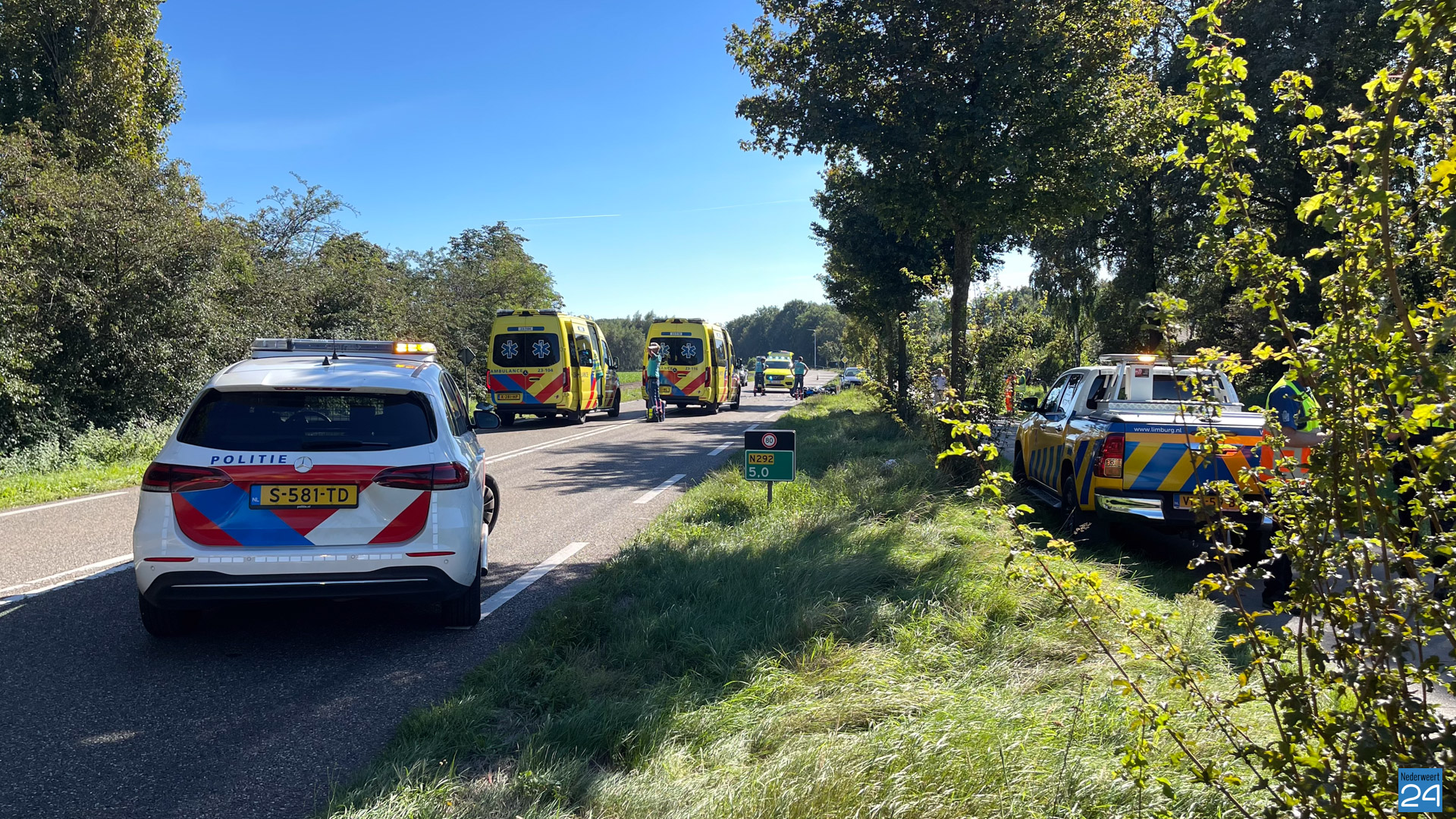 Een automobilist en een motorrijder kwamen hard met elkaar in botsing. De motorrijder reed, volgens een ooggetuigen, samen met een andere motorrijdster vanuit de richting van België. Na de aanrijding botste de auto nog tegen een lantaarnpaal en vervolgens kwam het voertuig een stuk verder in de berm tot stilstand. Omstanders die bij het ongeval uitkwamen schoten direct te hulp.
