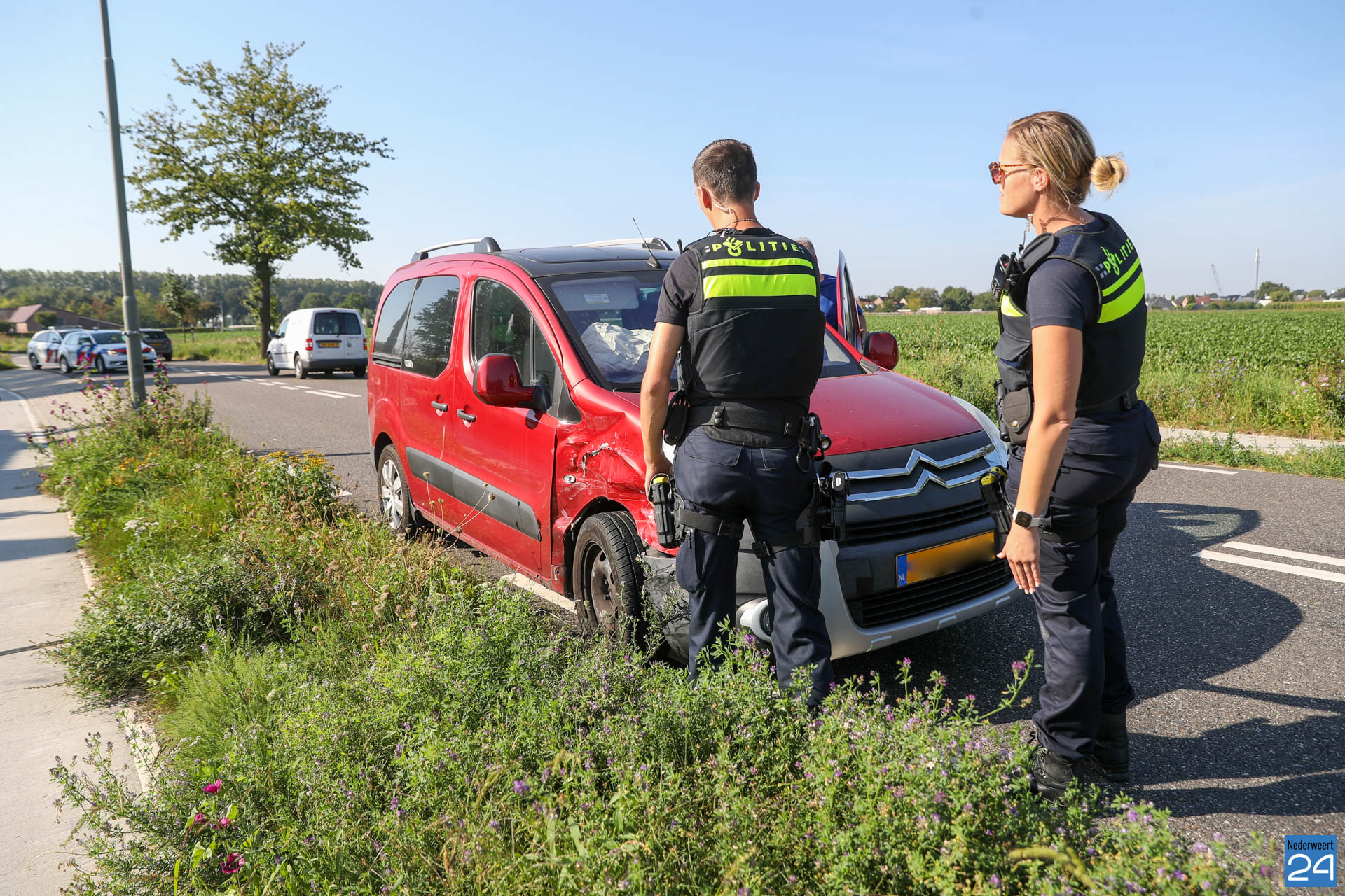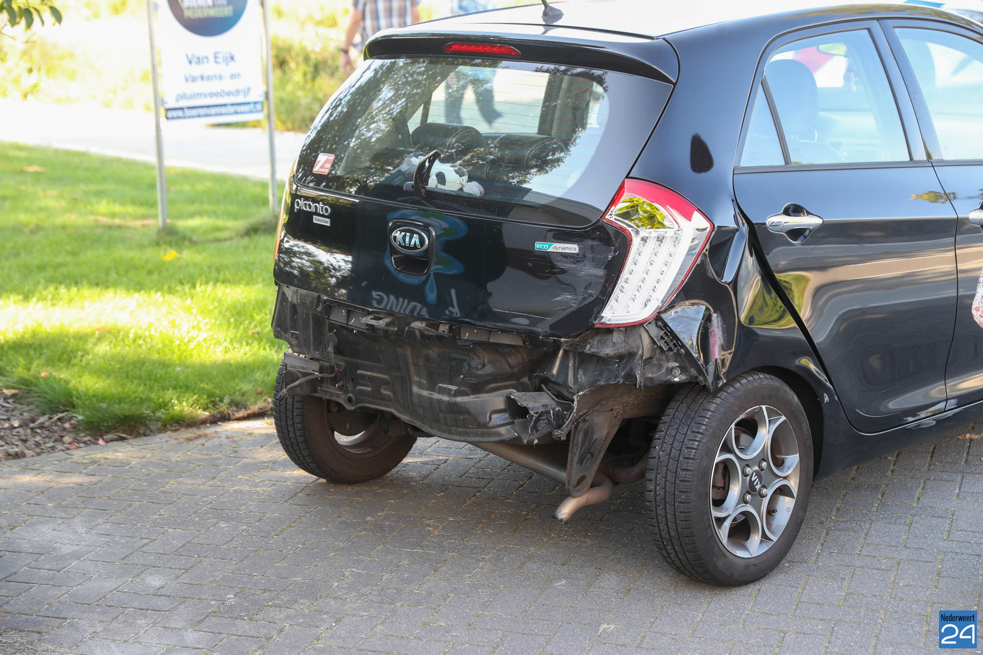 Een personenauto reed vanuit een oprit achteruit de Hoofstraat op. Een naderende auto had deze niet gezien met een flinke botsing tot gevolg. Niemand raakte gewond.