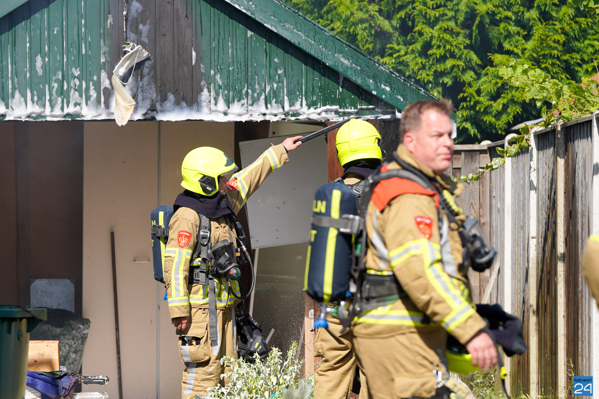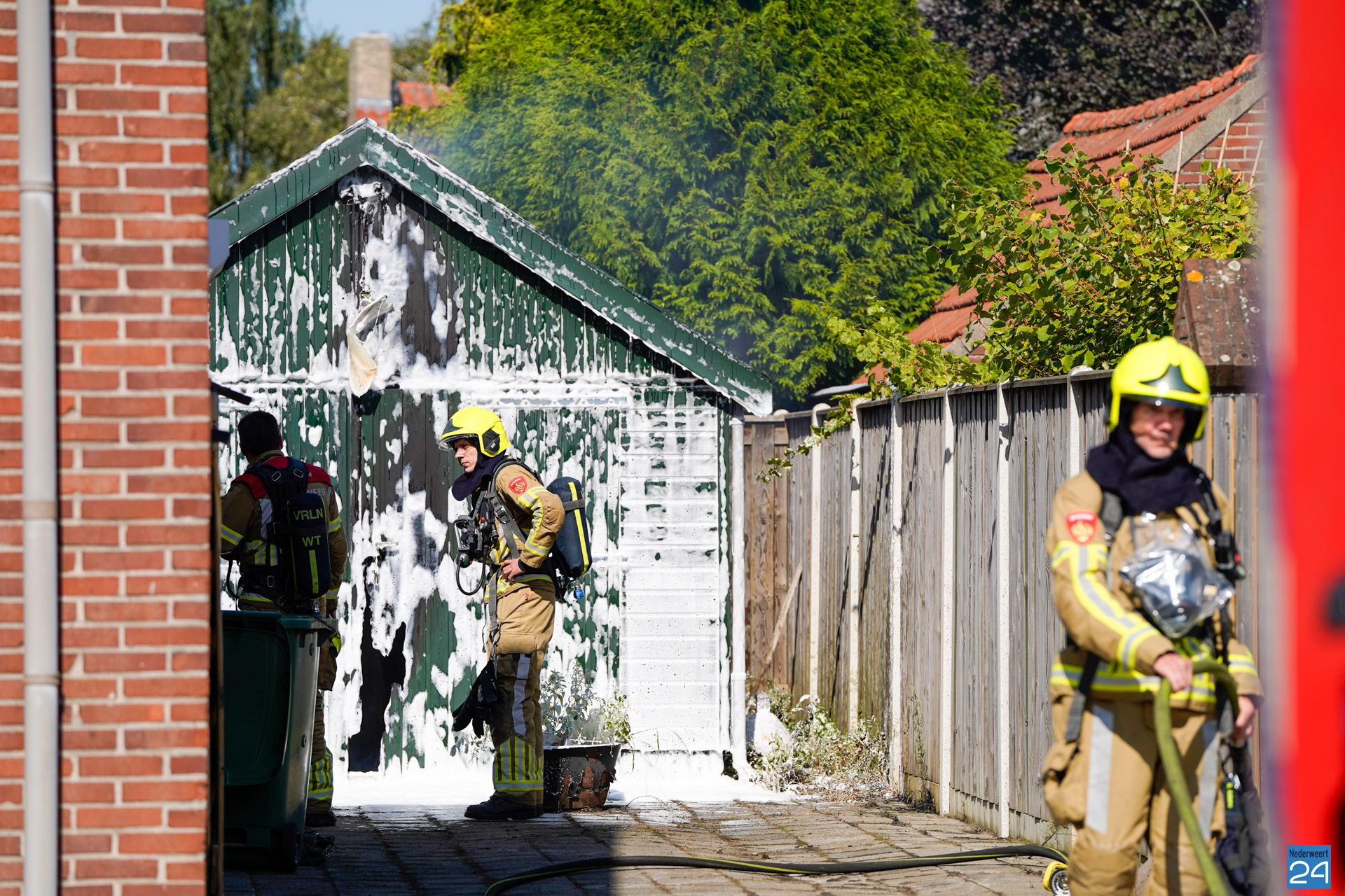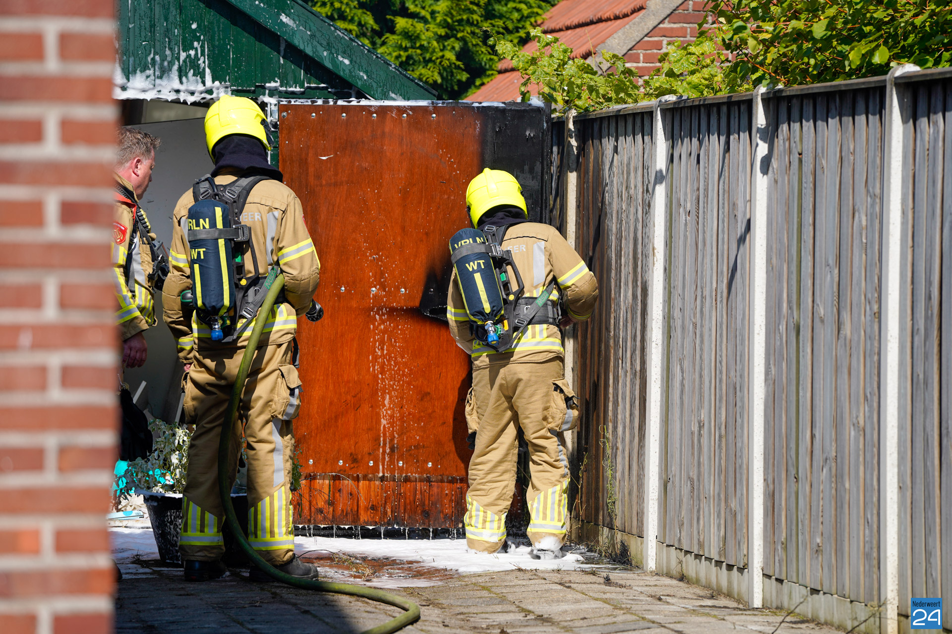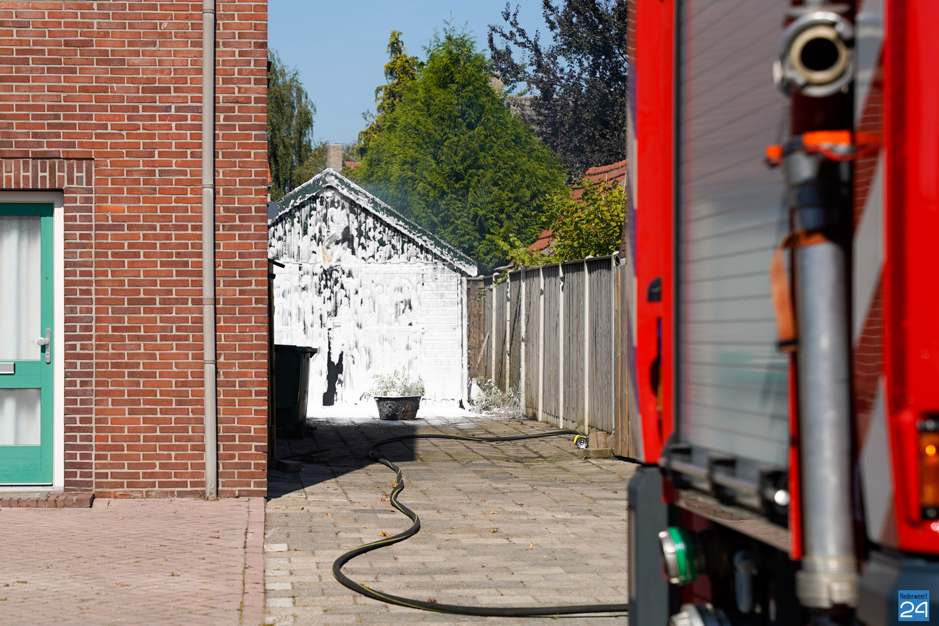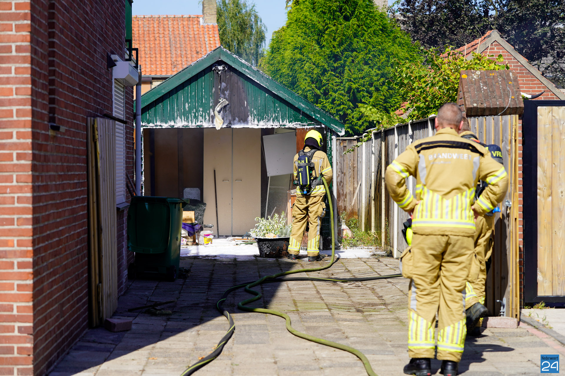 Een houten schuurtje heeft maandagmiddag vlam gevat aan de Sint Jobstraat in Weert.