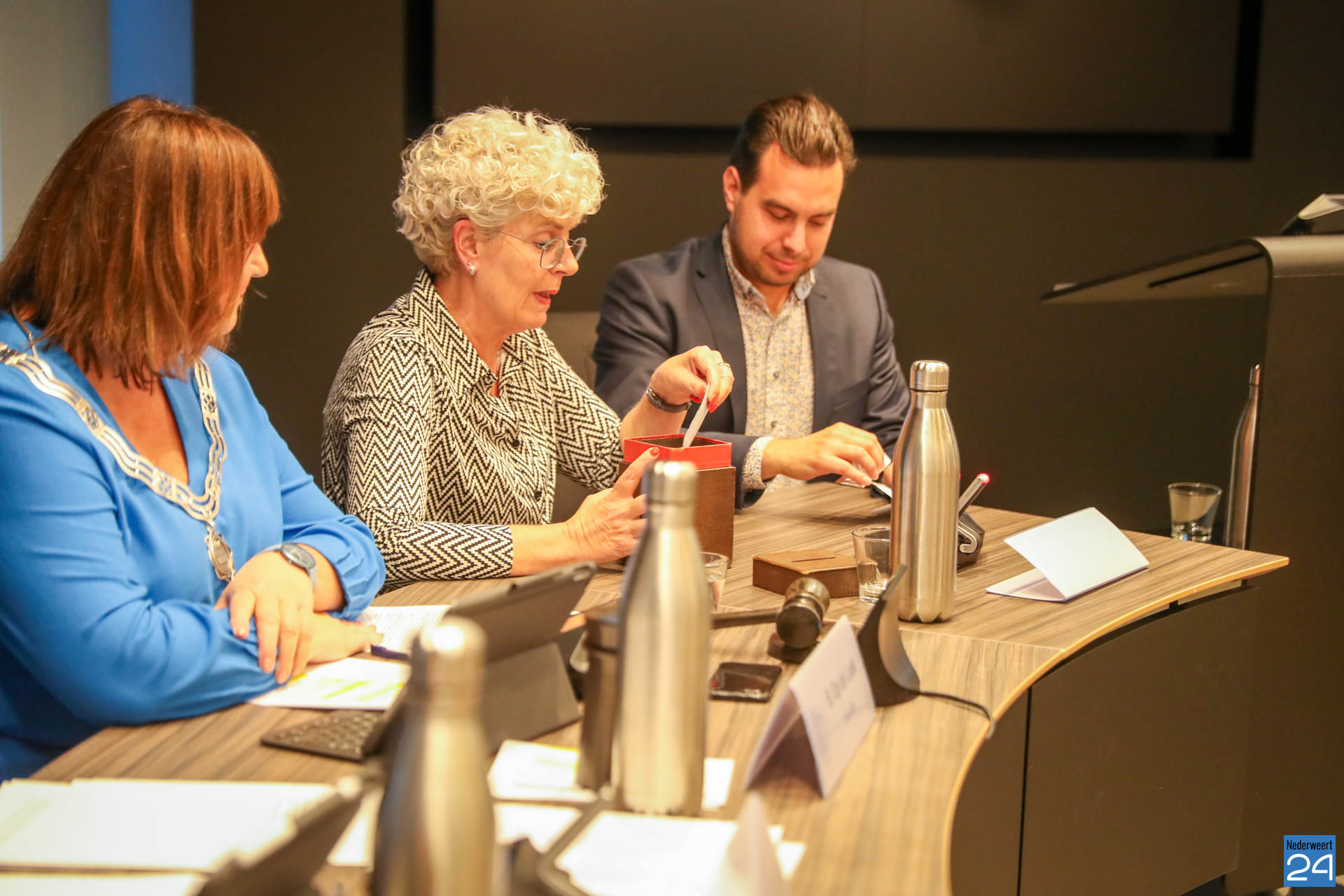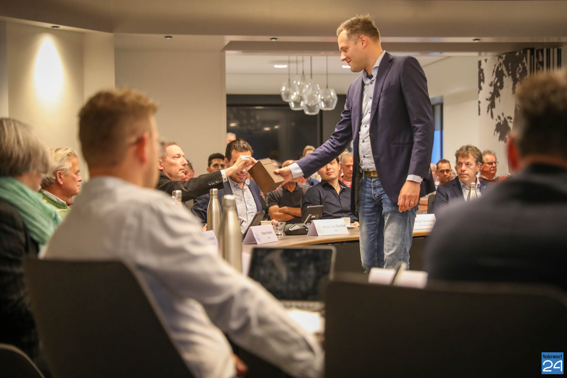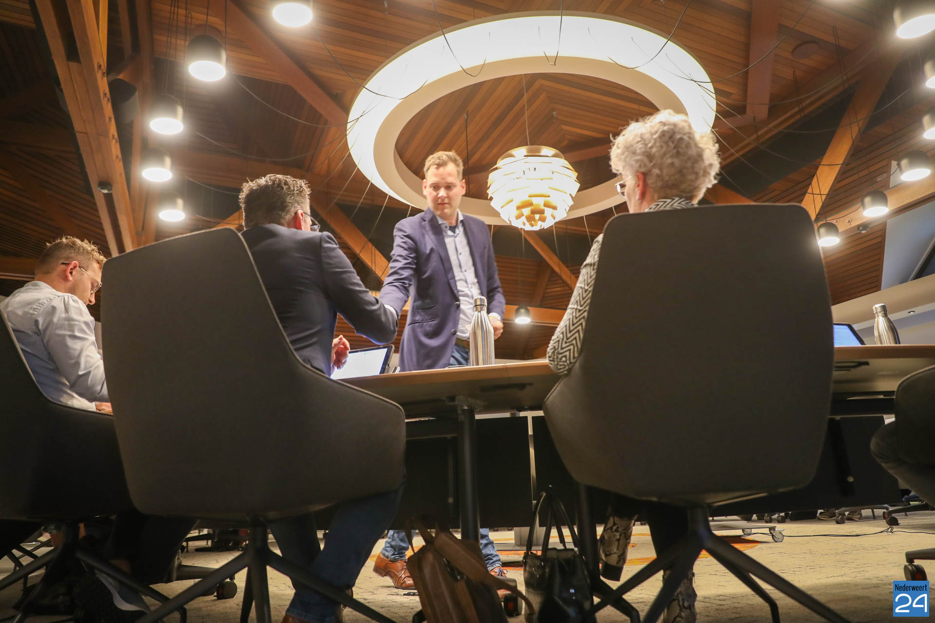 Daarna sprak Teun, via de webcam, de zieke wethouder Jorik Franssen toe en wenste hem heel veel sterke, gezondheid en beterschap.”Binnen kort wisselen we weer van plaats, ” zo eindigt Teun Heldens die unaniem gekozen werd.