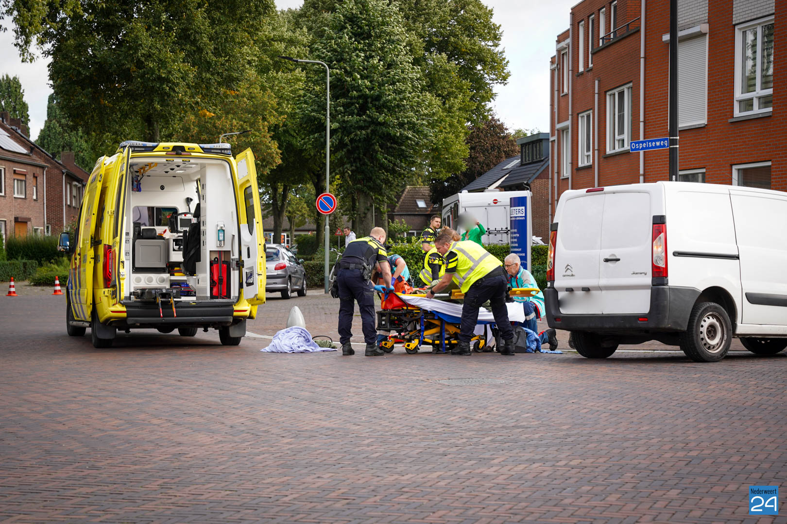 De bestuurder van het bestelbusje kwam vanuit Brug 15 aangereden en zag de fietsster over het hoofd. Dit gebeurde ter hoogte van de kruising met de Ospelseweg en en Hulsenweg. De vrouw raakte door de klap gewond aan haar hoofd en haar been. Ze is met de ambulance meegenomen voor verder onderzoek in het ziekenhuis.