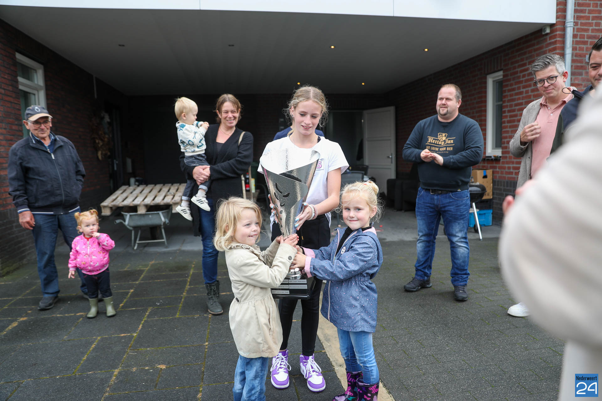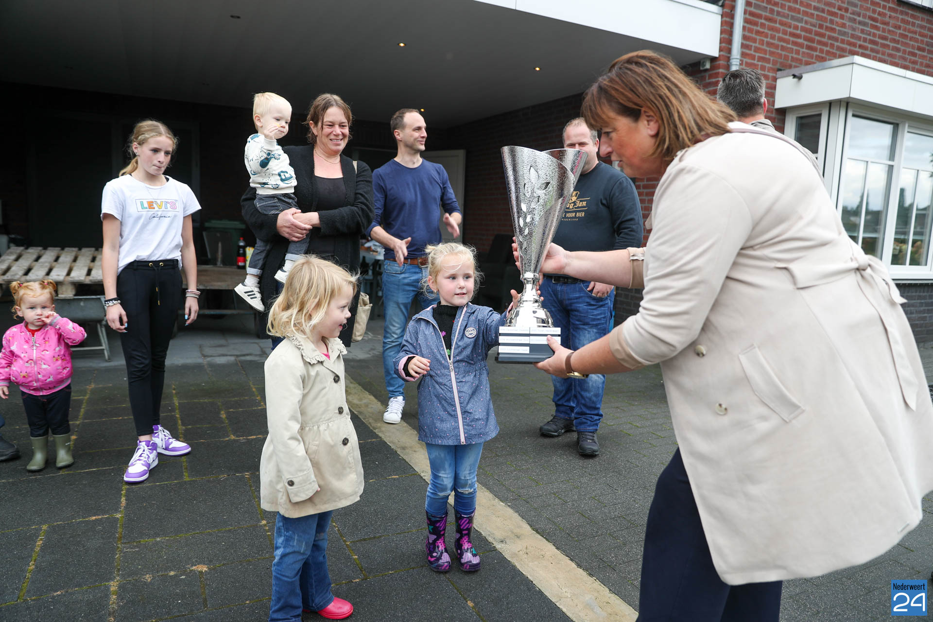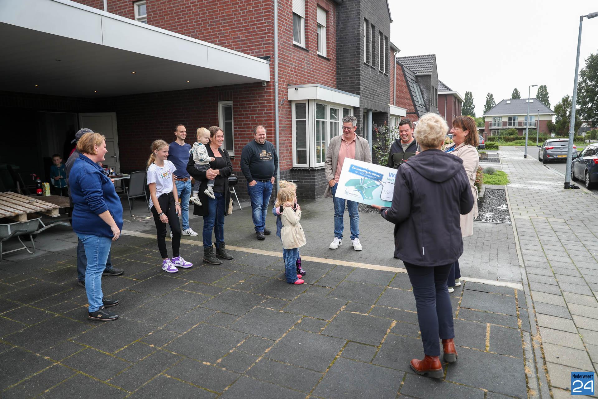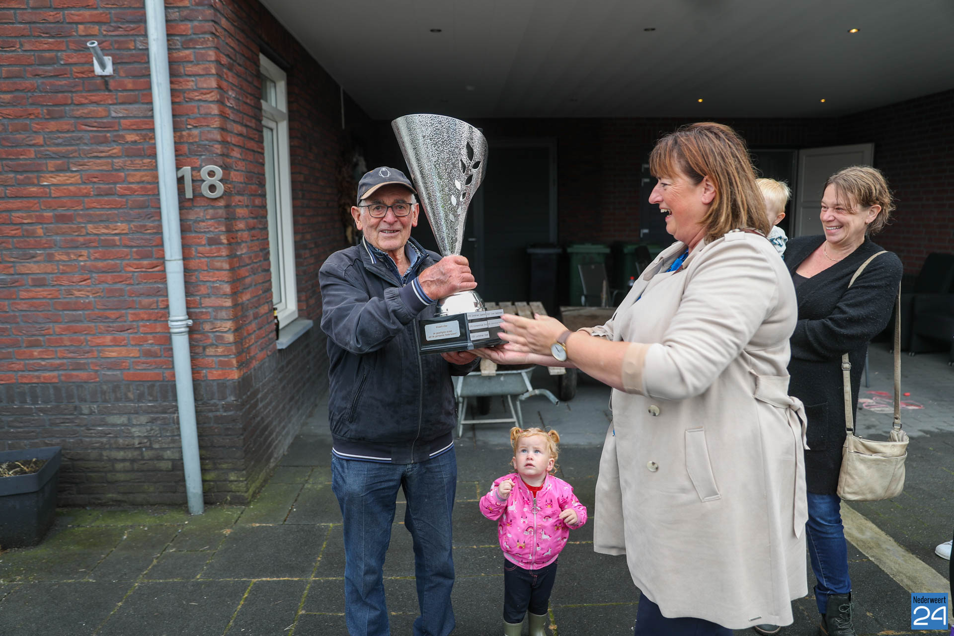 De welverdiende wisseltrofee werd dankbaar in ontvangst genomen. Ook ontvingen de bewoners een waardebon die ze naar wens kunnen verzilveren, om de saamhorigheid en de onderlinge contacten vast te houden.