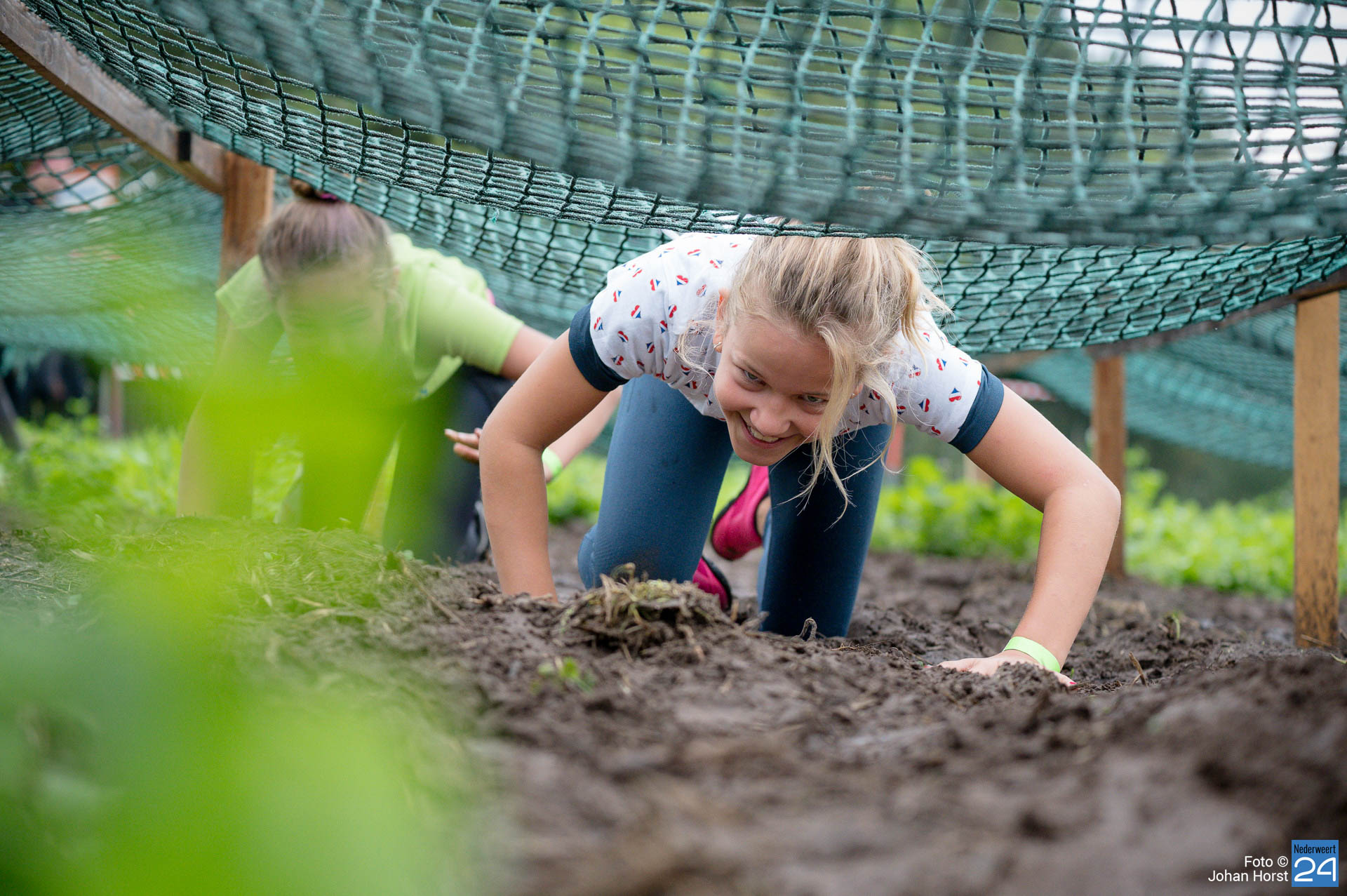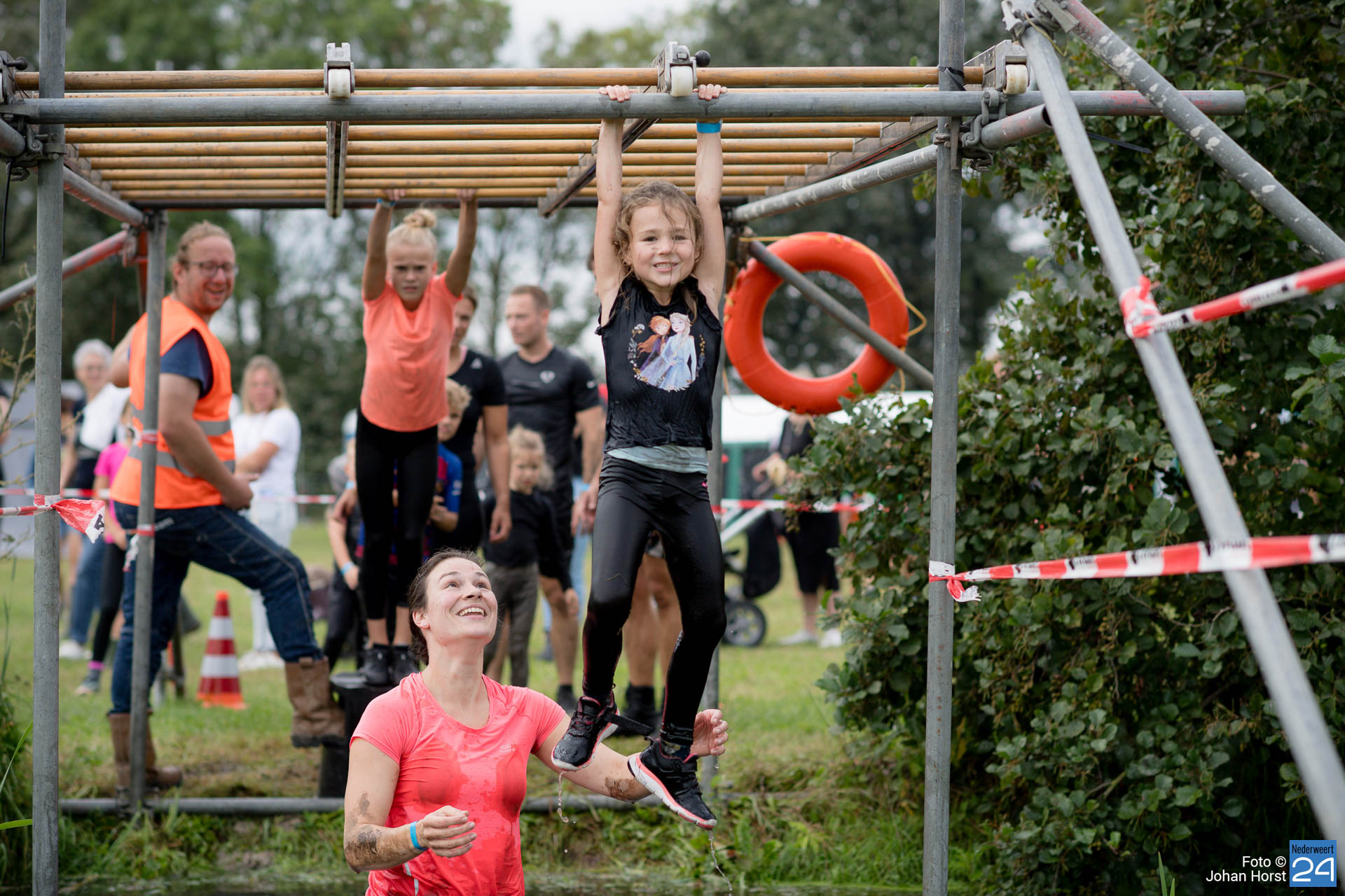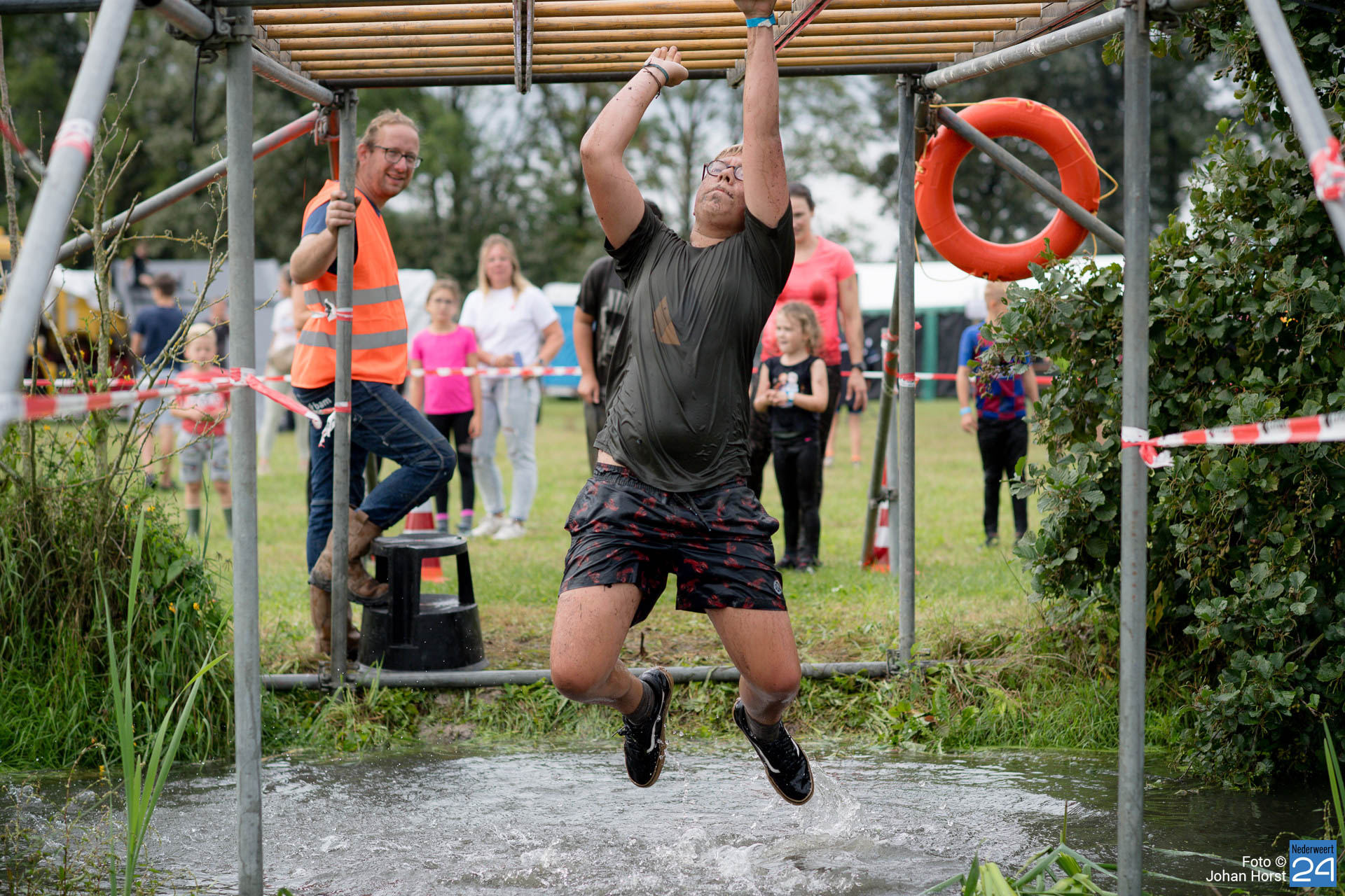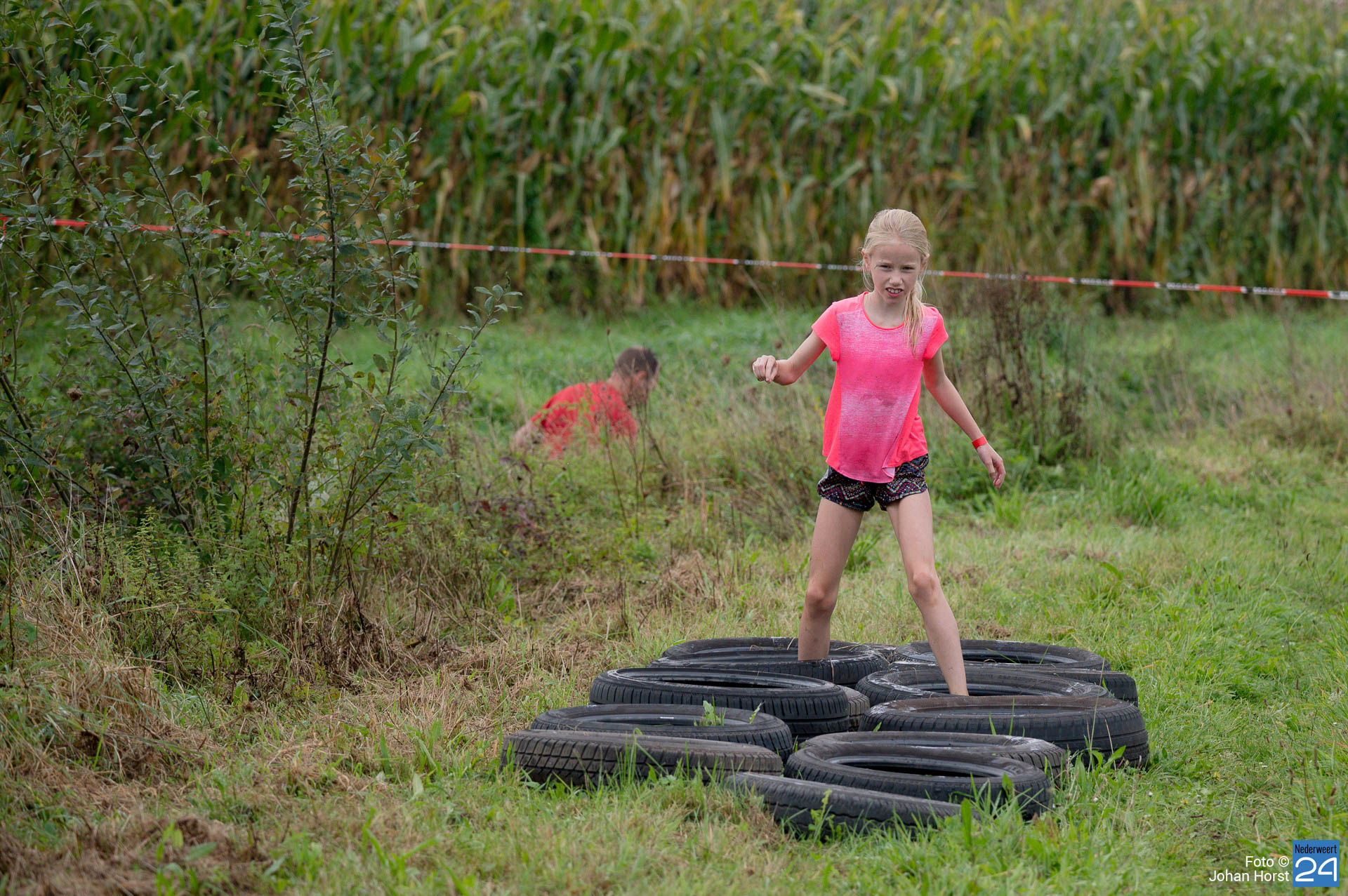 Ontkomen aan de modder was er niet aan, zeker niet na al die regen die was gevallen zaterdagnacht. Maar dat was ook juist het leuke eraan. Lekker sportief bezig zijn en je door het parcours heen ploeteren, individueel, samen met je ouder, of als vrienden onder elkaar. Vooraf aan deze tocht natuurlijk een gezamenlijke warming-up op de muziek van de Snollebollekes onder leiding van instructeur Stefan. En daarna snel door naar de start van het parcours. Natuurlijk altijd even wennen aan het water en de modder, maar eenmaal vies was het ervoor gaan! Maar liefst 300 deelnemers hadden zich opgegeven. Plezier en sportief bezig zijn in de buitenlucht dat was de uitdaging, maar er werden ook geweldige prestaties neergezet ondanks dat het toch heel vermoeiend was. Waar sommige deelnemers het parcours 1x doorliepen, waren er andere deelnemers die doorgingen en het parcours meerdere keren doorliepen. Een aantal echte doorzetters hebben het parcours 8 x en zelfs 11 x volbracht, wat een super prestatie!