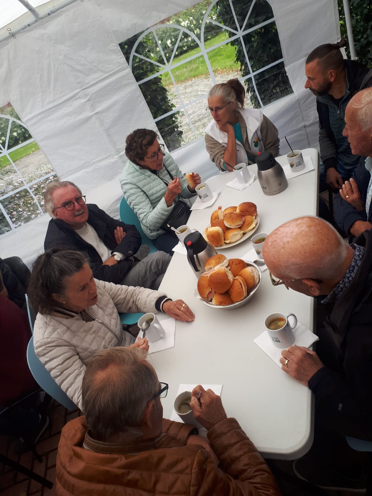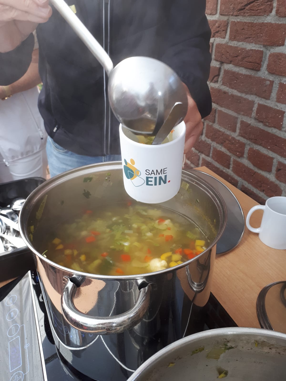 Om 11.00 uur werd iedereen welkom geheten met koffie en vlaai. Vervolgens werd er gezamenlijk groentesoep gemaakt en smakelijk opgegeten uit een Same Ein mok die iedereen als presentje mee naar huis mocht nemen. Vele mooie gesprekken vonden er plaats en buurtgenoten hebben elkaar (nog beter) leren kennen.