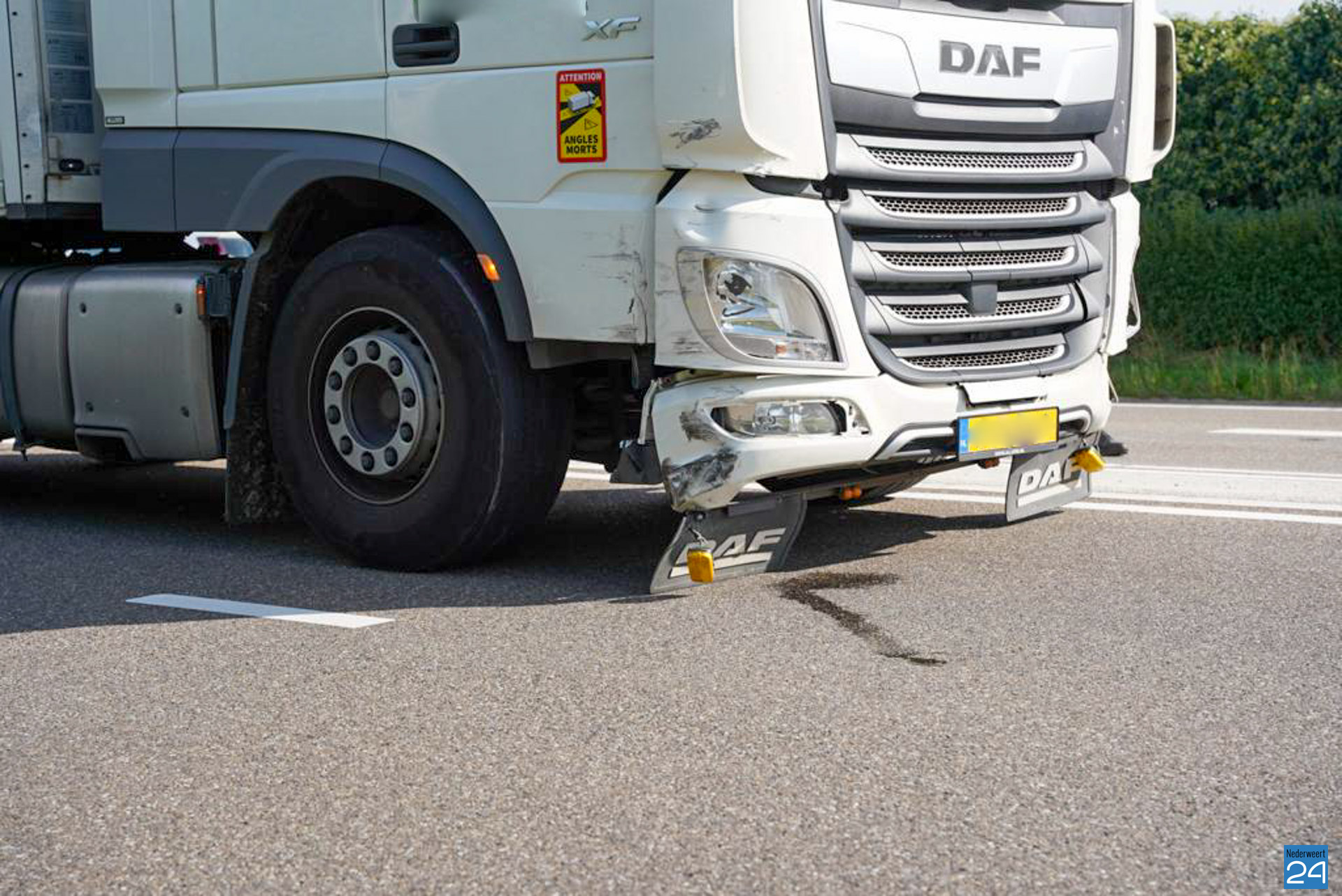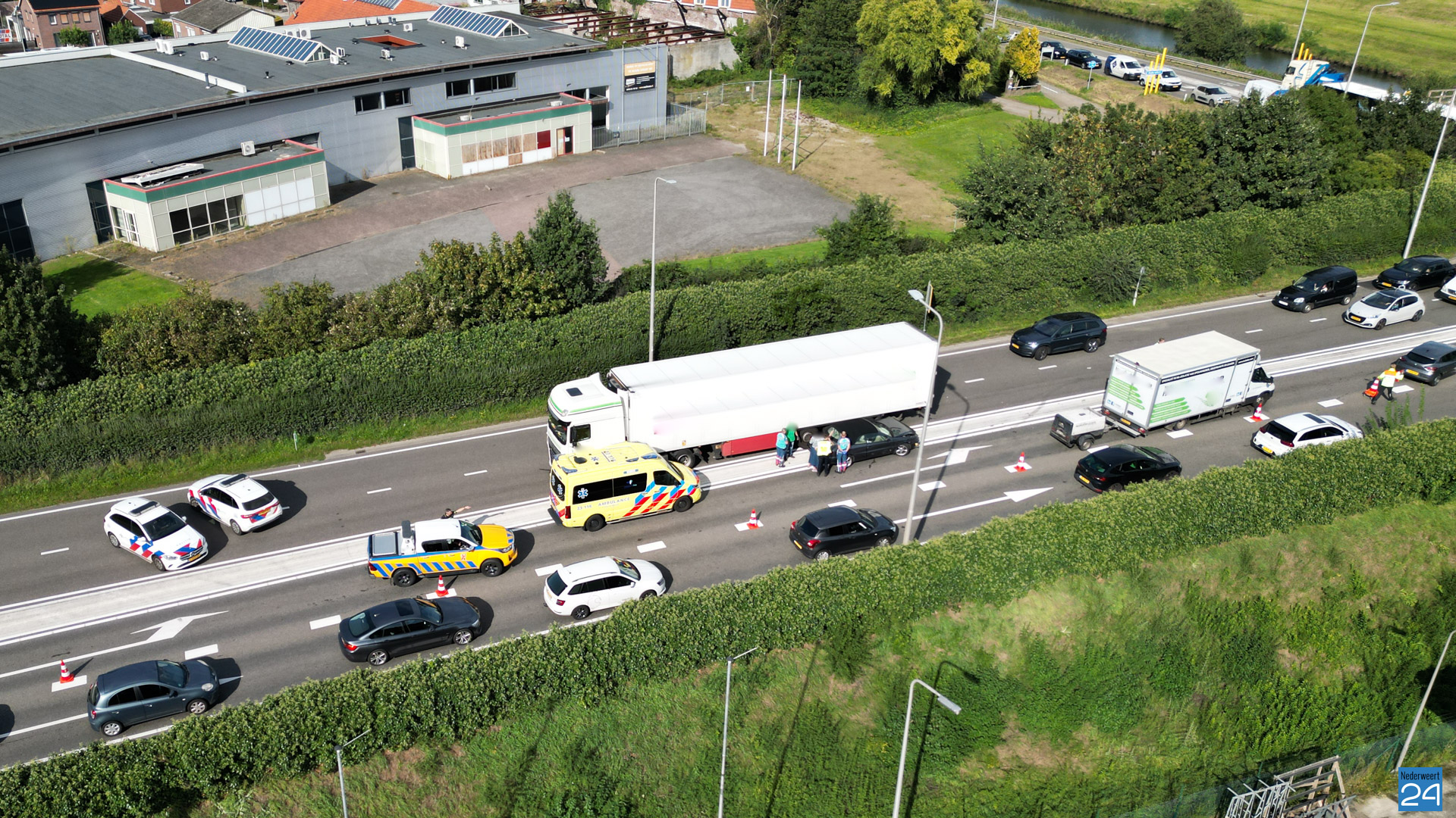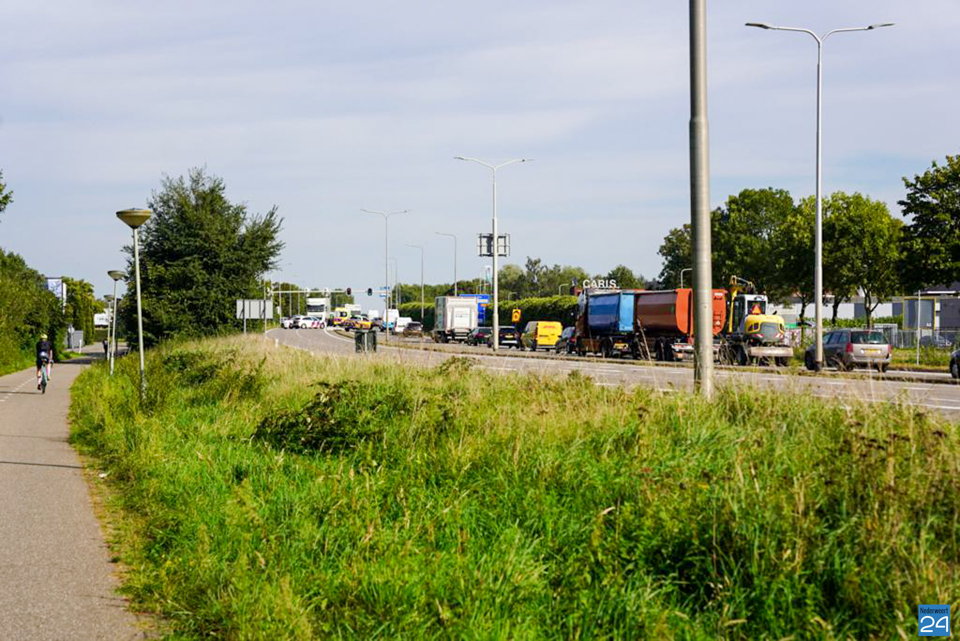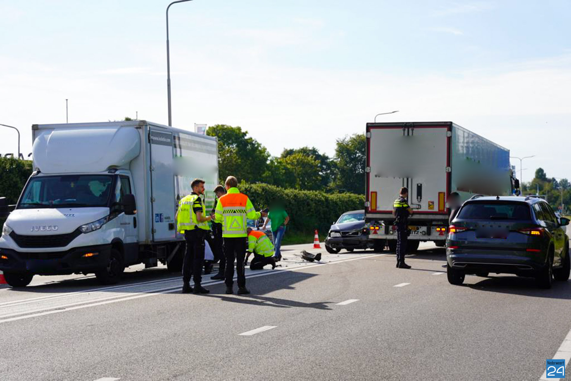 Door een verkeersongeval loopt momenteel het verkeer vast op de Randweg Zuid N275 in Nederweert. Door onbekende oorzaak botsten een auto, een vrachtwagen en een bakwagen woensdagmiddag met elkaar.