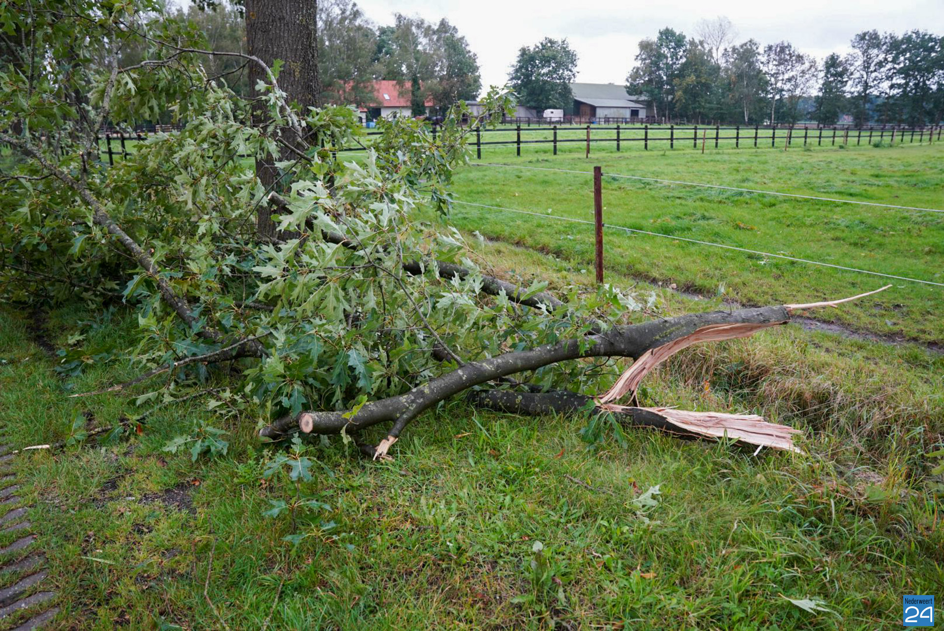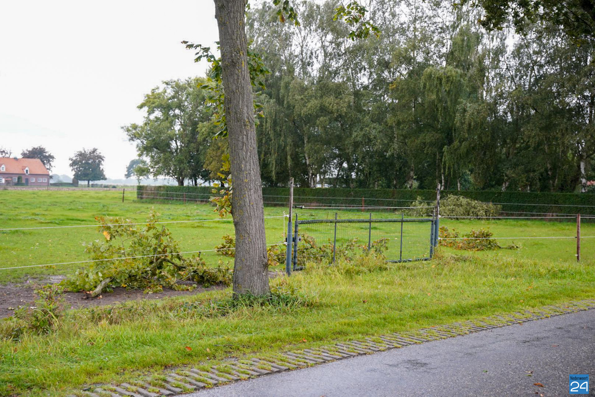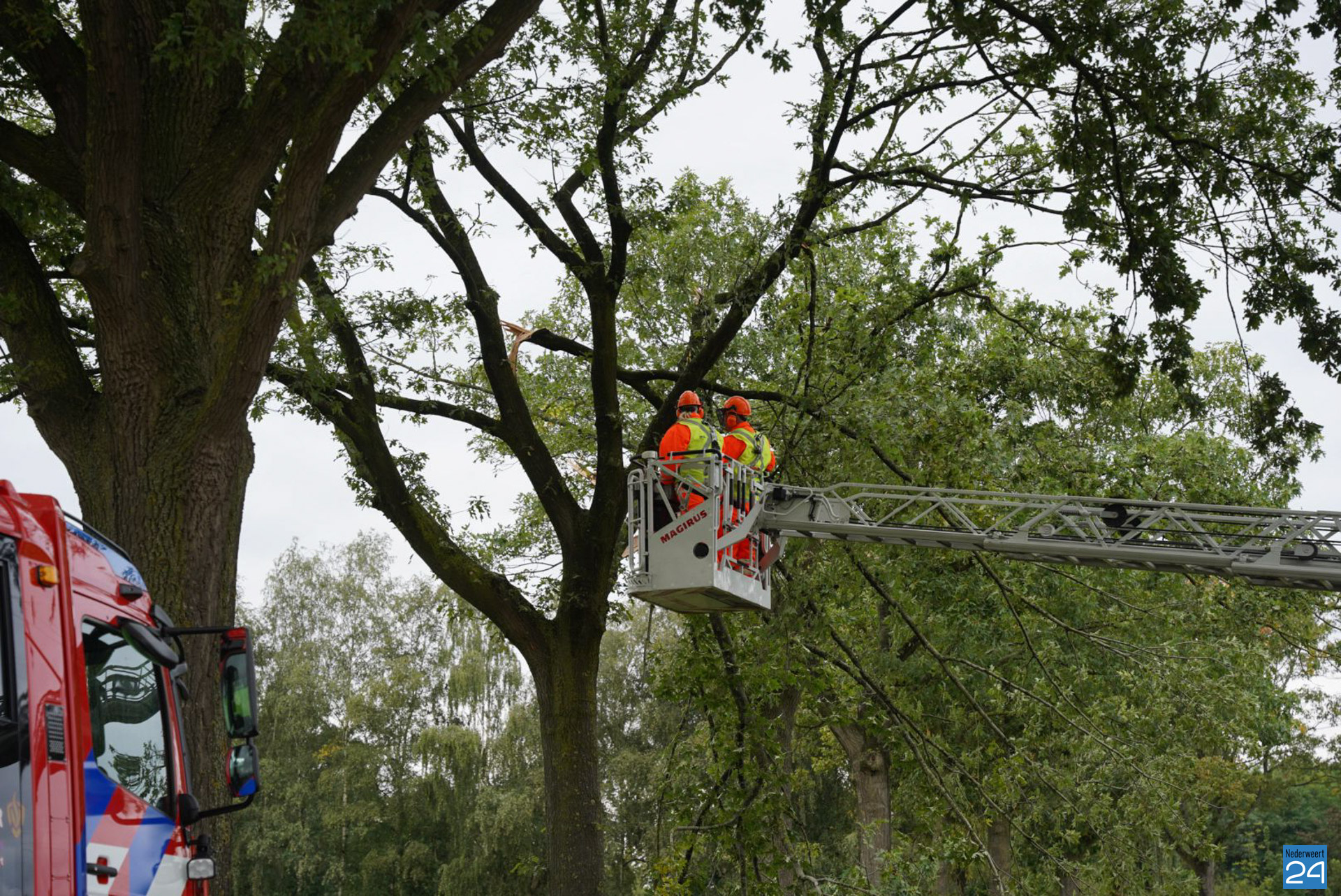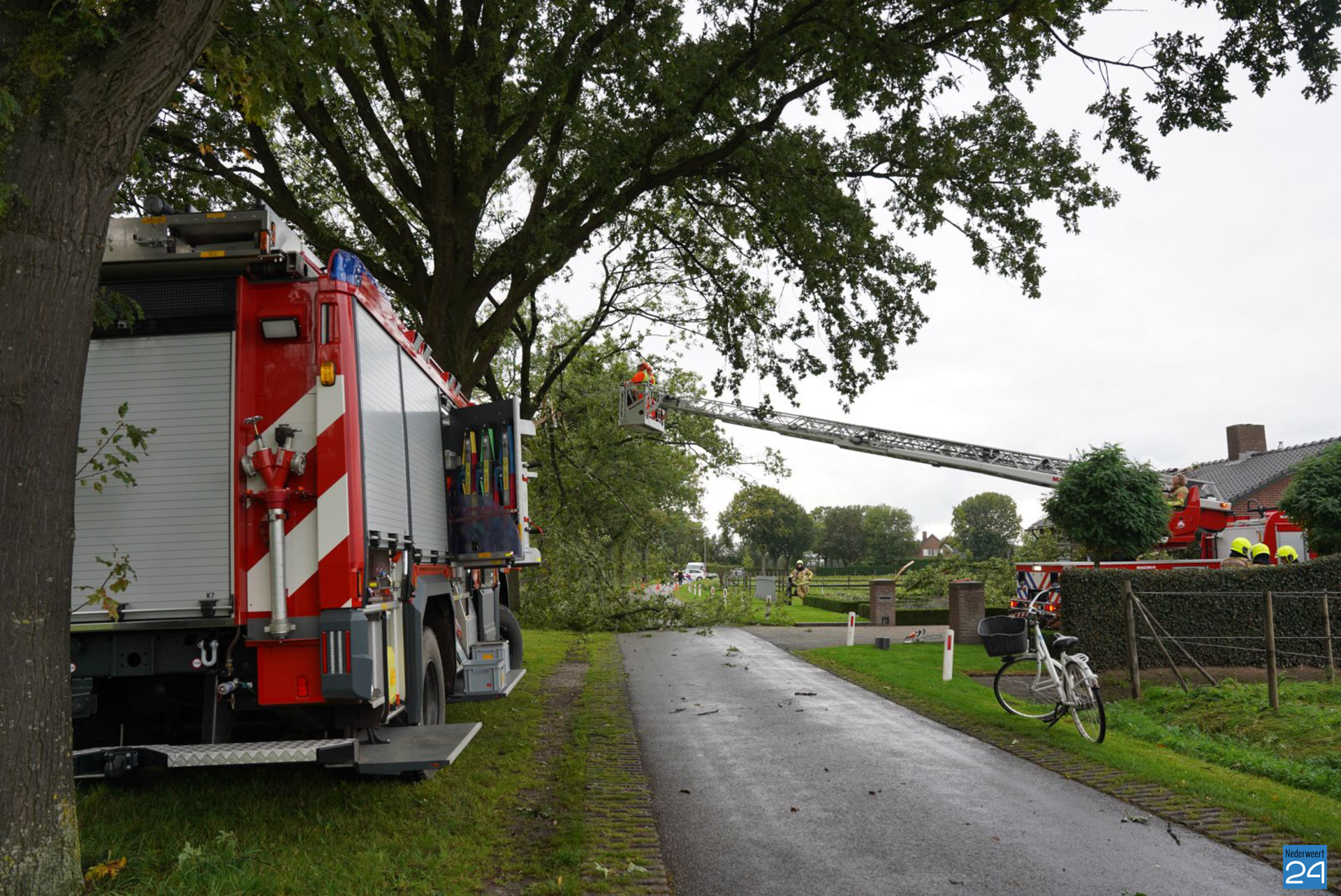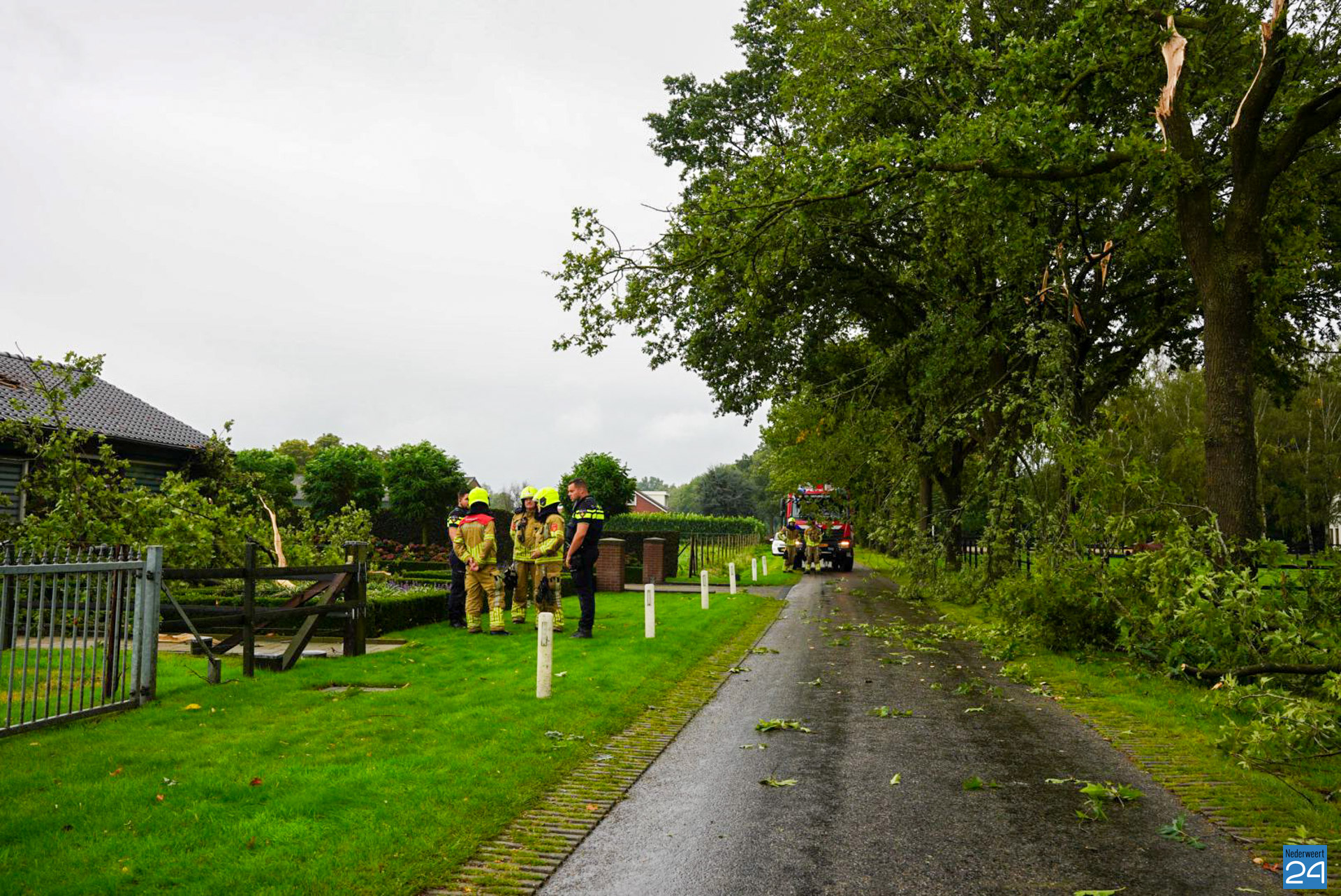 De brandweer is ter plaatse om de plek veilig te stellen. In de rest van de straat liggen nog meer takken van zo’n vier verschillende bomen. Niemand raakte gewond bij het incident.