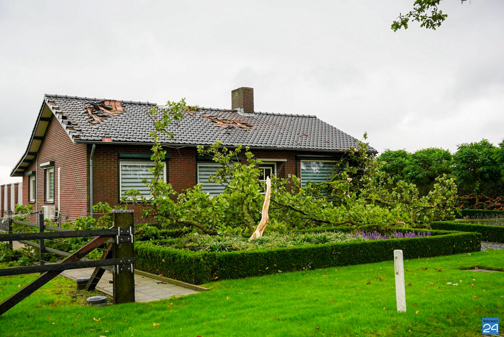 Het dak van de desbetreffende woning is flink beschadigd geraakt.