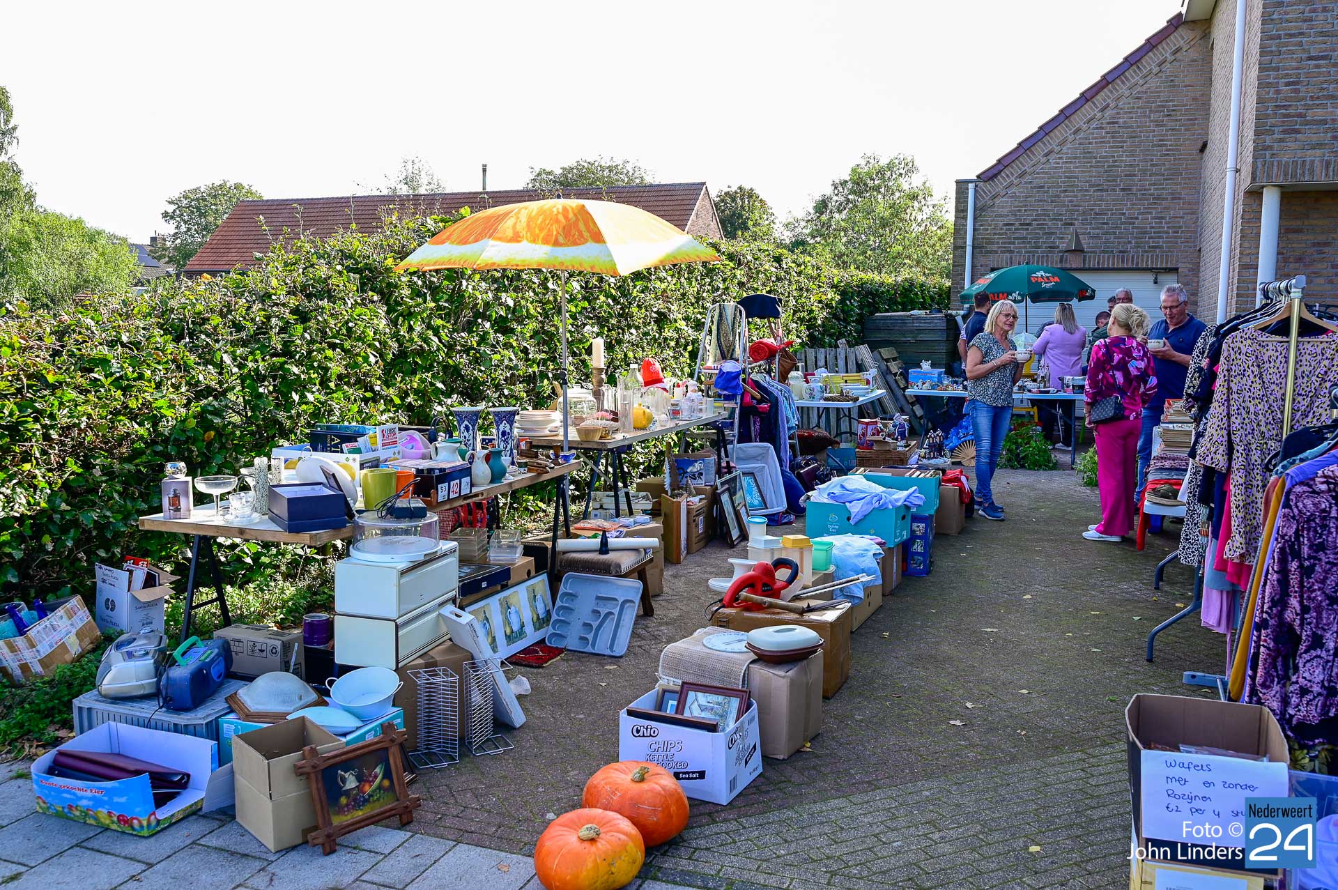 Van speelgoed tot elektronica en van misschien wel net dat ene mooie schilderij tot een diversiteit aan meubels. De deelnemers hadden veel moeite gedaan om alles netjes buiten te zetten en het weer was ze goed gezind. Helaas viel het aantal kopers erg tegen, er werd wel al vroeg rond gereden maar de kijkers waren kieskeurig en de klandizie viel wel wat tegen. Toch was de reactie van de meeste deelnemers positief, het zonnetje schijnt en we maken er een gezellige dag van.