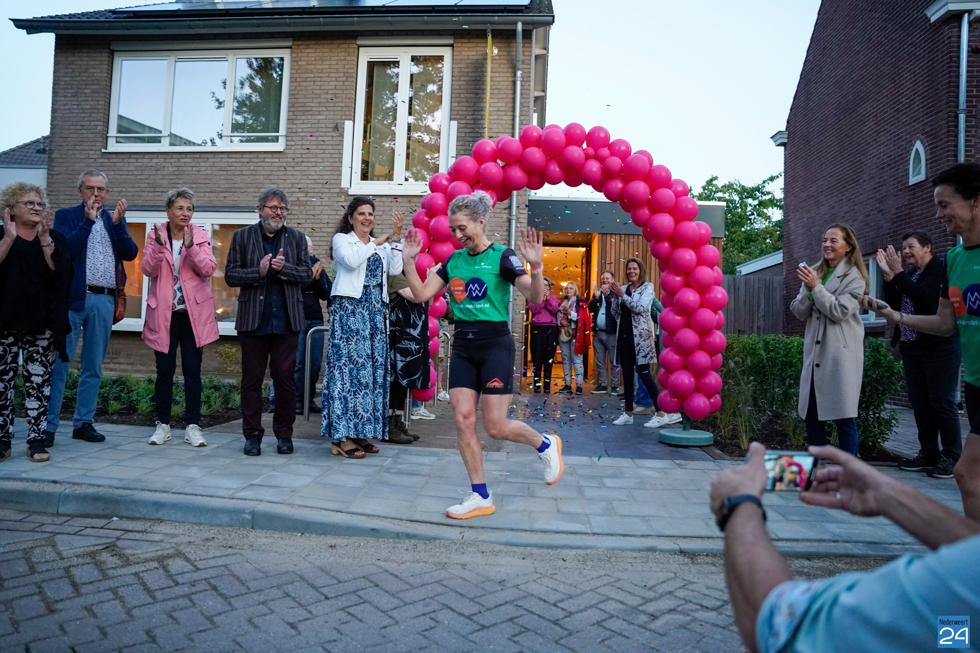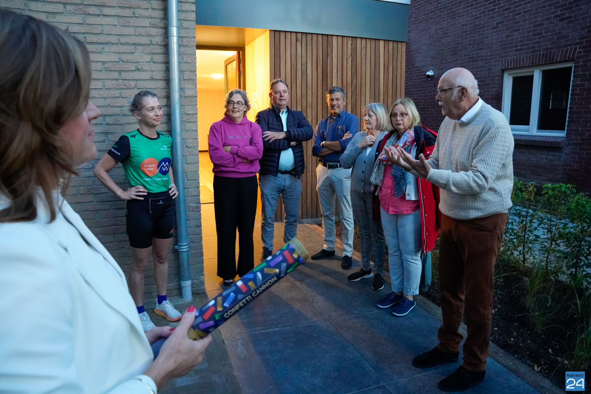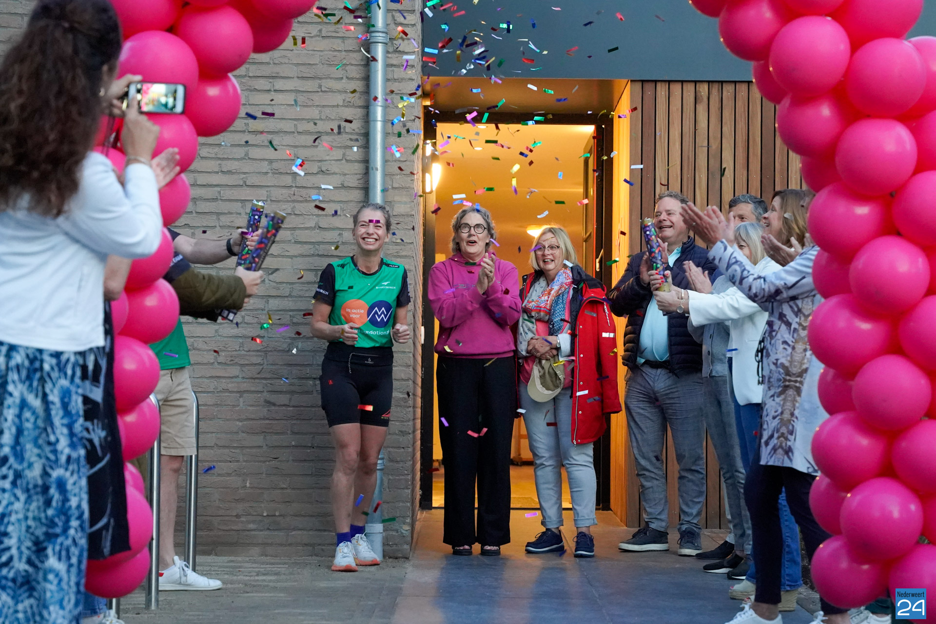 Na een woordje van voorzitter Henk Evers, wethouder Michèle Ferrière en Saskia zelf, was het tijd om te vertrekken. Met confetti-kanonnen werd het startsein gegeven en begon de tocht van 100 km vanaf de Graaf Jacobstraat in Weert. Vrienden, familie en bekenden gaven Saskia een groot applaus.