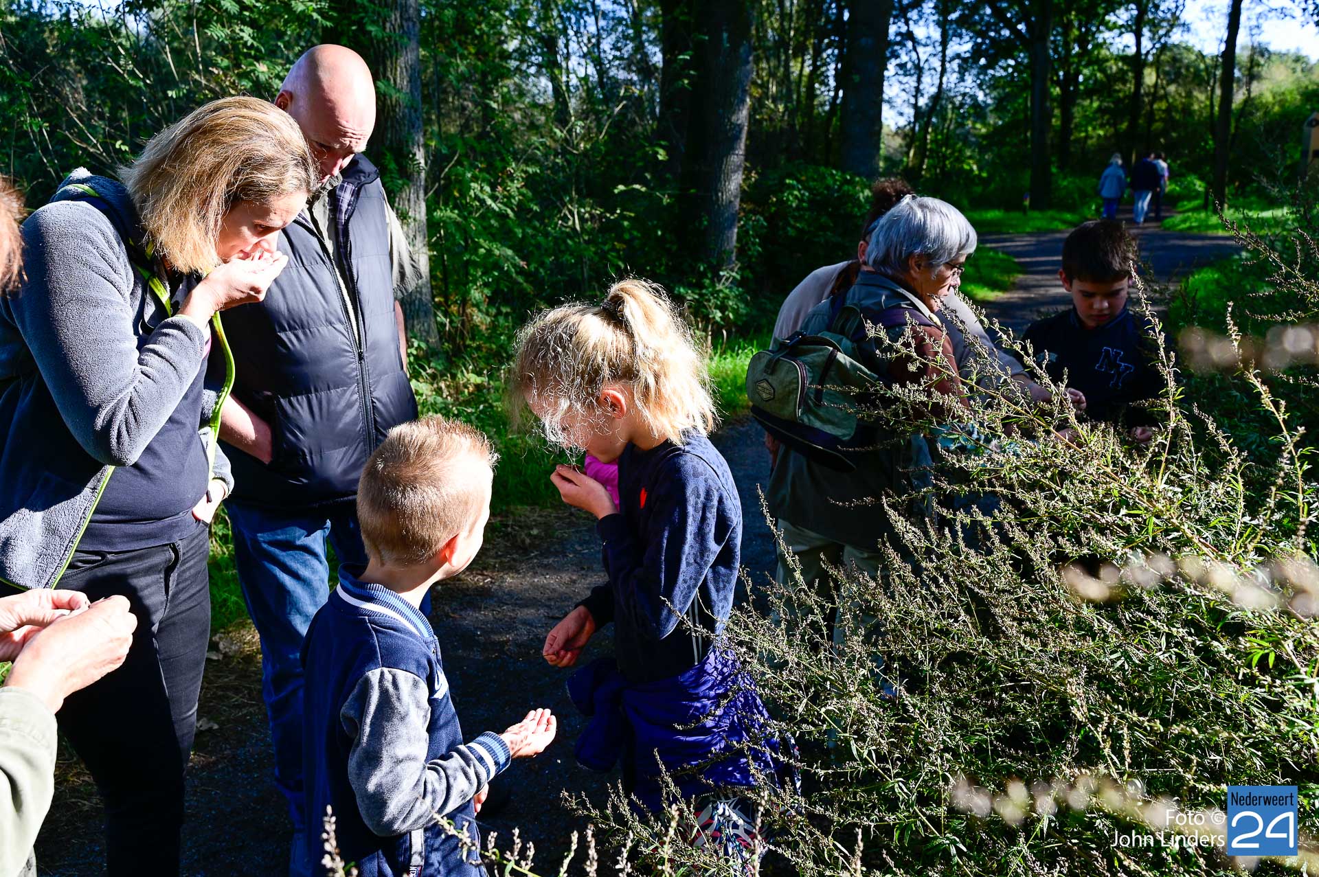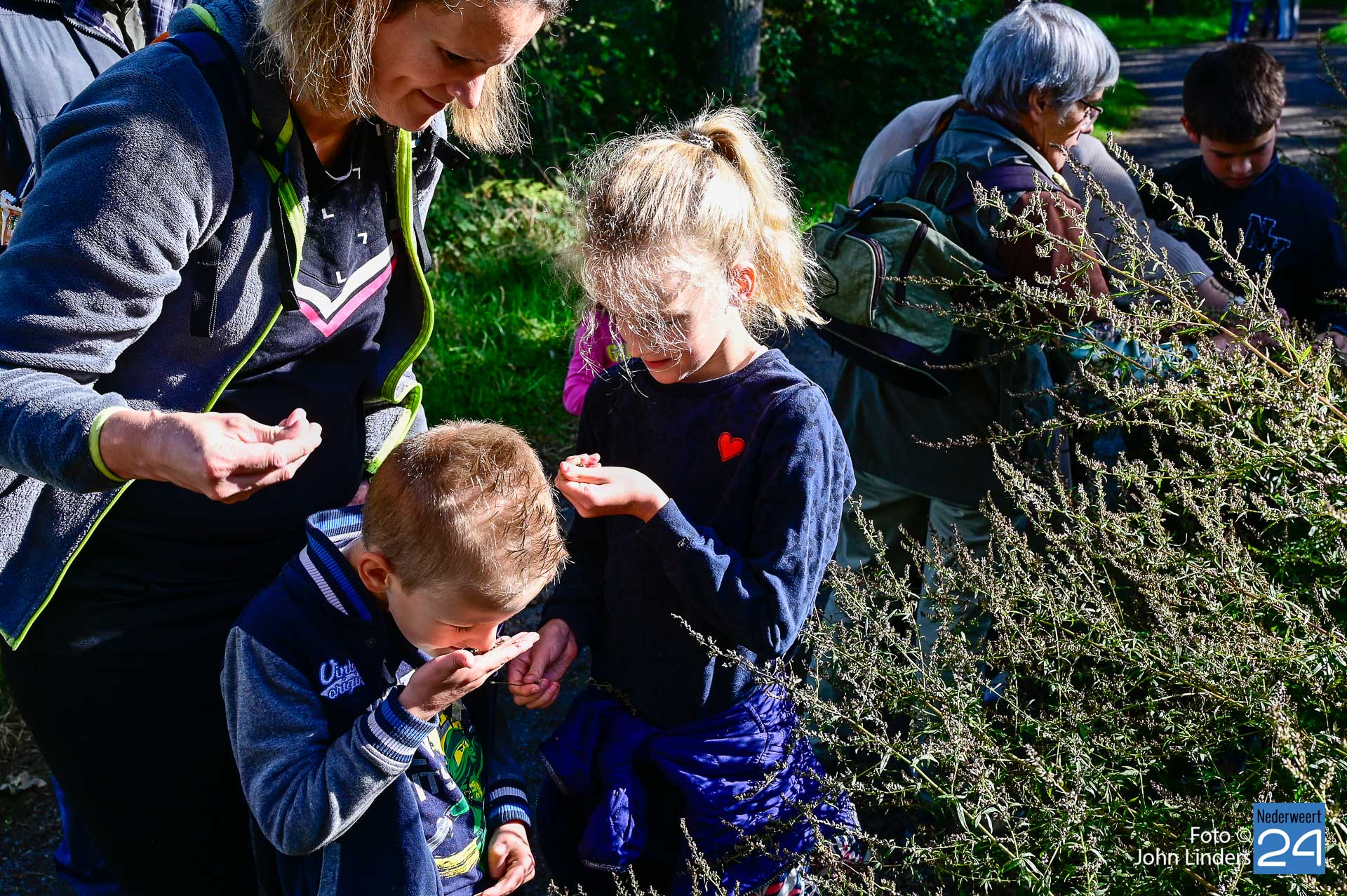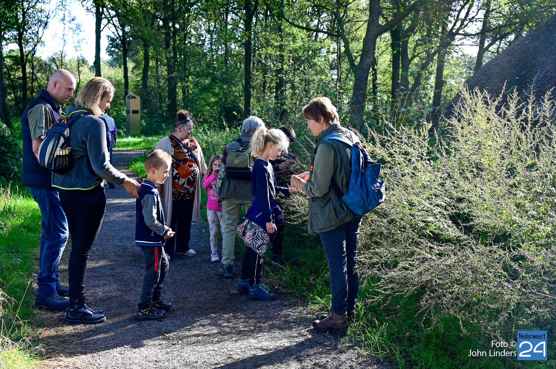 In de Groote Peel was het vanmorgen ook al lekker druk, vele groepen mensen verzamelde zich om er lekker op uit te trekken. Voor de fotoreportage werd er een georganiseerde tocht gevolgd. “Speuren naar geuren en kleuren” was het thema. Onder leiding van twee vrijwilligers werd de tocht ingezet, eenmaal aan de andere kant van de verharde weg loopt men lekker door het groen. Je voelt de rust, er wordt uitgelegd dat je nu kan genieten van de vele kleuren en geuren in de natuur. Pak eens een stukje van een plant en wrijf dit tussen de vingers. Ruik je eraan dan zal je merken dat het de ene keer heel lekker ruikt maar het kan ook heel erg gaan stinken. Zo heeft elke plant zijn of haar kenmerken. Nu aan het begin van de herfst zie je ook al heel veel mooie kleuren, groen, bruin, geel maar als je heel goed verder kijkt dan zie je misschien op dat groene blaadje een vlinder of vlieg zitten. En kijk dan ook eens naar de kleuren, de natuur heeft zoveel moois in zich, ga er lekker van genieten.