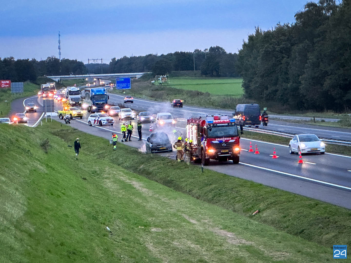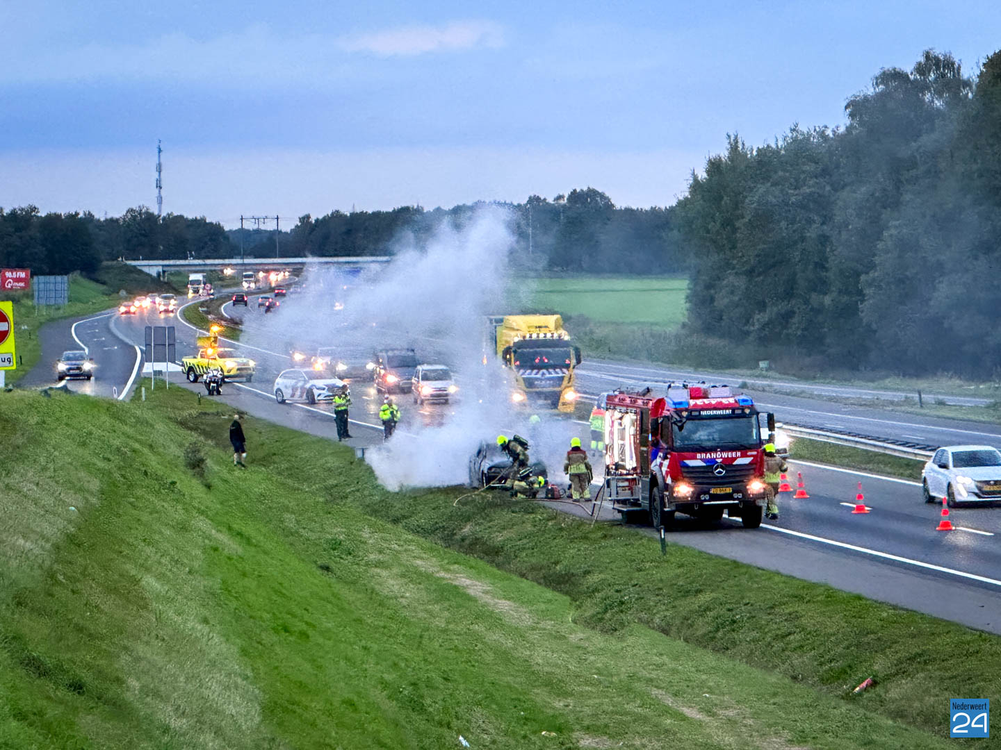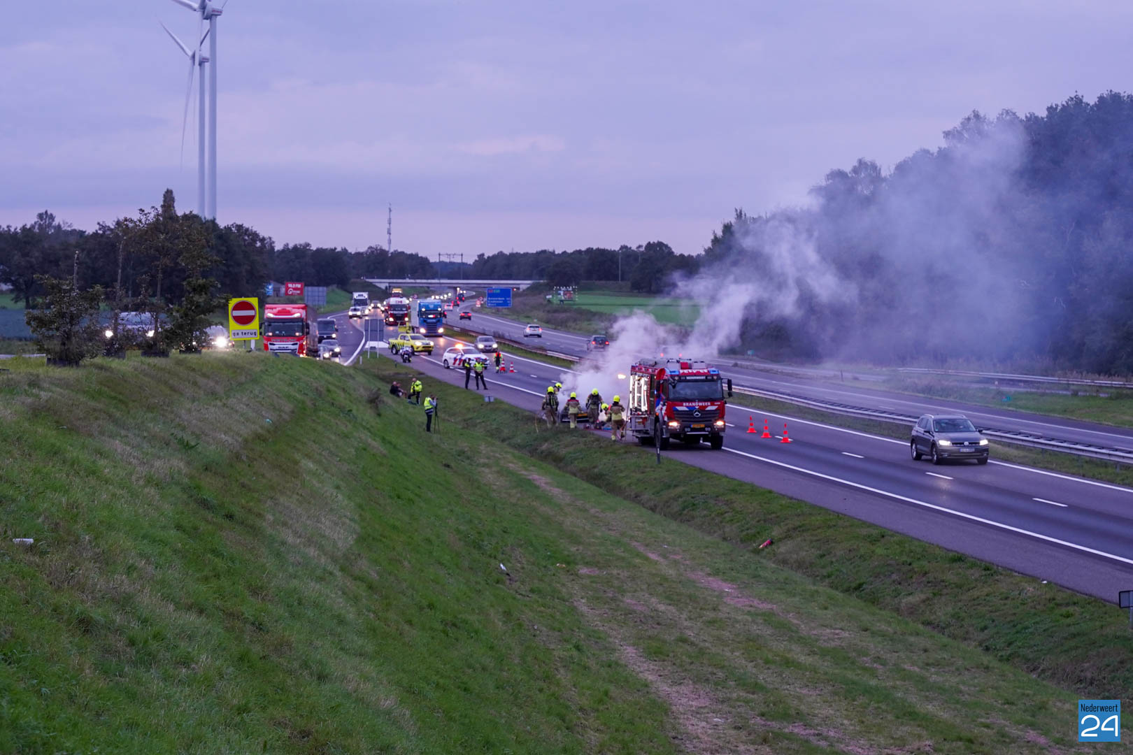 Auto in brand op A2 bij afrit Kelpen-Oler