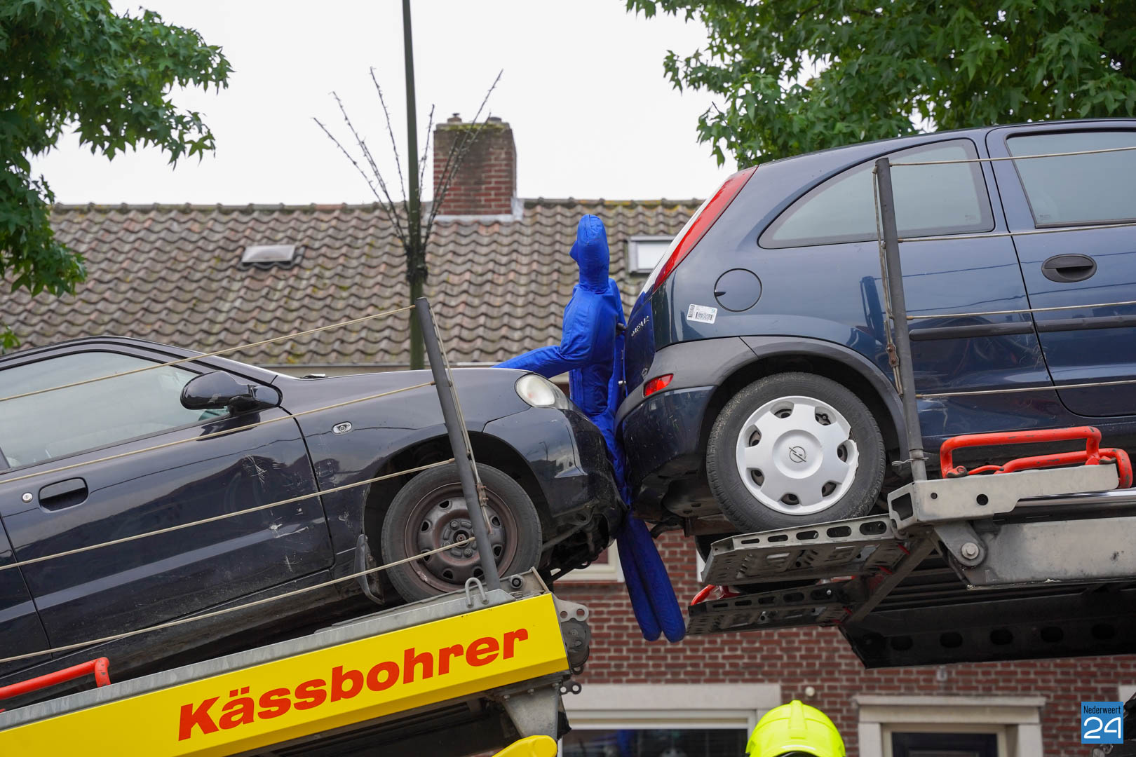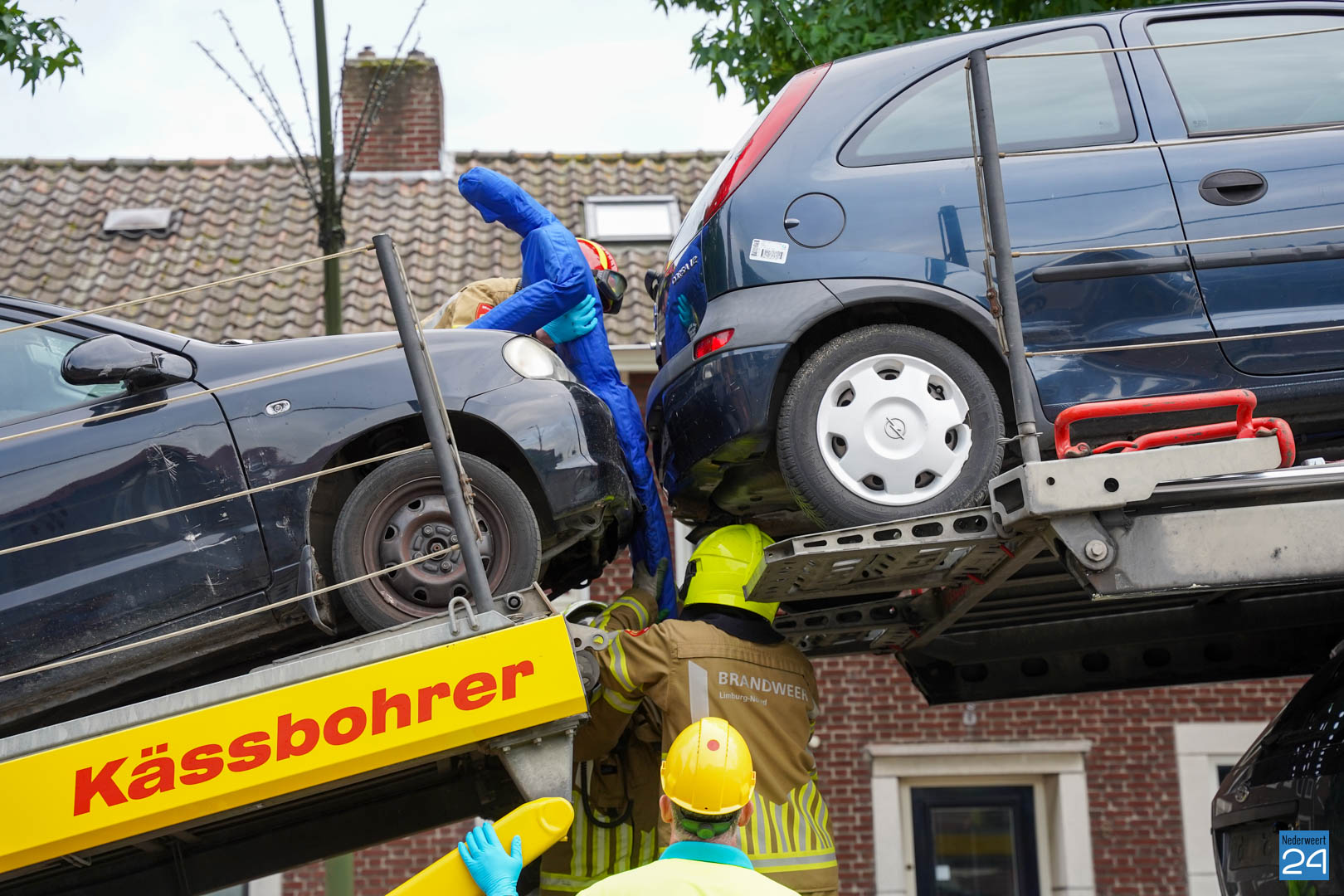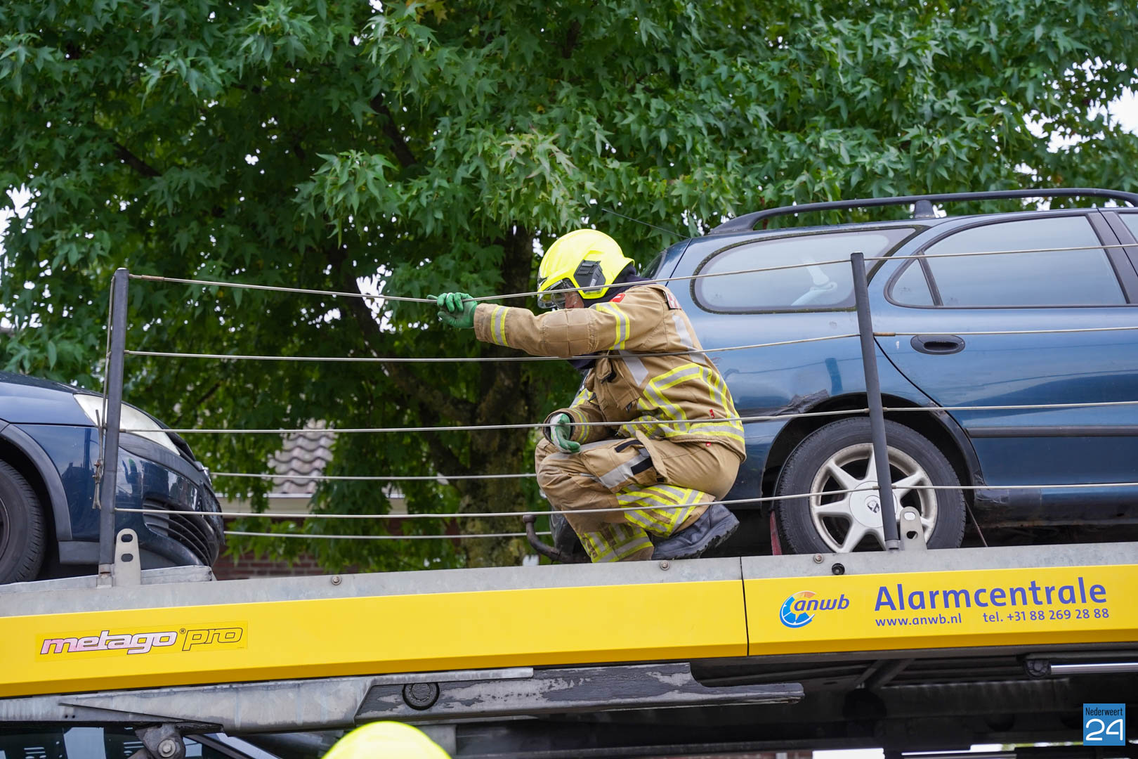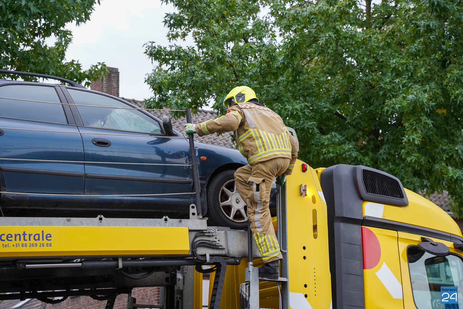 Een van de oefeningen waarmee de ploeg van Nederweert aan de slag ging startte vanmorgen al vroeg in Meijel. Een persoon zat zogenaamd klem tussen twee auto’s die boven op een berger stonden. Het was natuurlijk van belang dat deze persoon zonder te veel letsel tussen de auto’s uit werd gehaald. Door het samenwerken met het ambulancepersoneel werd de persoon tussen de twee auto’s gehaald en gestabiliseerd.