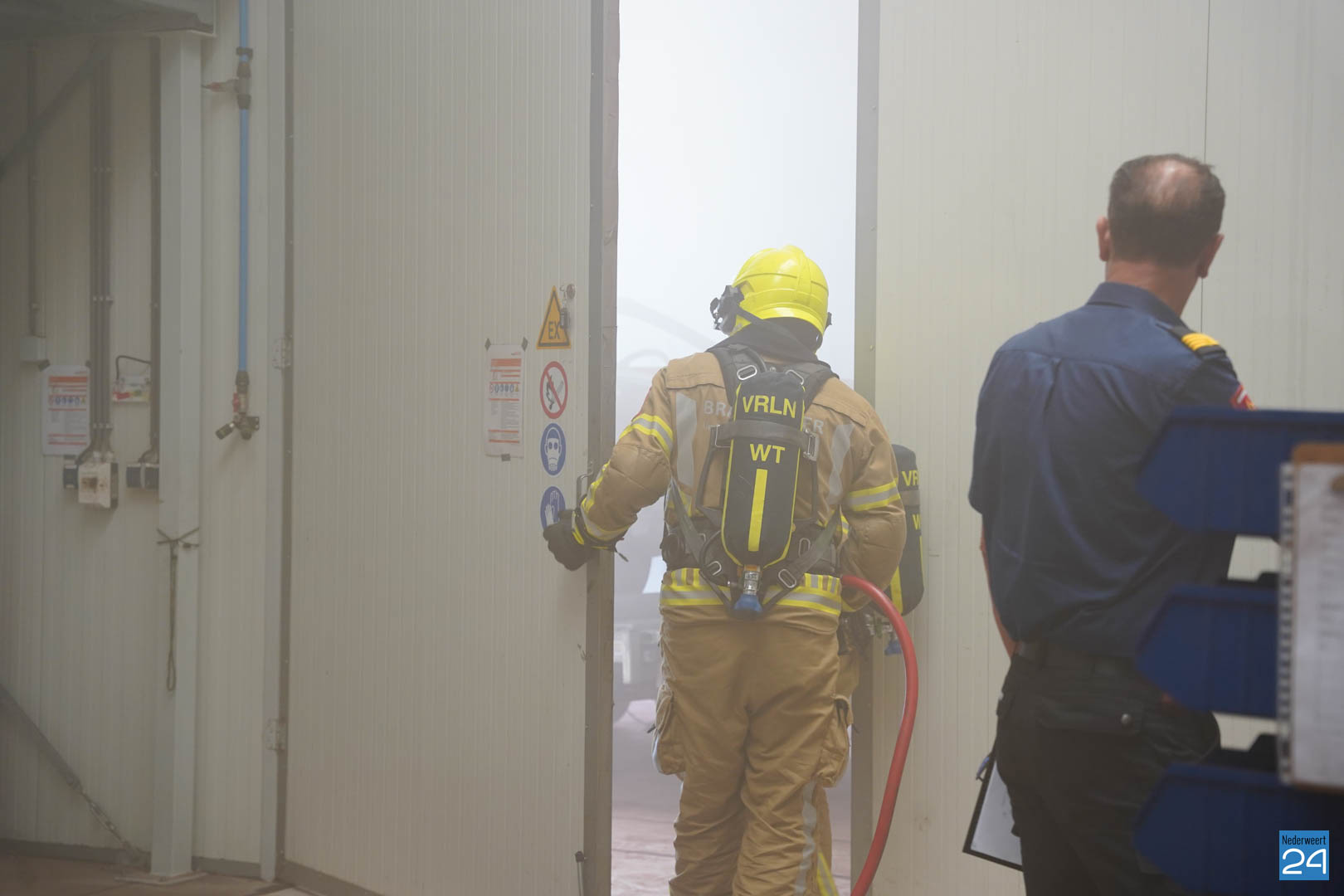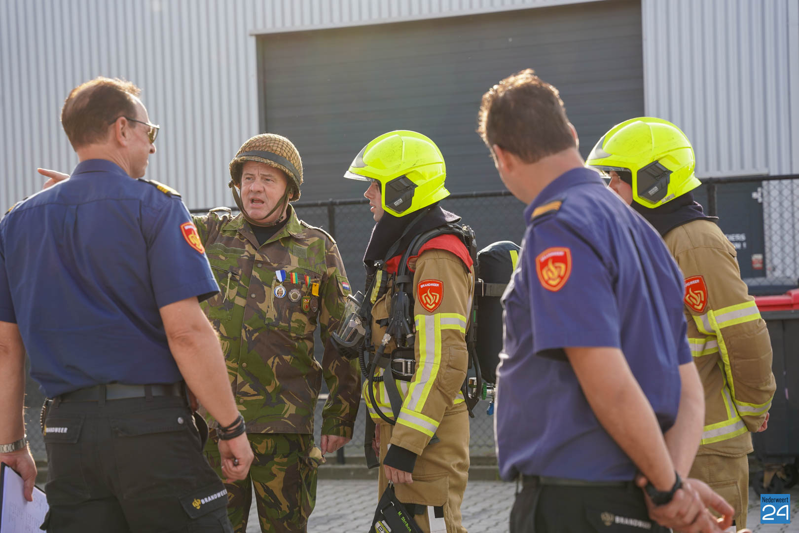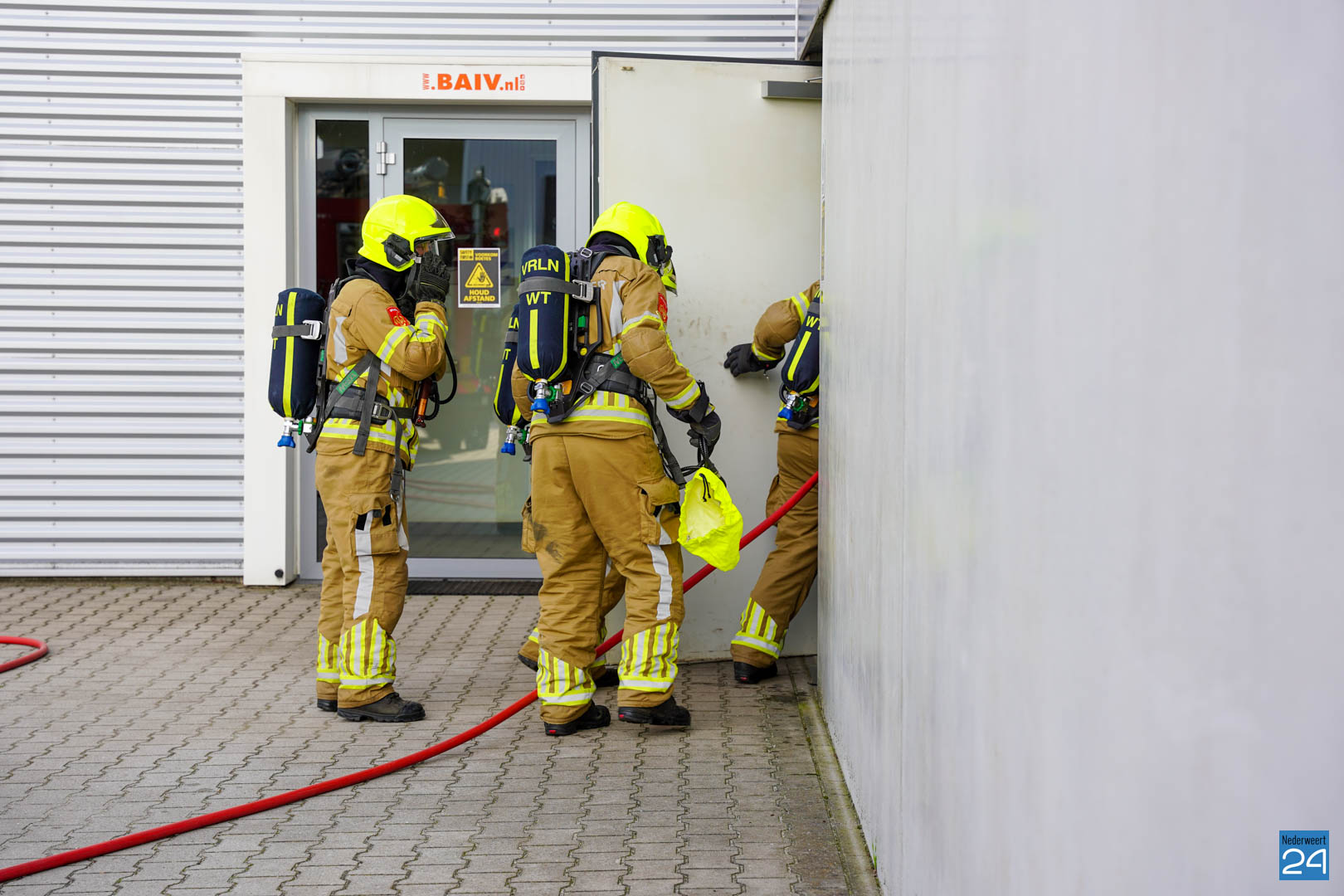 Ook in Nederweert waren de verschillende ploegen de hele dag bezig met een leerzaam scenario: tijdens werkzaamheden in een spuitcabine van het bedrijf BAIV op de Titaniumstraat was brand in een auto ontstaan, deze brand bleef beperkt tot de spuitcabine maar door het gat in het dak hoopten rookgassen zich op in de loods. De binnendeur van de spuitcabine bleef openstaan. In de loods waren twee oud-militairen bezig. Een van de militairen kon zelf naar buiten komen, maar de andere oud-militair durfde niet uit een kantoortje te komen vanwege de rook. Het was aan de brandweer om de situatie in te schatten, de brand op te lossen en de persoon op een veilige manier uit het pand te begeleiden.