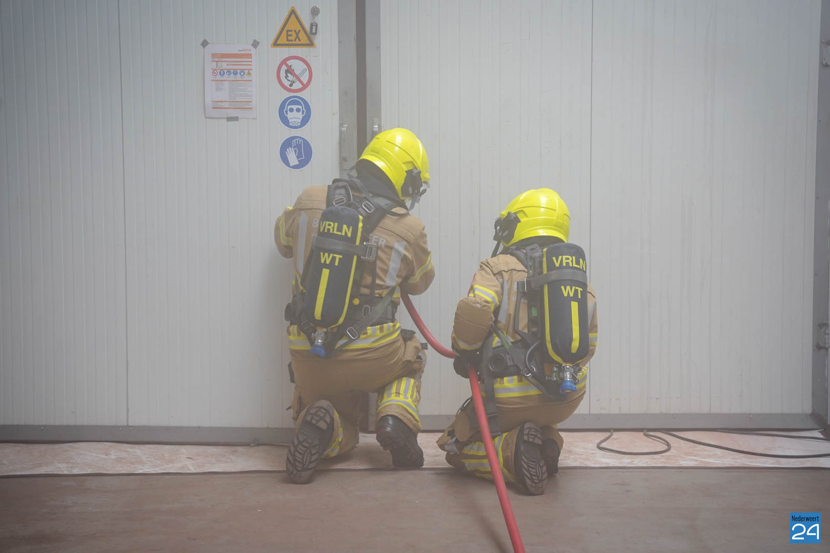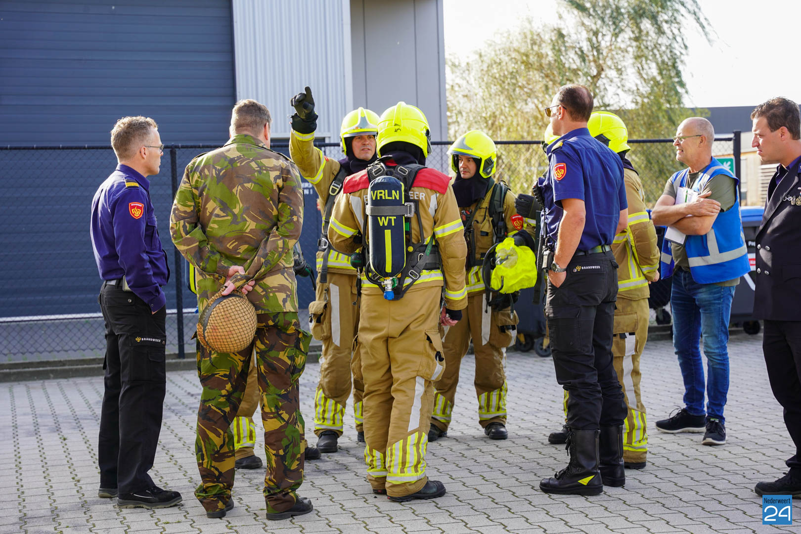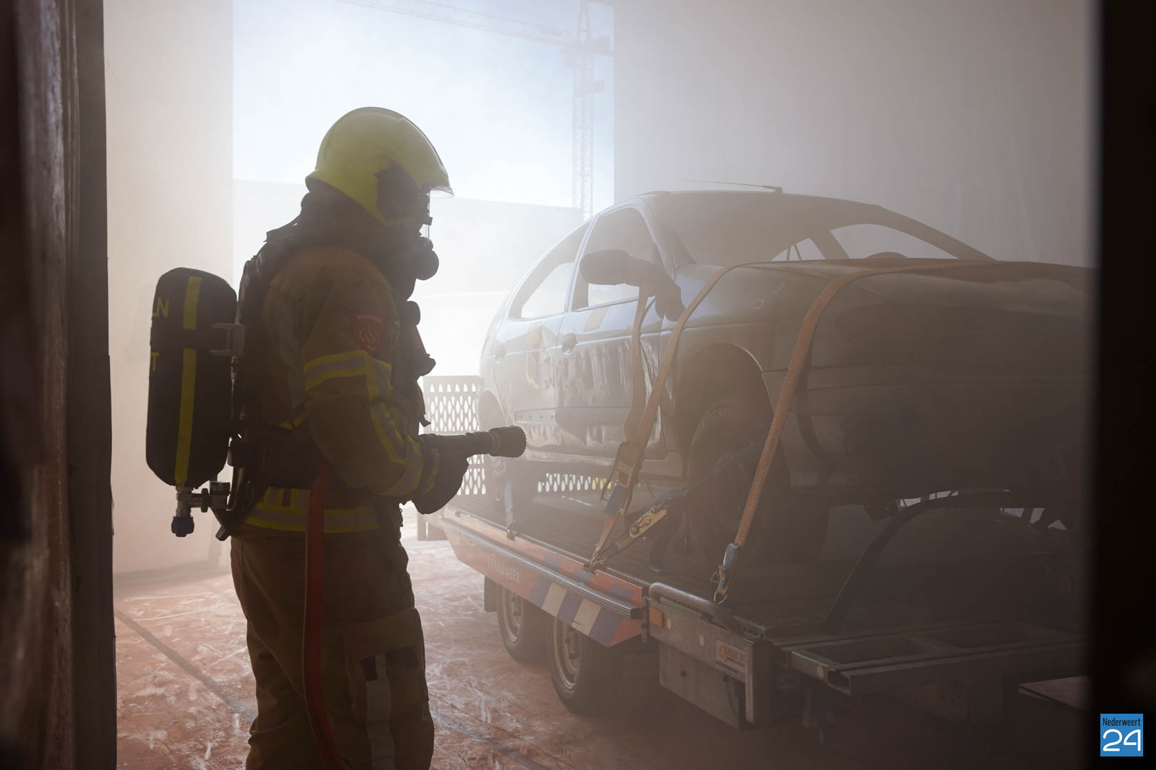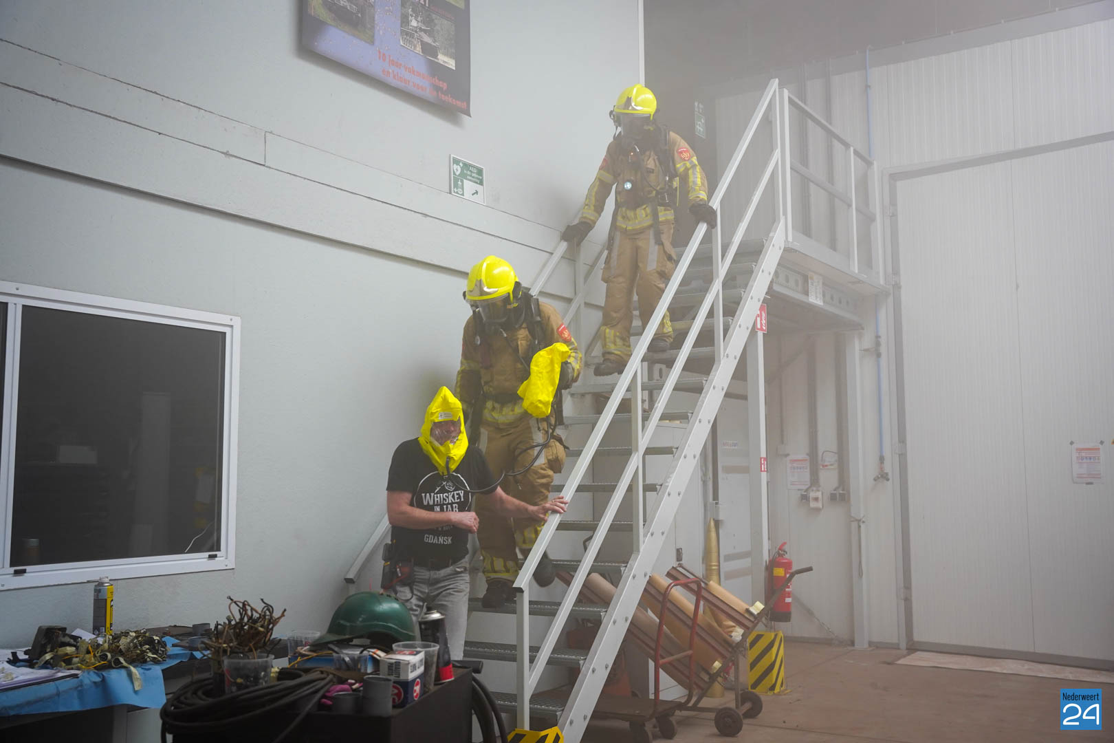 Ook in Nederweert waren de verschillende ploegen de hele dag bezig met een leerzaam scenario: tijdens werkzaamheden in een spuitcabine van het bedrijf BAIV op de Titaniumstraat was brand in een auto ontstaan, deze brand bleef beperkt tot de spuitcabine maar door het gat in het dak hoopten rookgassen zich op in de loods. De binnendeur van de spuitcabine bleef openstaan. In de loods waren twee oud-militairen bezig. Een van de militairen kon zelf naar buiten komen, maar de andere oud-militair durfde niet uit een kantoortje te komen vanwege de rook. Het was aan de brandweer om de situatie in te schatten, de brand op te lossen en de persoon op een veilige manier uit het pand te begeleiden.